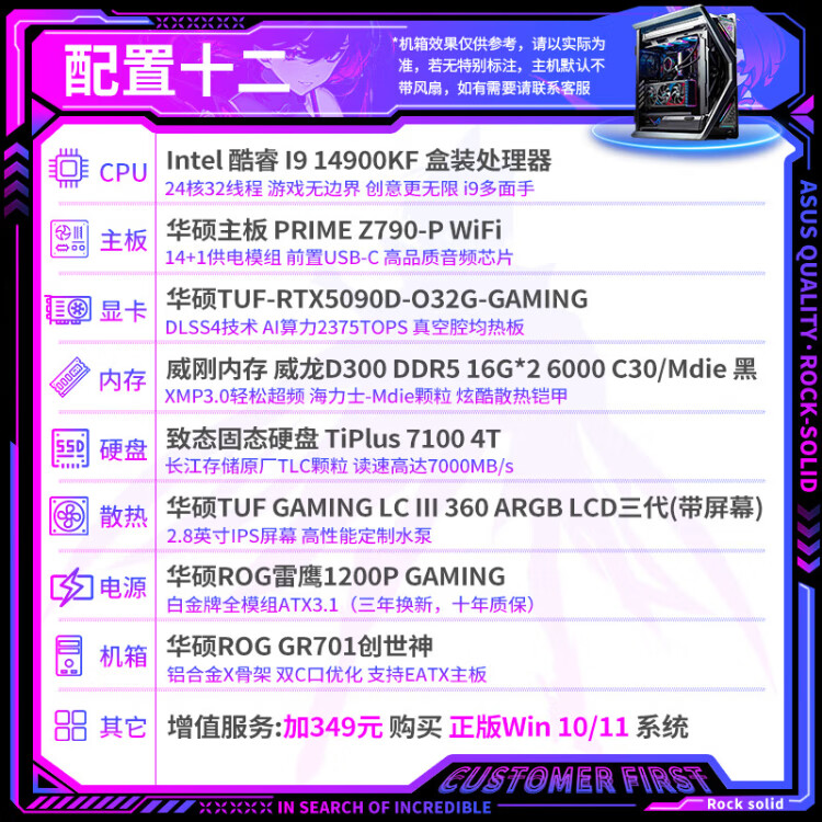 ASUS 14900KF ASUS ROG family bucket 5070Ti/RTX5080 host 5090D graphics card 14700KF host game e-sports AI rendering assembly computer complete machine 14700KF+RTX5070 12G | 5