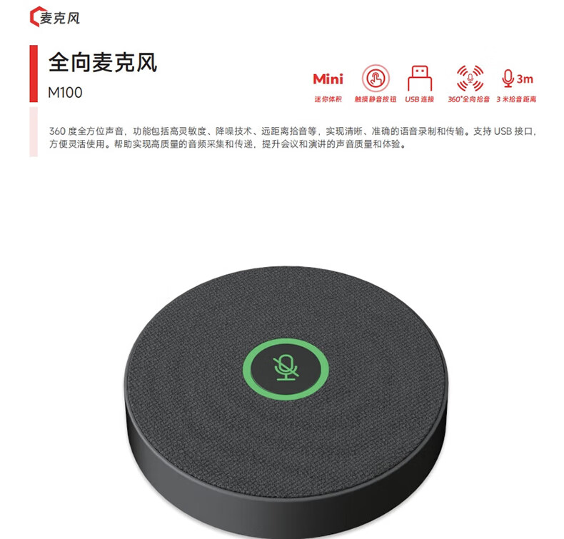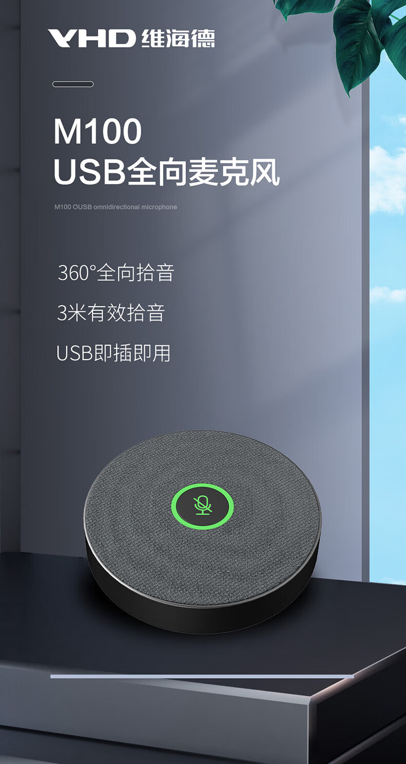 Vihide VHD-M100 video omnidirectional microphone USB driver-free 360 5-meter pickup desktop pickup suitable for 10~40 classroom meeting room M100