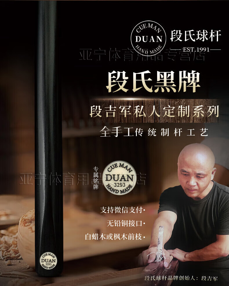 Duan's cue Duan Jijun brand billiard cue black eight 8 snooker segment type black label green label gold medal black Tong square brand custom small head stick Duan's green label full ebony black Tong + Duan's aluminum box