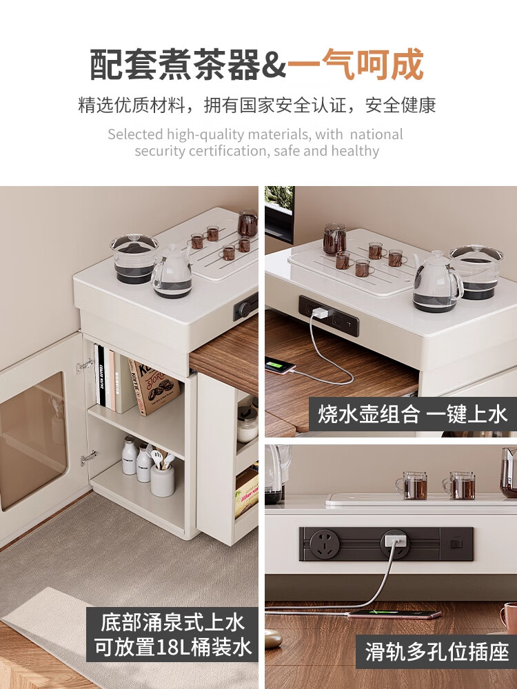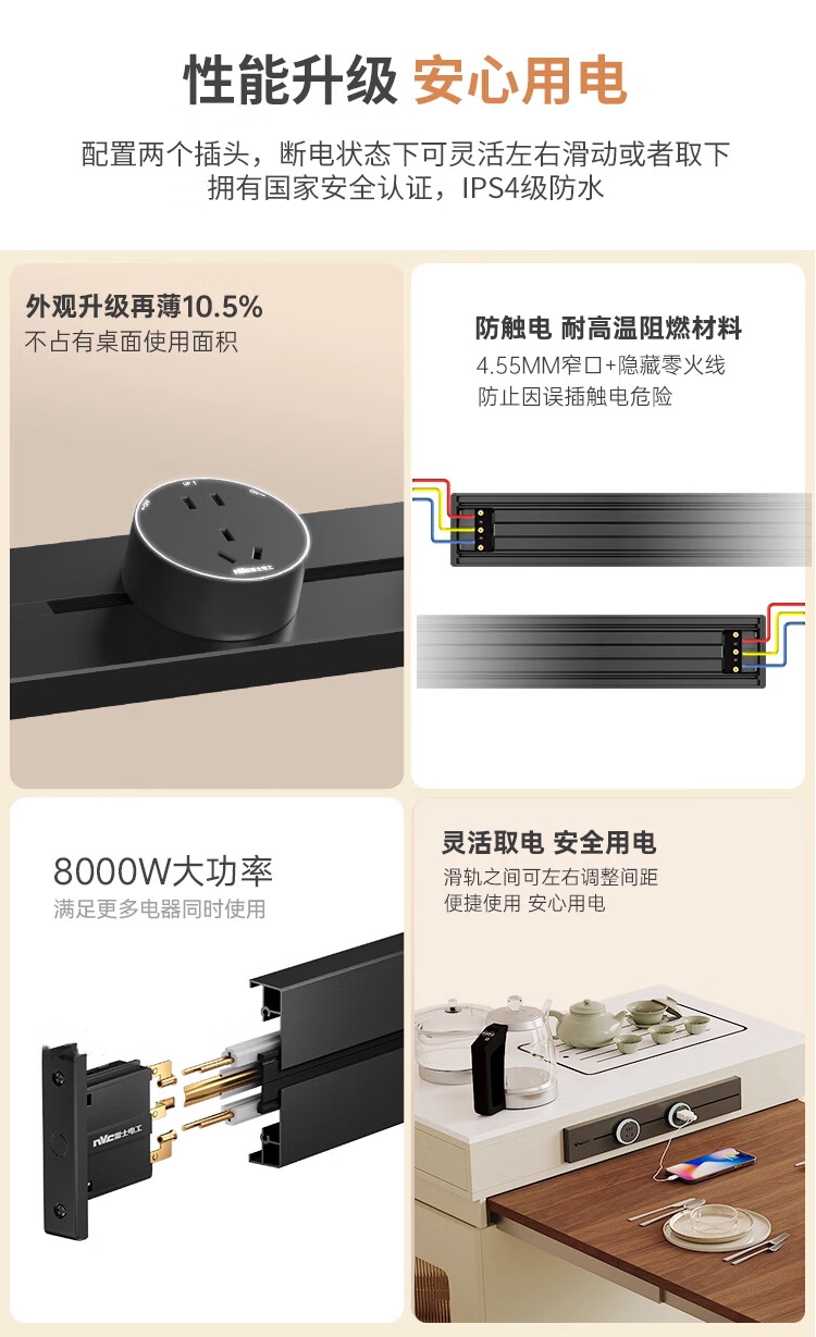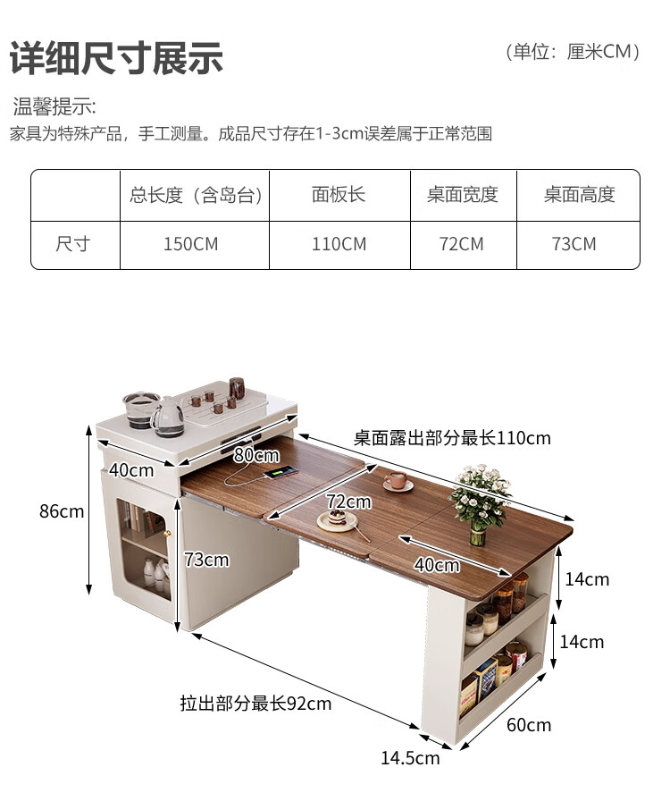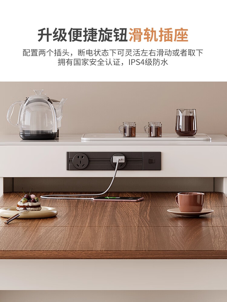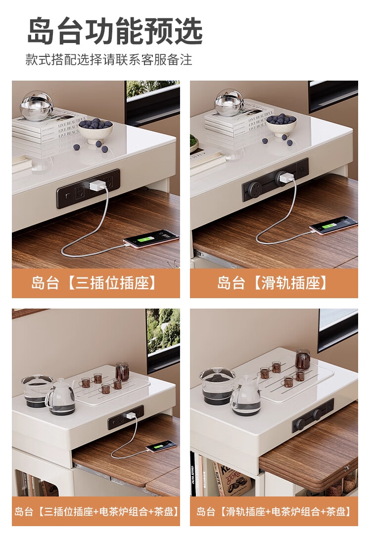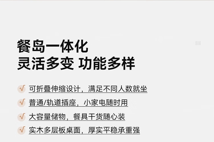 Jun cream style solid wood narrow island dining table integrated retractable folding small household multifunctional dining table tea table Folding island dining table + 4 blade chairs 1.5 meters slide rail socket flat style