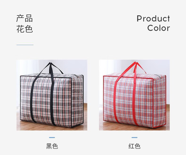 Moving bag woven bag thickened luggage packing bag extra large capacity waterproof quilt portable storage bag black grid fabric 1 piece 20*20cm