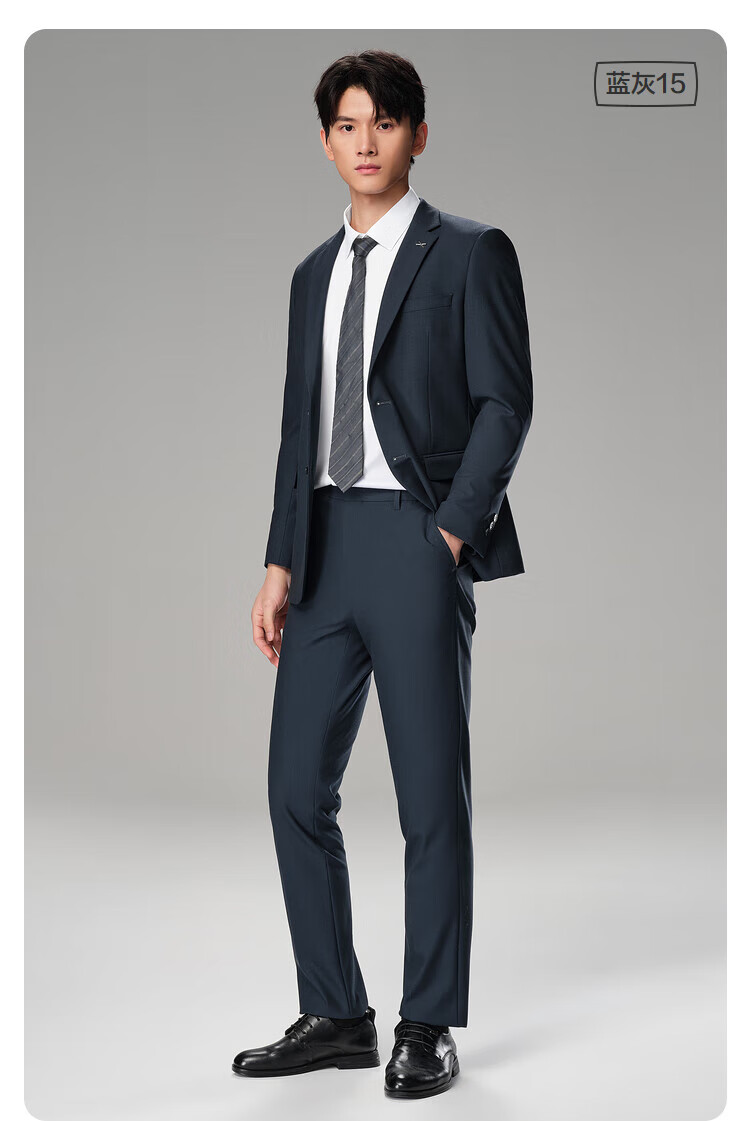 Heilan House (HLA)/Heilan House business dress suit 2024 autumn new flat lapel slim anti-wrinkle suit suit for men blue gray 15 (suit + trousers) L 175/92A 48A recommended 126~140
