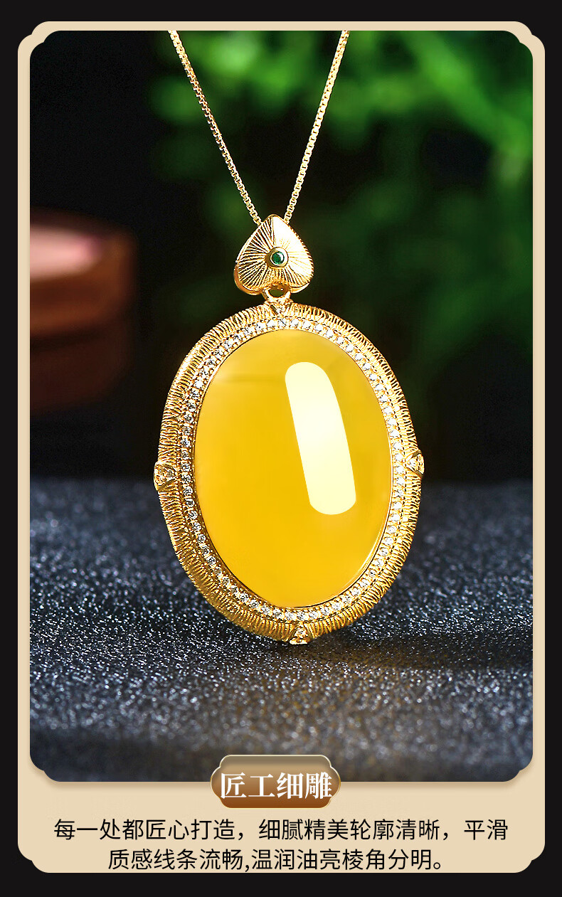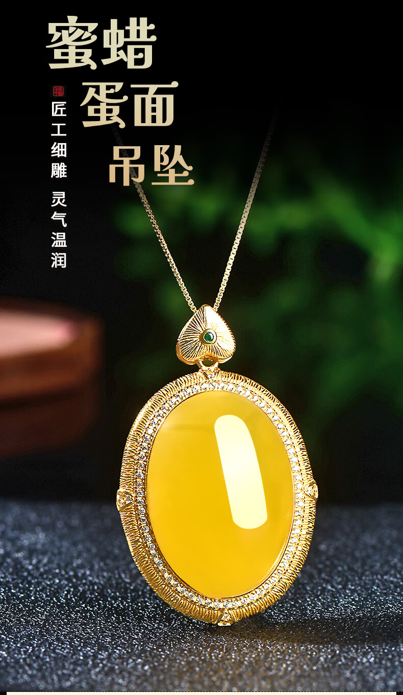 A Thousand Years Jade Silver Inlaid Beeswax Chicken Fat Yolk Egg Noodle Pendant Temperament Noble Necklace Pendant Comes with Certificate Style One QZM8016i