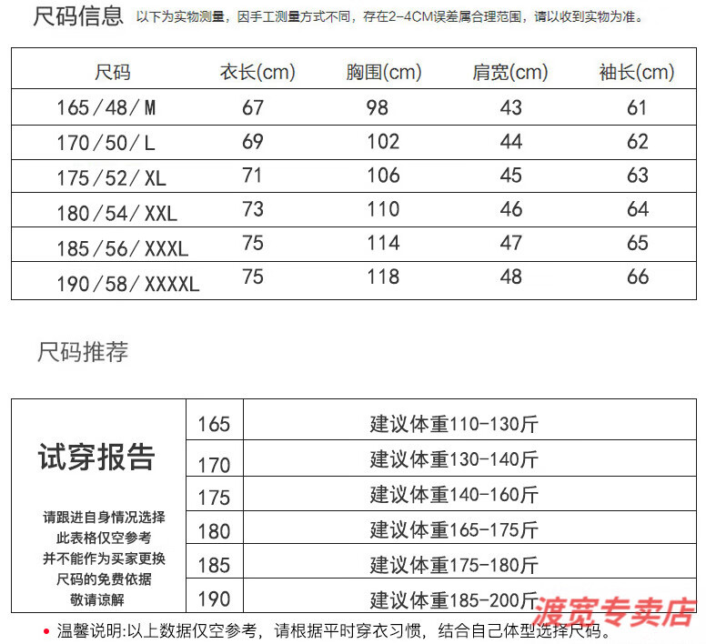 China (cm) 165 / 88-90 170 / 96-98 175 / 108-110 180 / 118-122 185 / 126-130