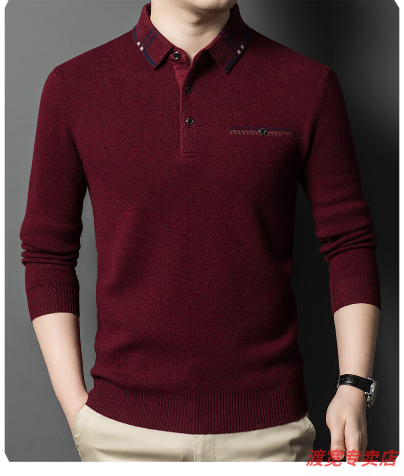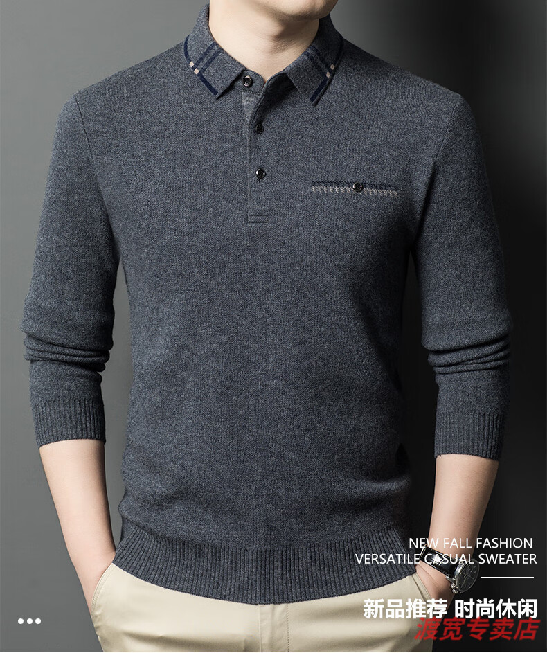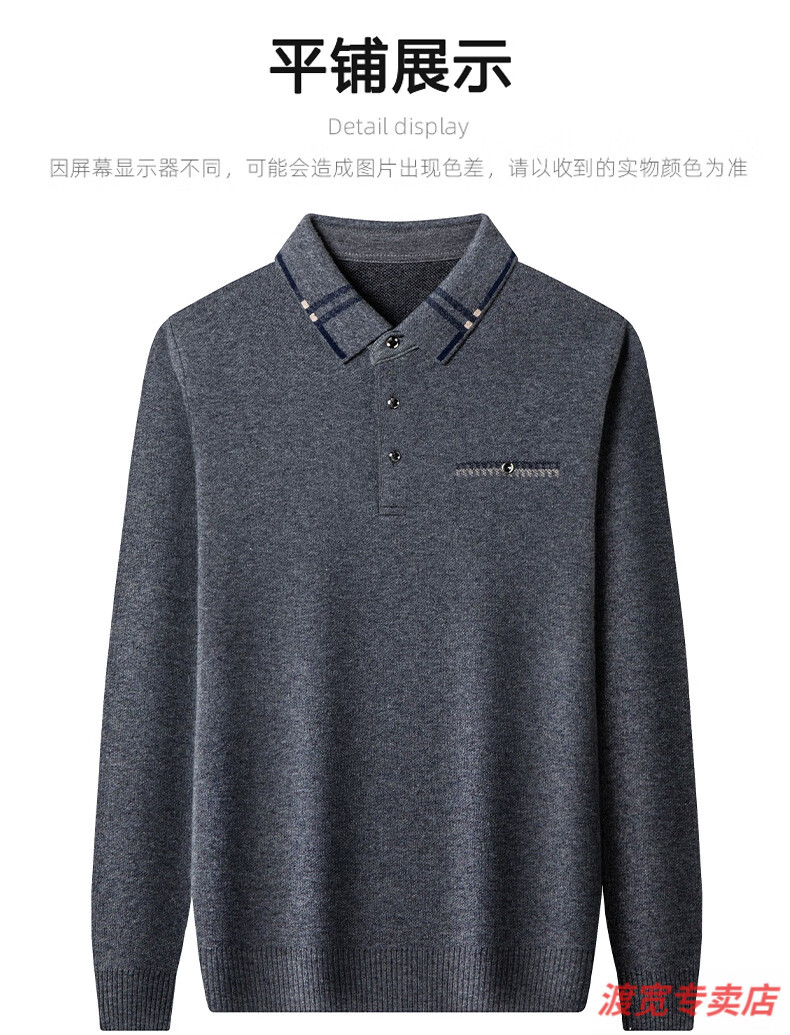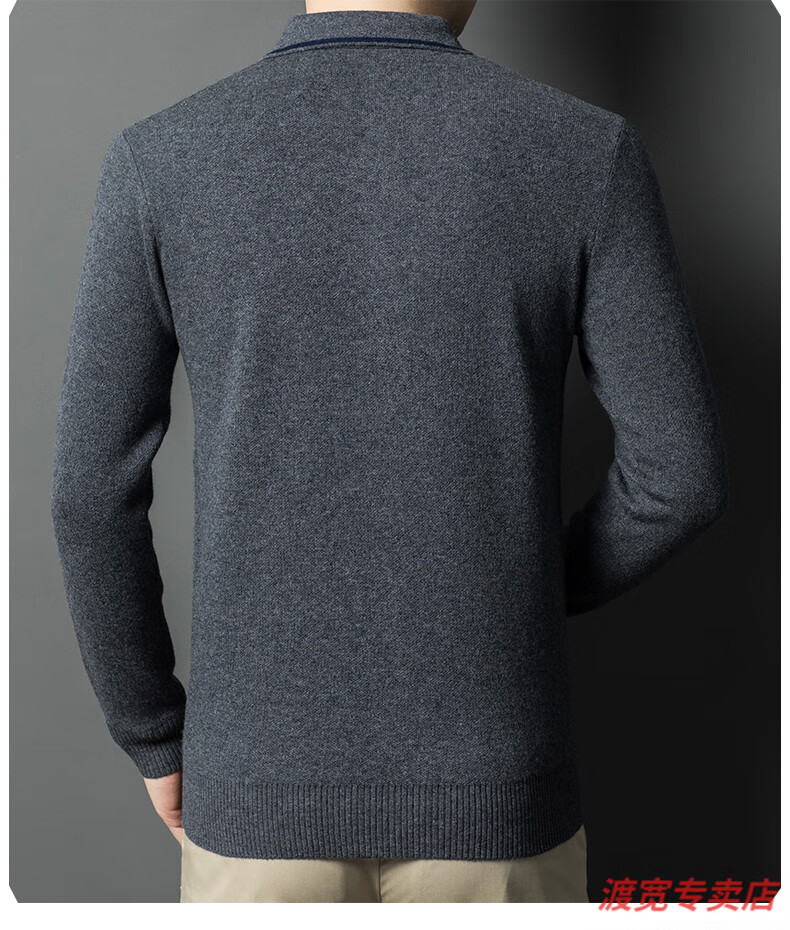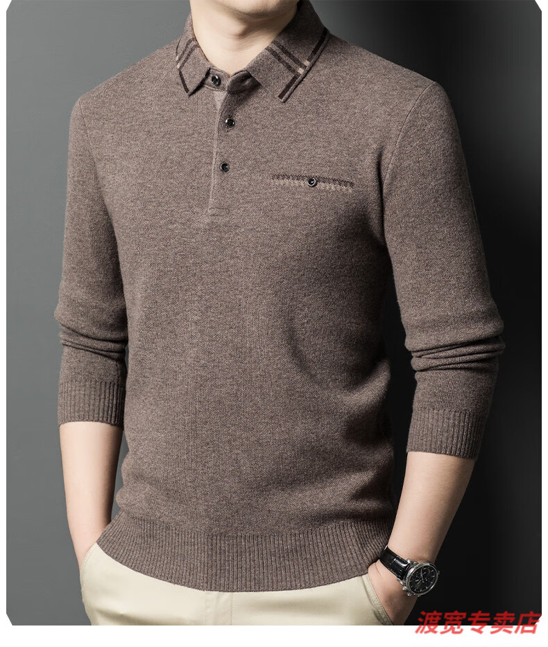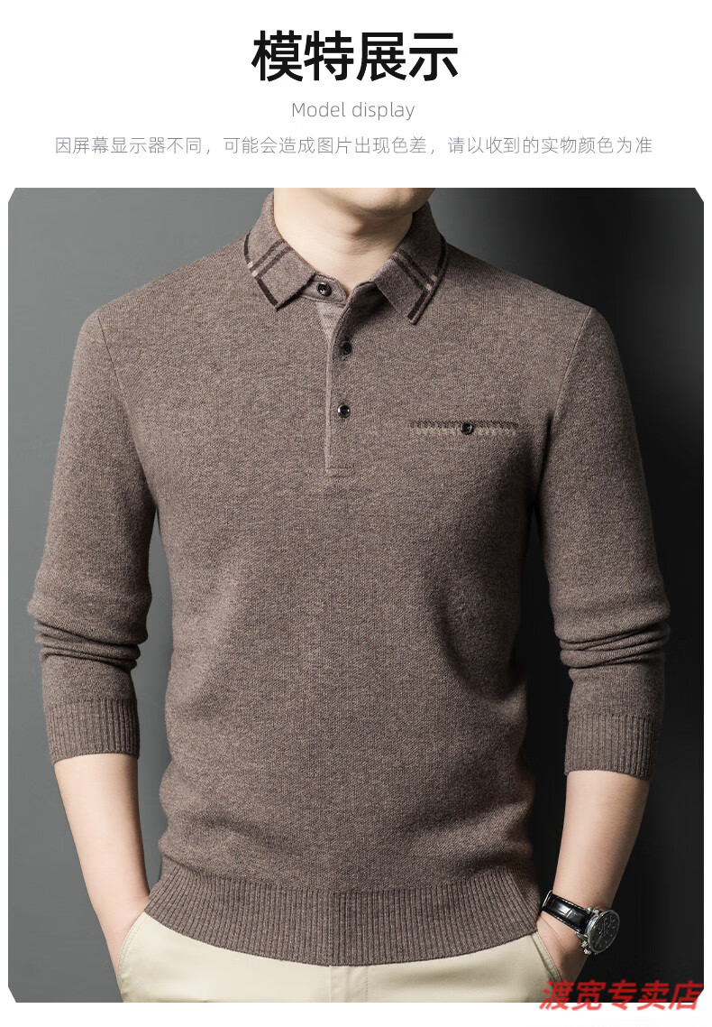 Hengyuanxiang wool sweater men's autumn and winter solid color lapel middle-aged and elderly dad's sweater thickened sweater casual warm clothes coffee color (18608) XL 175 yards 140-160 Jin Jin equals 0.5 kg
