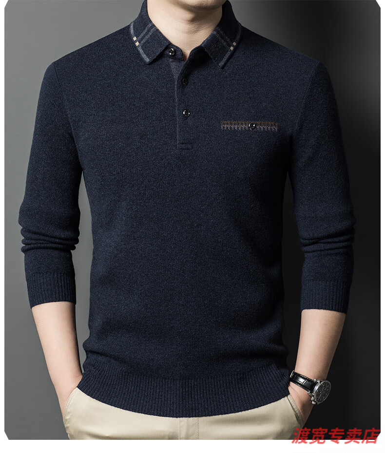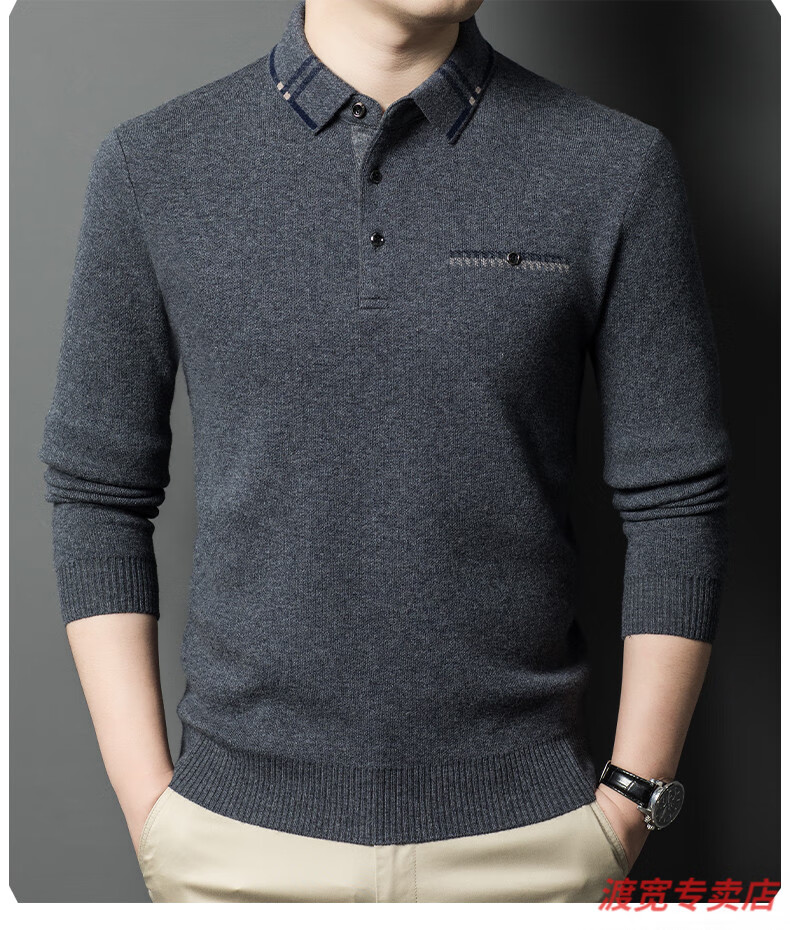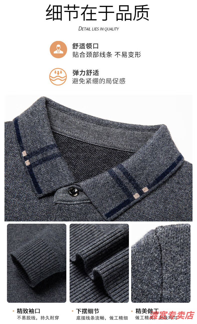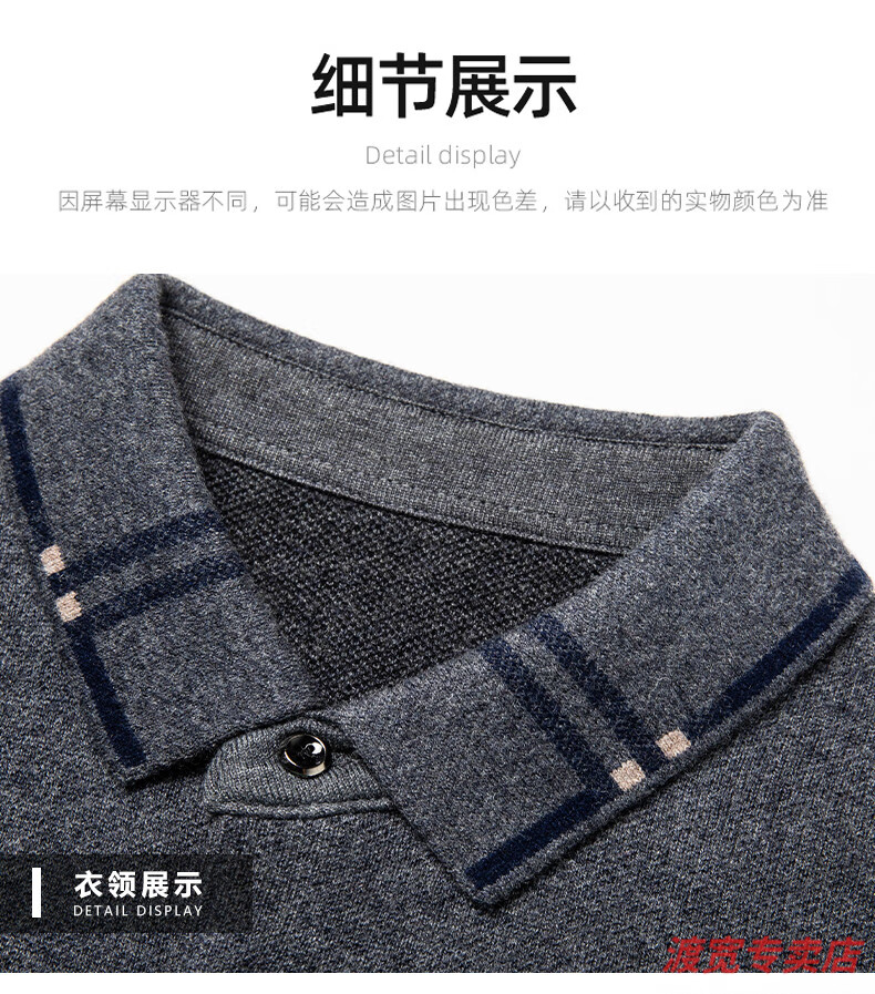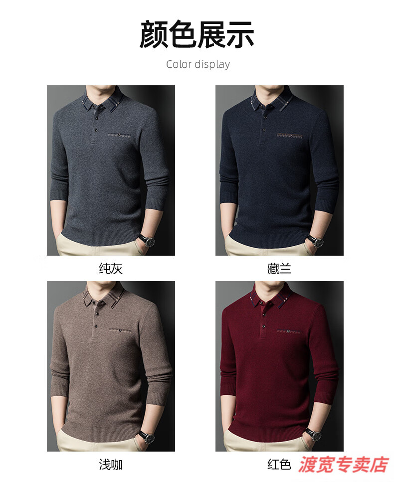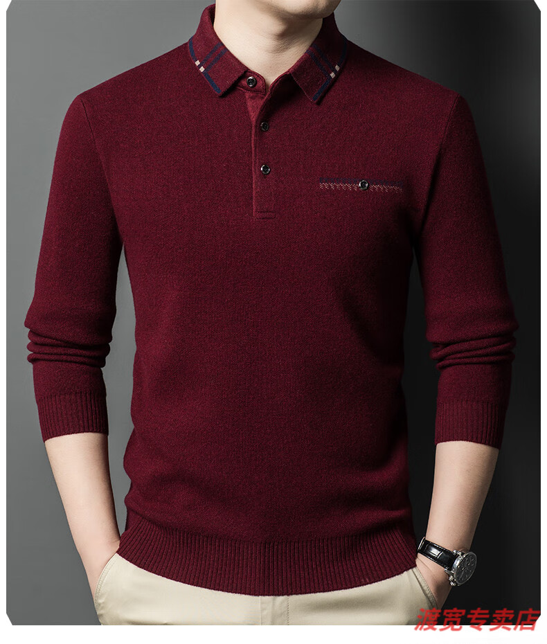 Hengyuanxiang wool sweater men's autumn and winter solid color lapel middle-aged and elderly dad's sweater thickened sweater casual warm clothes coffee color (18608) XL 175 yards 140-160 Jin Jin equals 0.5 kg