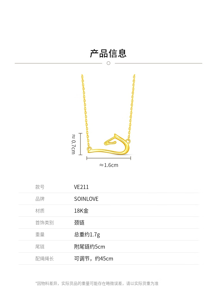 SoinLove Minimalist Series Yufengma 18K Gold Necklace Couple Gift Gift Women VE211 Zodiac Horse Birthday Gift Yufengma 18K Gold Necklace VE211 The total chain length is about 45cm