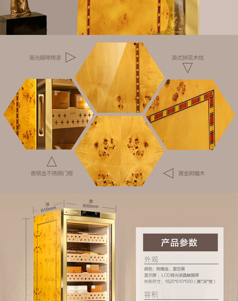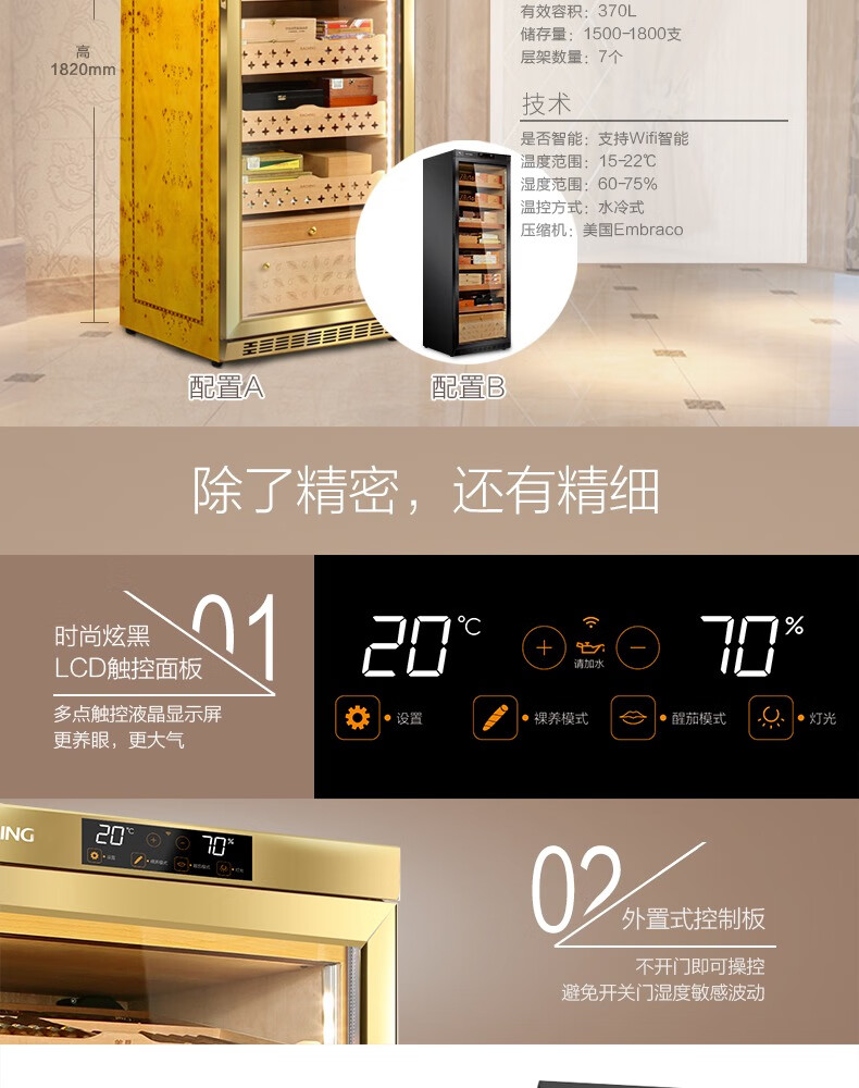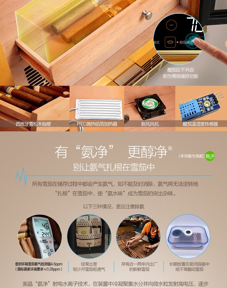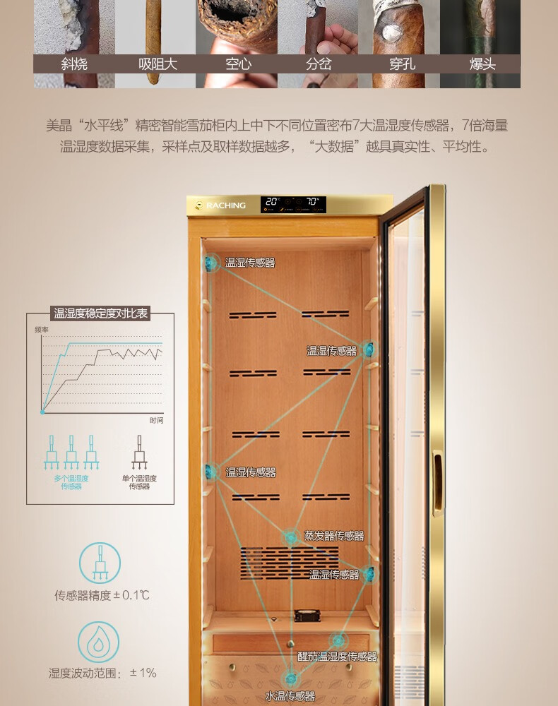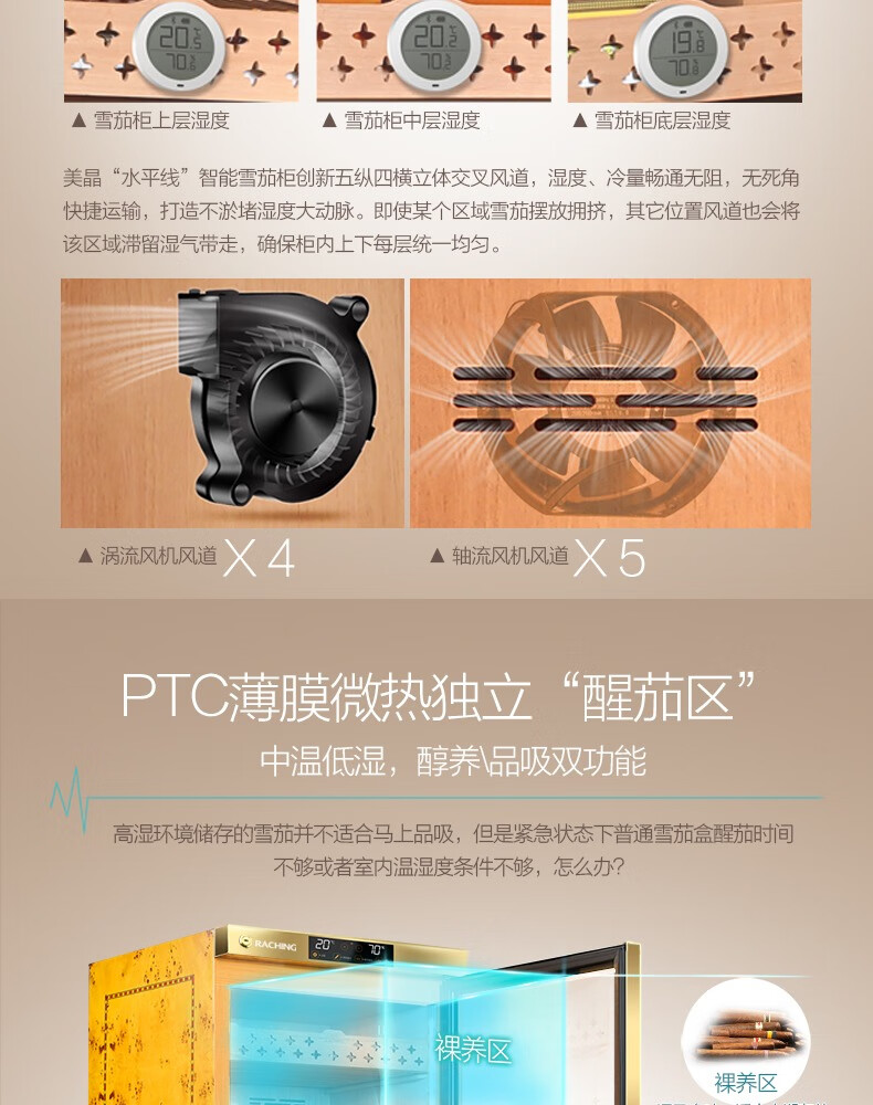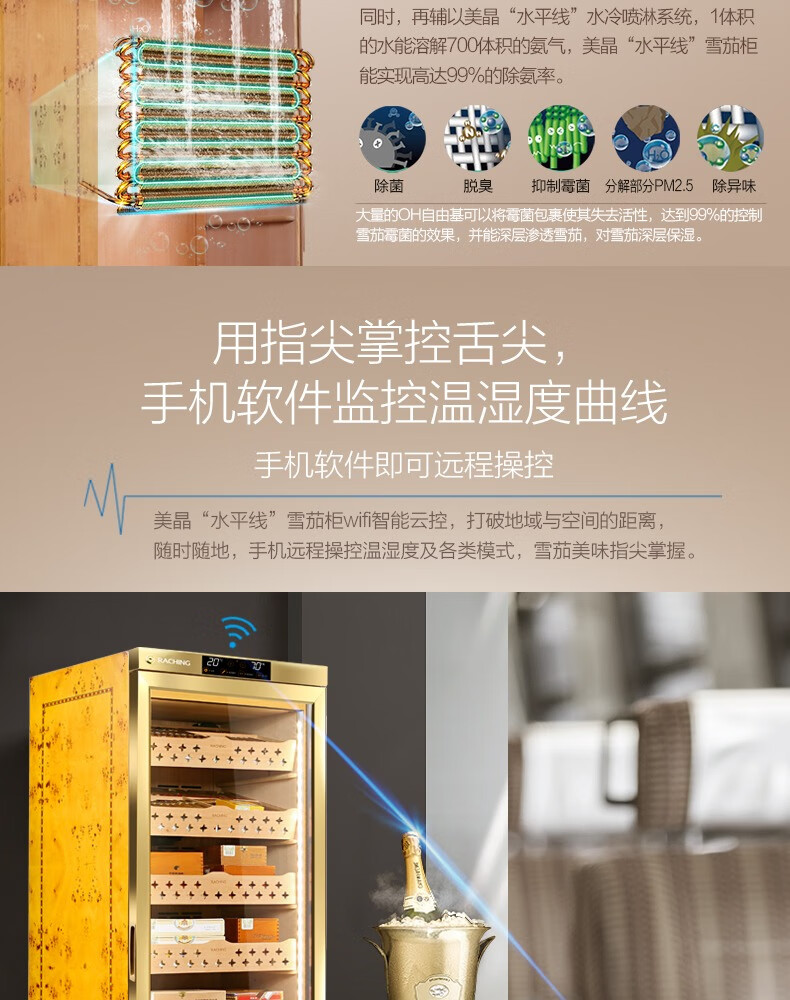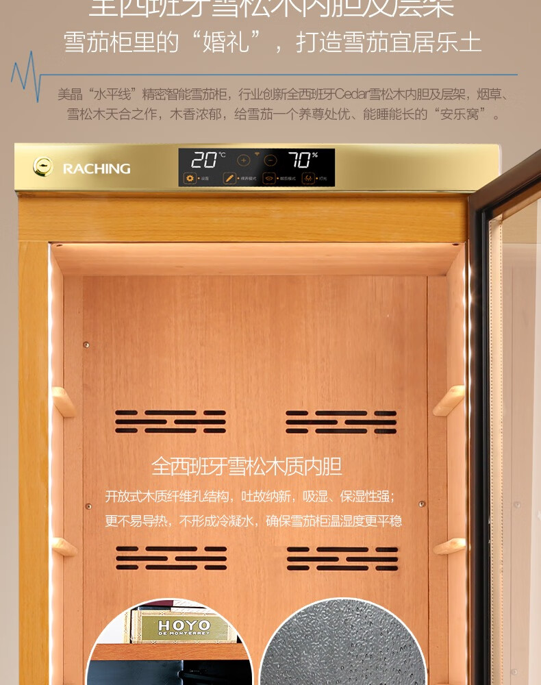 Meijing Raching/Meijing cigar cabinet cedar wood shelf intelligent horizontal line series constant temperature and humidity cigar cabinet cedar wood cigar box