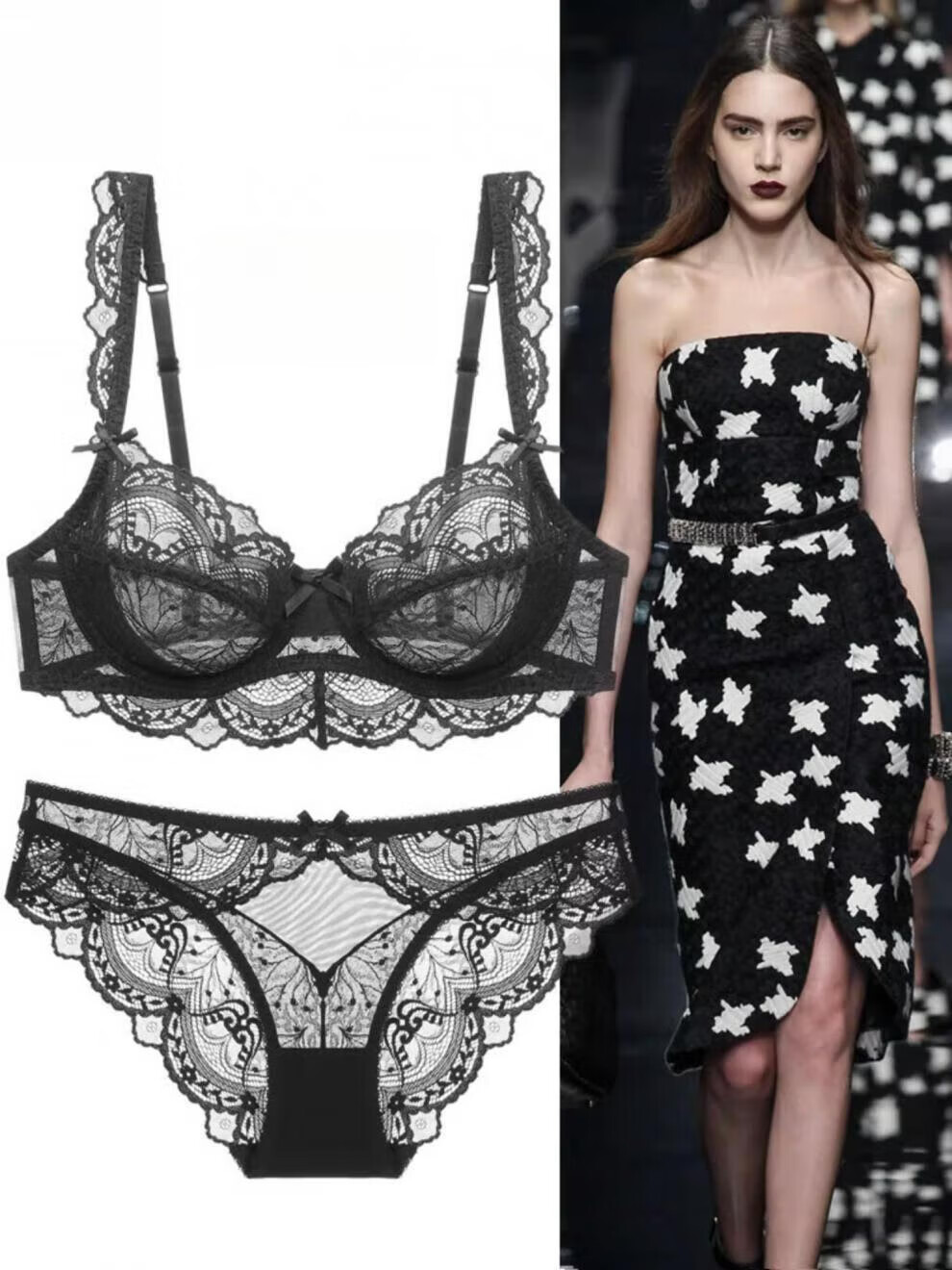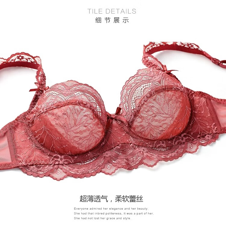 Dudant Luxury International Brand Feminine Lace Underwear Breathable and Comfortable Sponge-Free Four Seasons Bra Set Big Breasts Make Smaller Burgundy M 34/75B with Panties