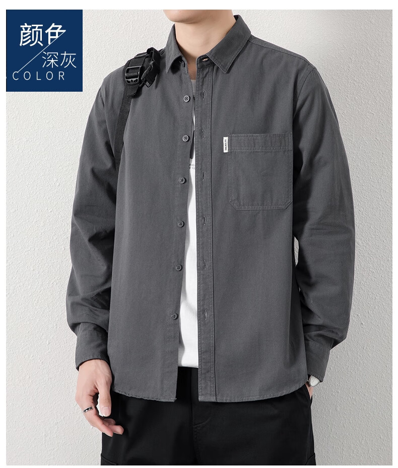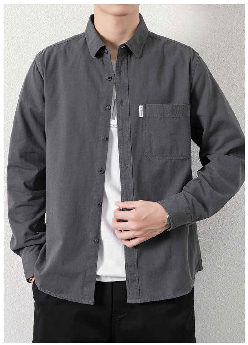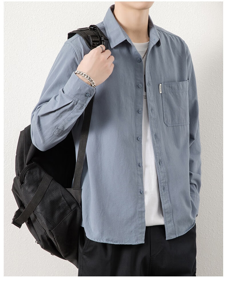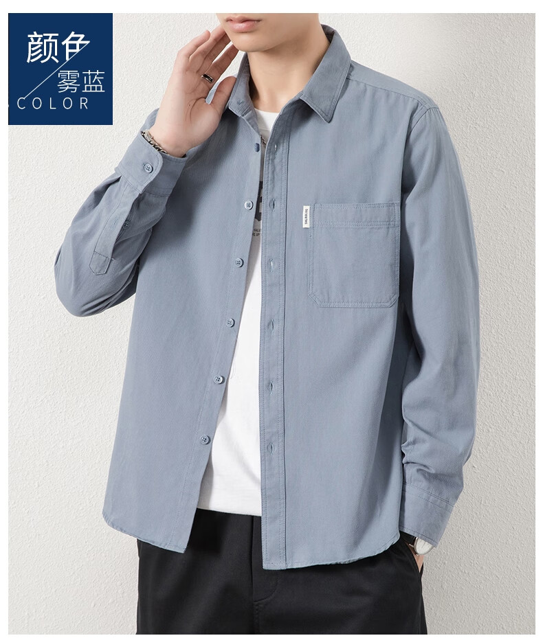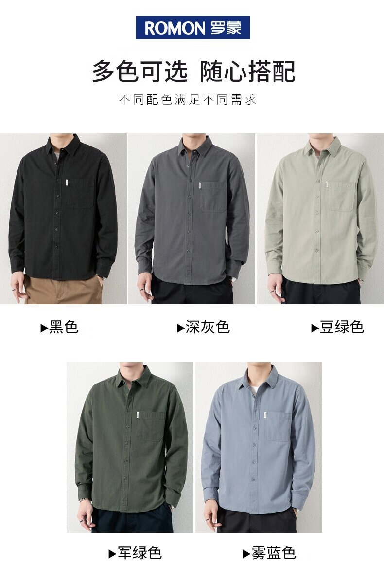 ROMON long-sleeved shirt men's pure cotton no-iron inch shirt 2026 autumn new trendy casual shirt jacket for men 8851 fog blue XL recommended 126-140Jin Jin equals 0.5 kg