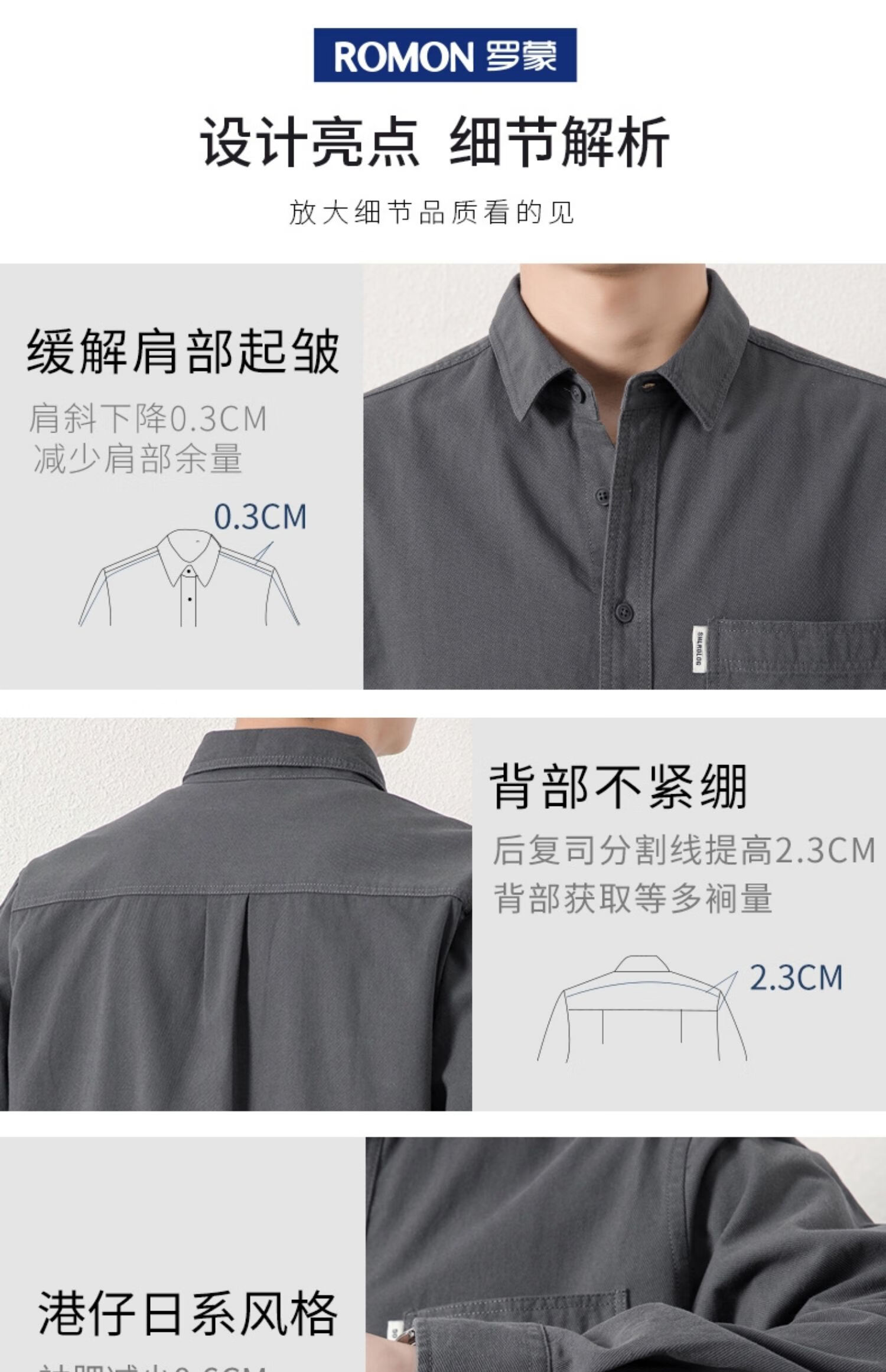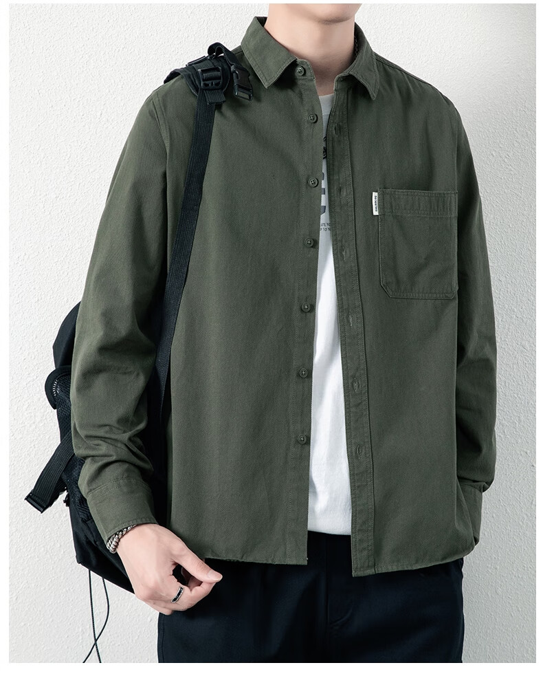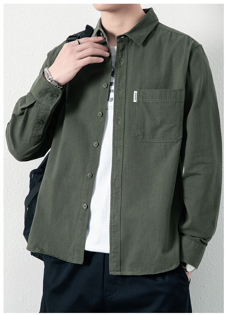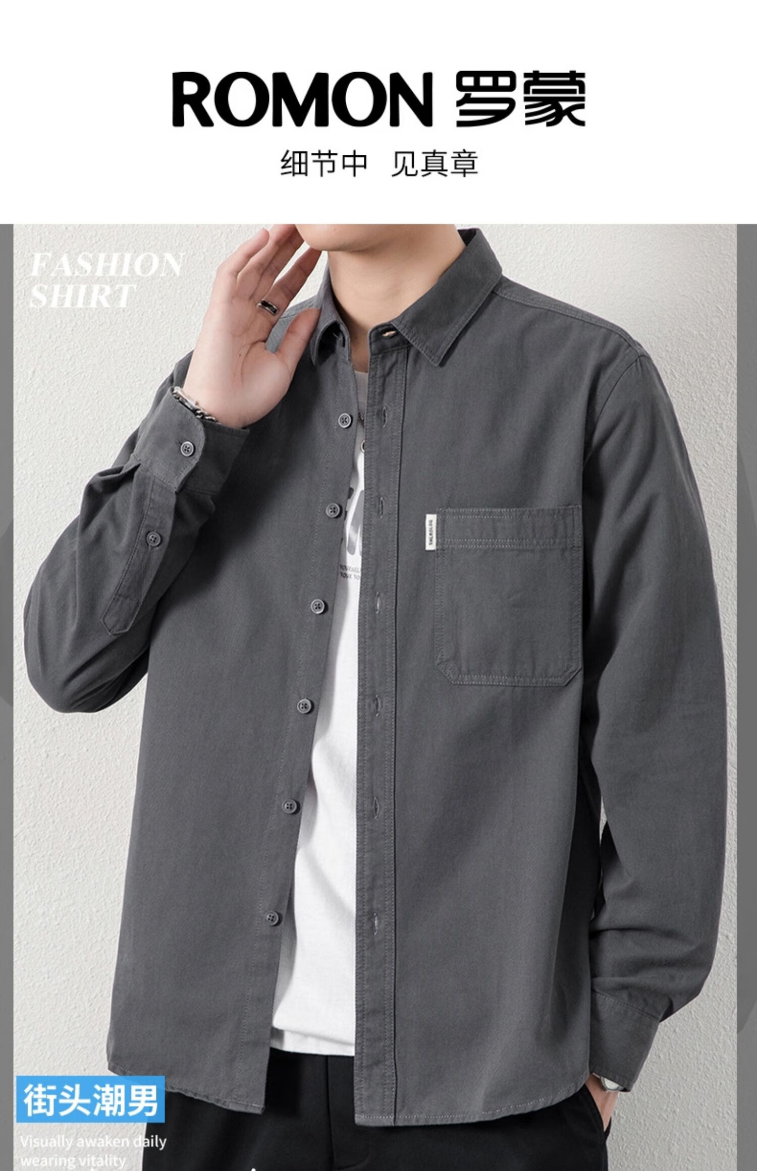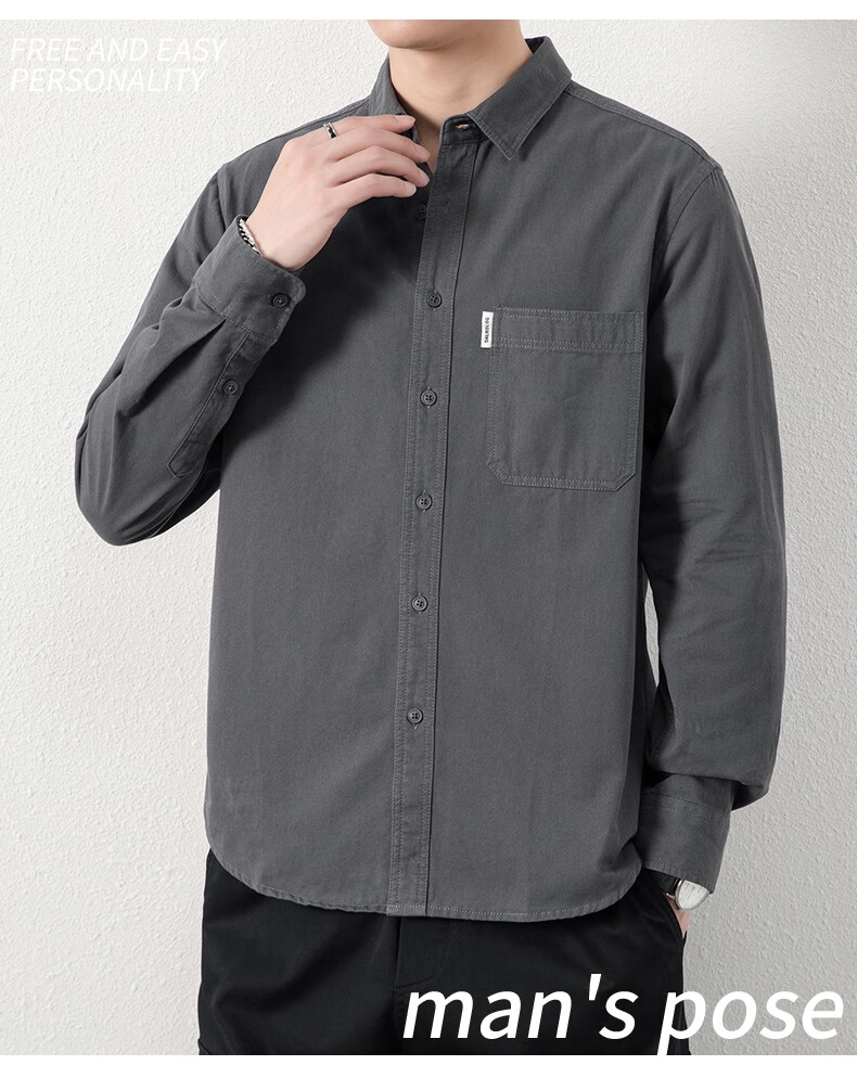ROMON long-sleeved shirt men's pure cotton no-iron inch shirt 2026 autumn new trendy casual shirt jacket for men 8851 fog blue XL recommended 126-140Jin Jin equals 0.5 kg