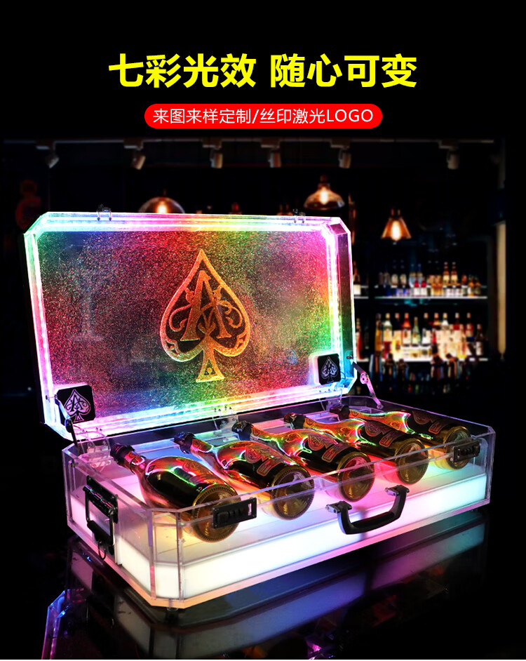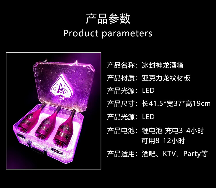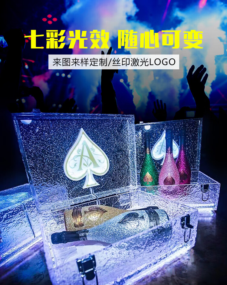 Black Brand Spades Frozen Dragon Set Wine Box Champagne Box Wine Box KTV Bar Luminous Ice Pattern Fruit Box Ice Bucket Package 1 Pack Wine Box Colorful_Does Not Include Wine