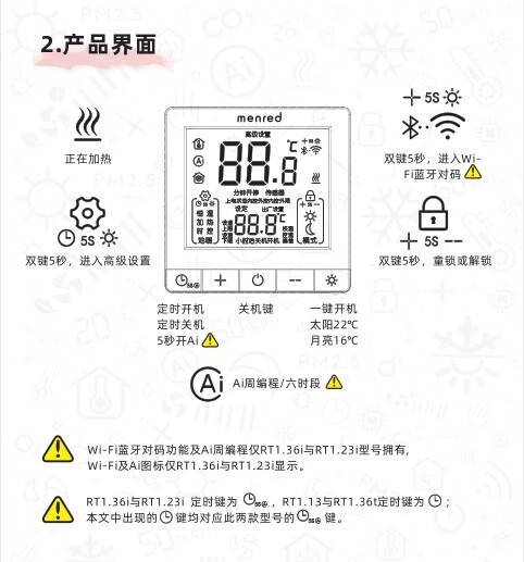 Manred thermostat panel electric floor heating water floor heating wall-mounted furnace heating timing temperature controller RT1.13 water heating thermostat