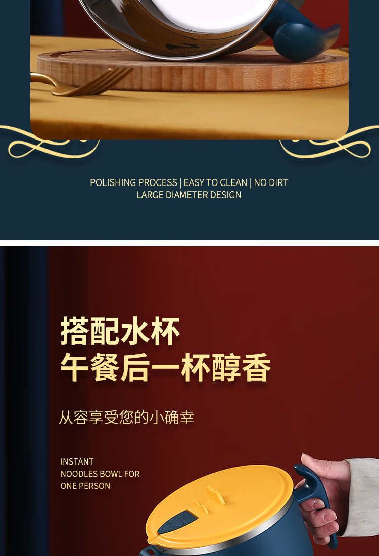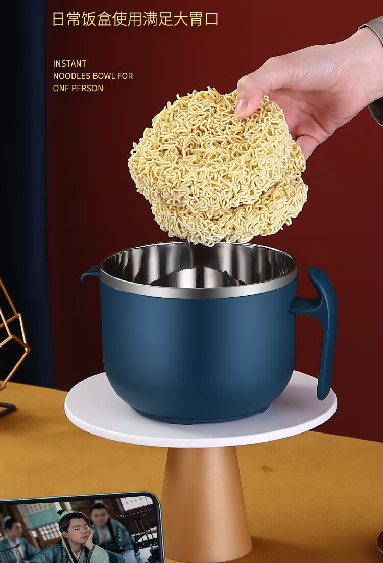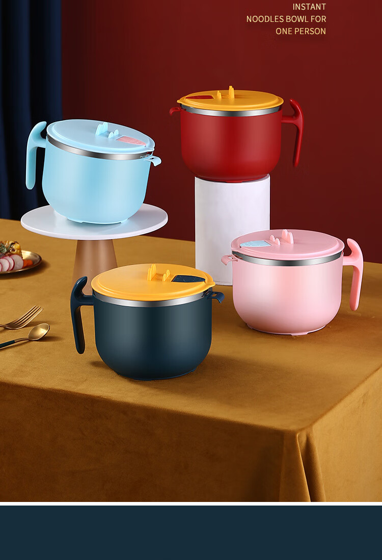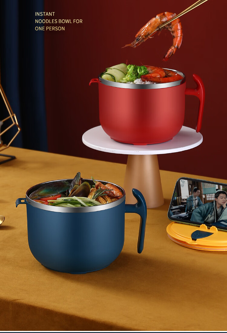 304 stainless steel instant noodle bowl with lid Japanese-style sealed lunch box office worker student insulated lunch box fast food cup dark green