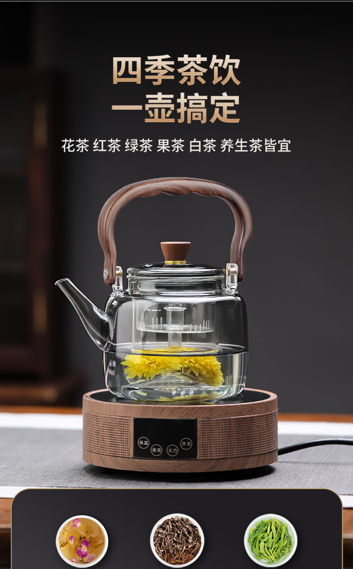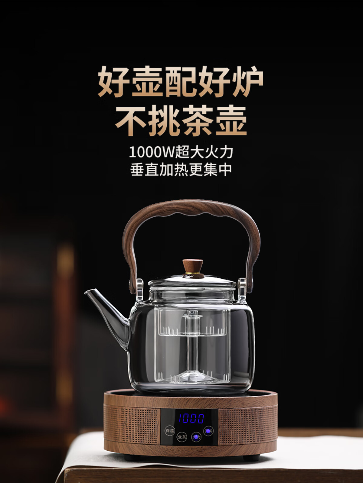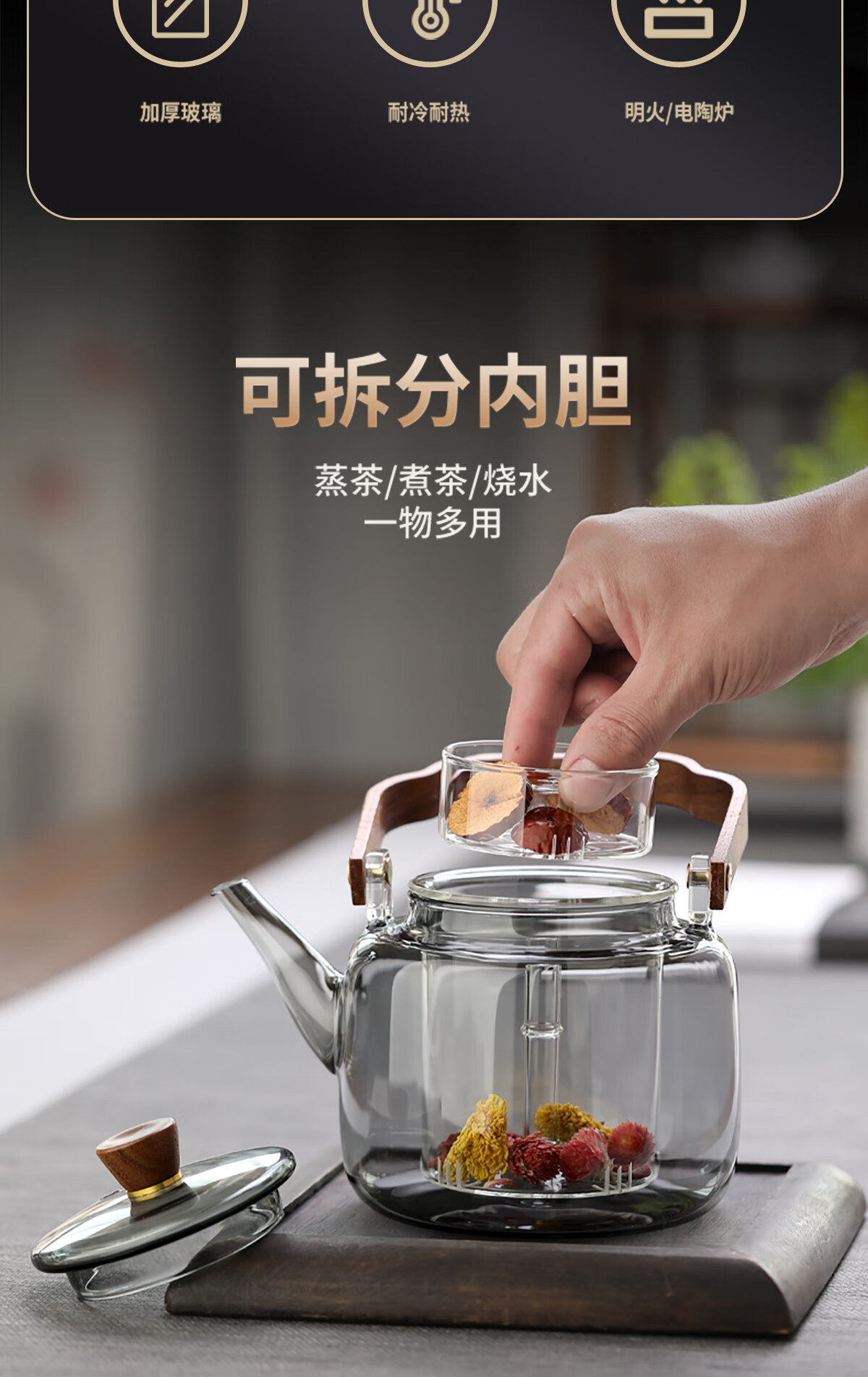 Gaoming glass tea kettle, high temperature resistant household large-capacity lifting kettle, electric ceramic stove, special tea water separation and thickening kettle, Moyan kettle 1000ml