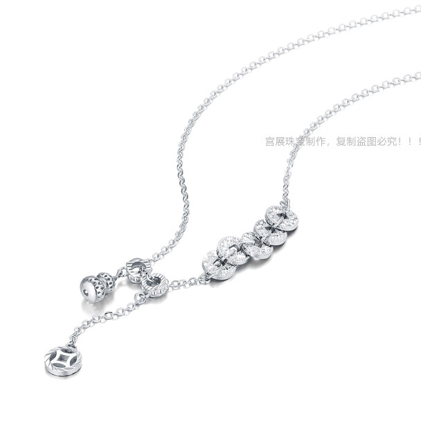 Gongzhan pt950 platinum Five Emperors Money Gourd Necklace Tassel Coin Pendant Retro National Trend Authentic Platinum Chain Set for Women Five Emperors Money Gourd Platinum Necklace About 9.2 Grams