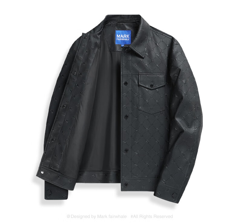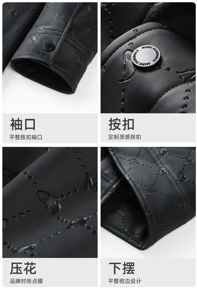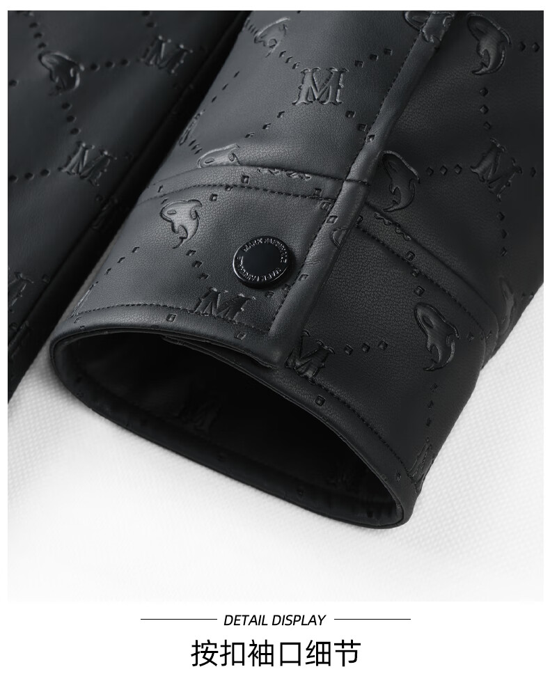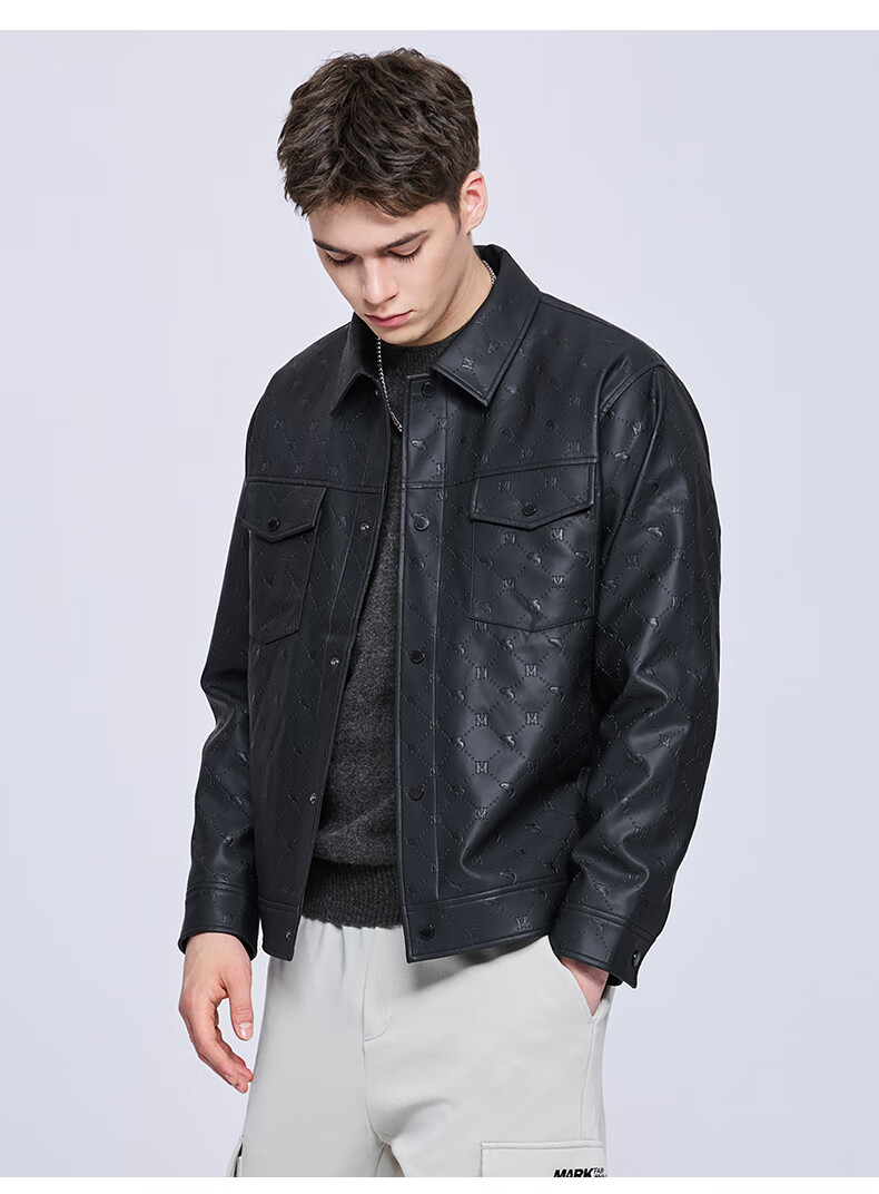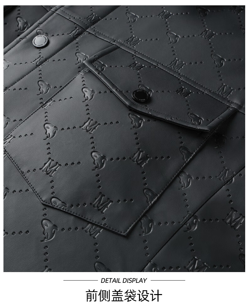 Mark Huafei light luxury embossed leather lapel jacket men's 2026 spring trend handsome motorcycle suit pu jacket 1086 black 001 regular M 170