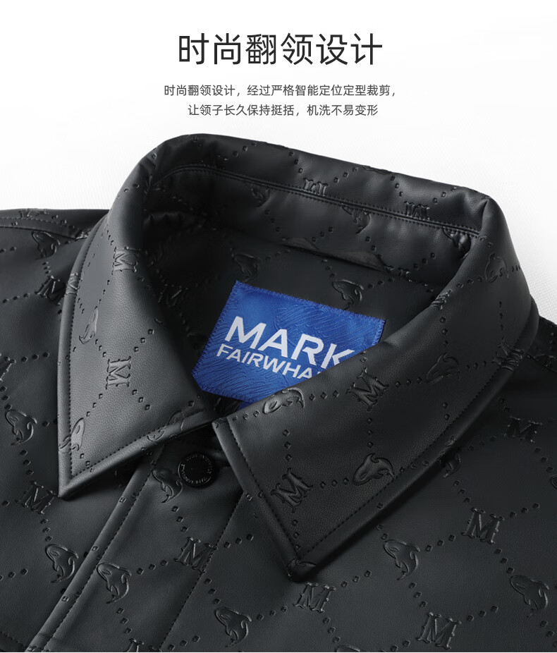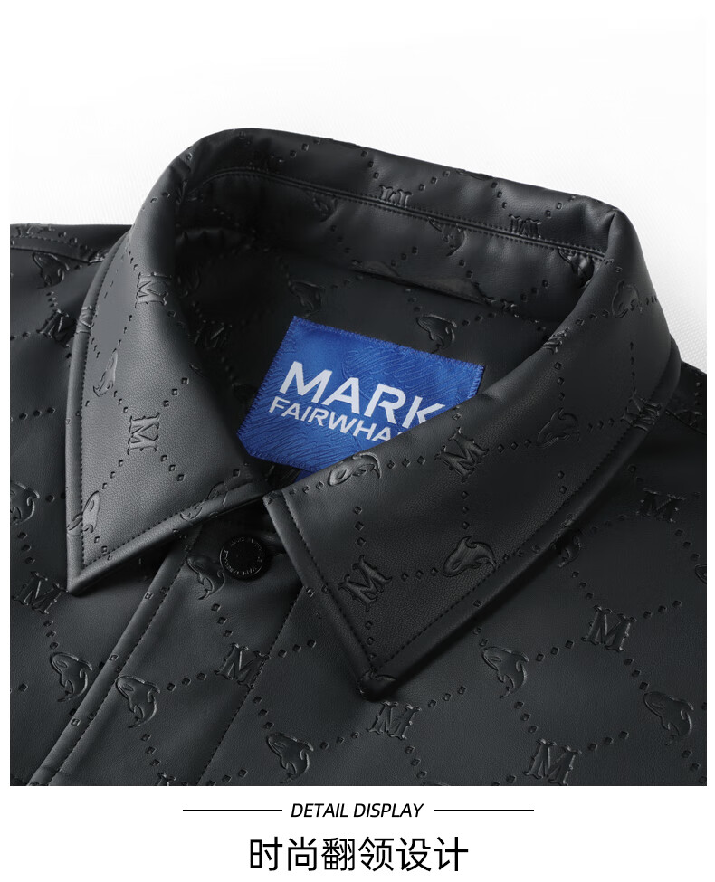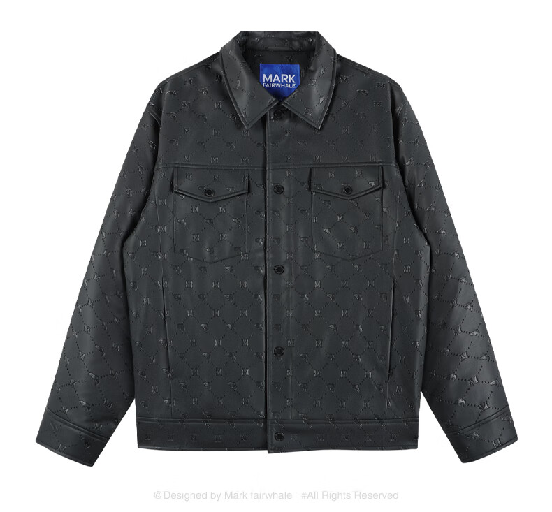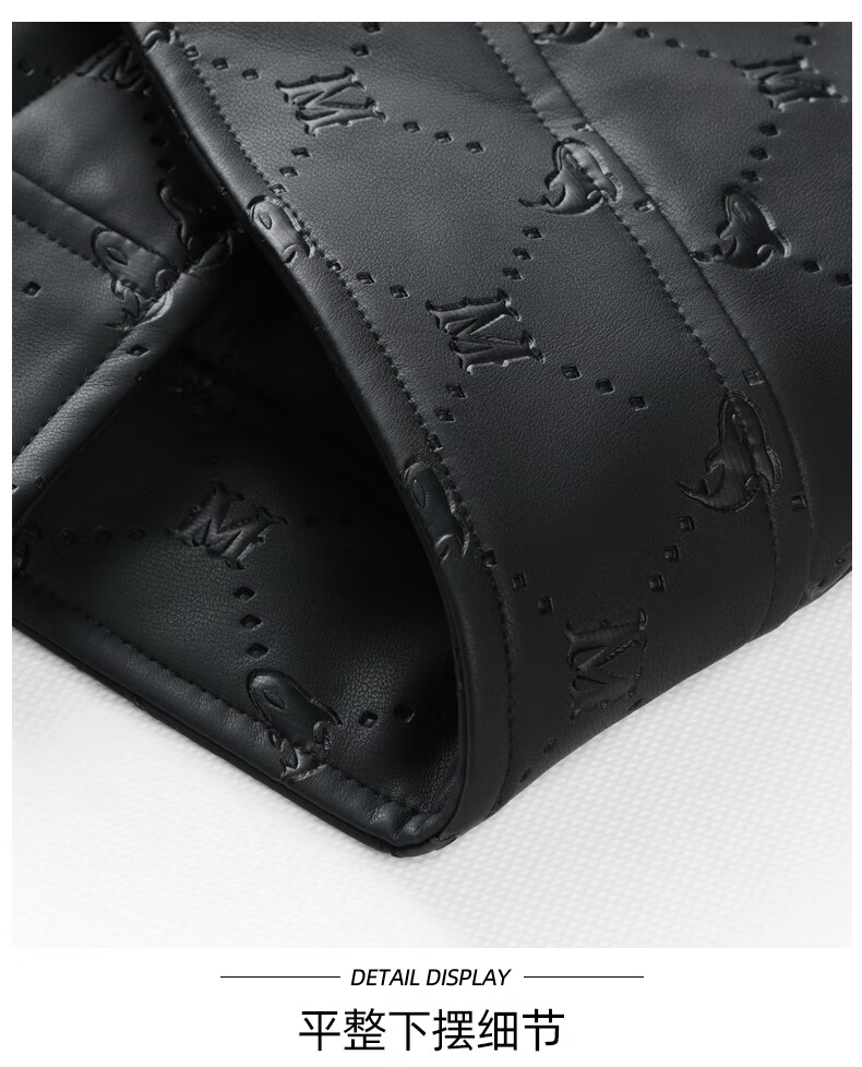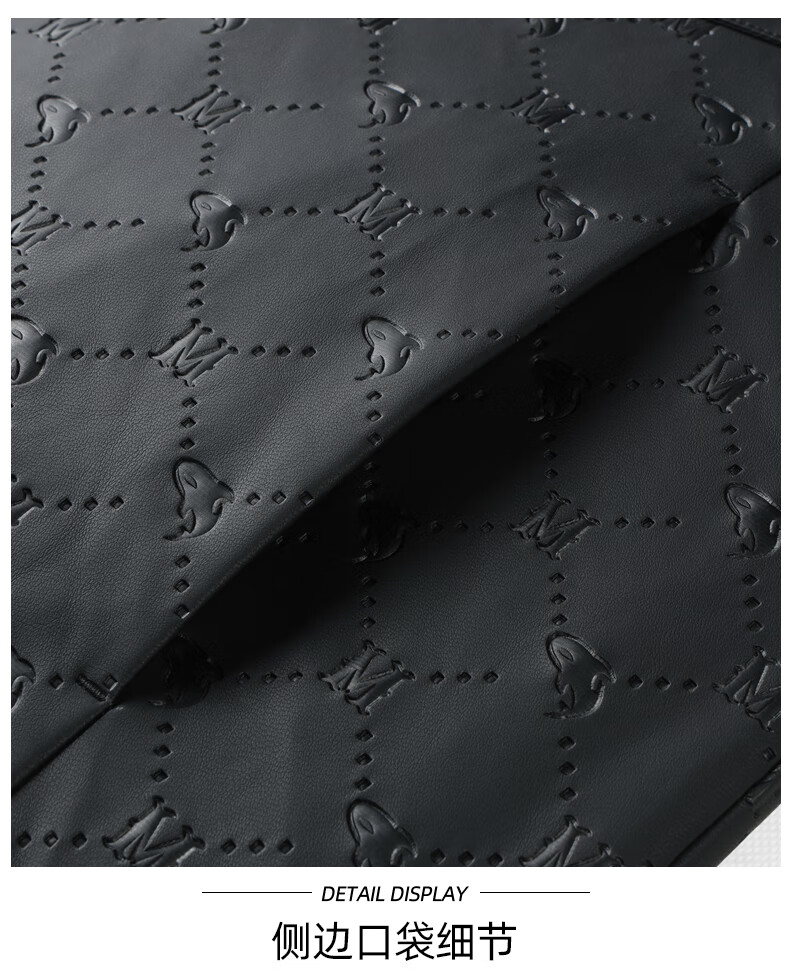 Mark Huafei light luxury embossed leather lapel jacket men's 2026 spring trend handsome motorcycle suit pu jacket 1086 black 001 regular M 170