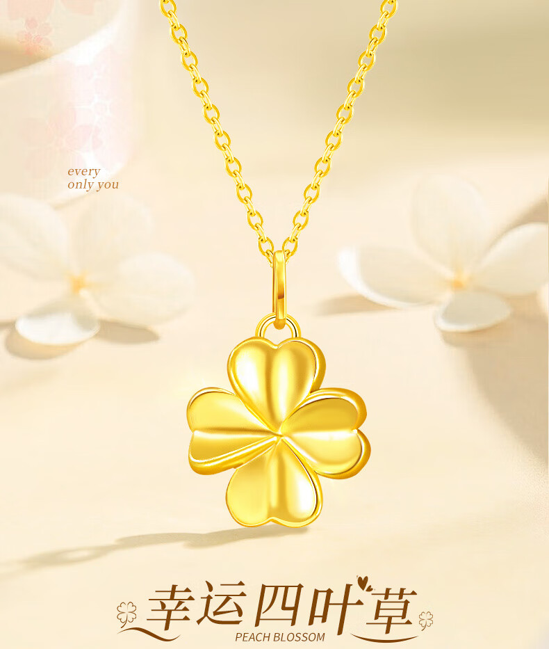 Chinese gold four-leaf clover gold necklace for women 18k gold pendant birthday gift for girlfriend mom and wife wedding anniversary 18k four-leaf clover pendant free S925 chain
