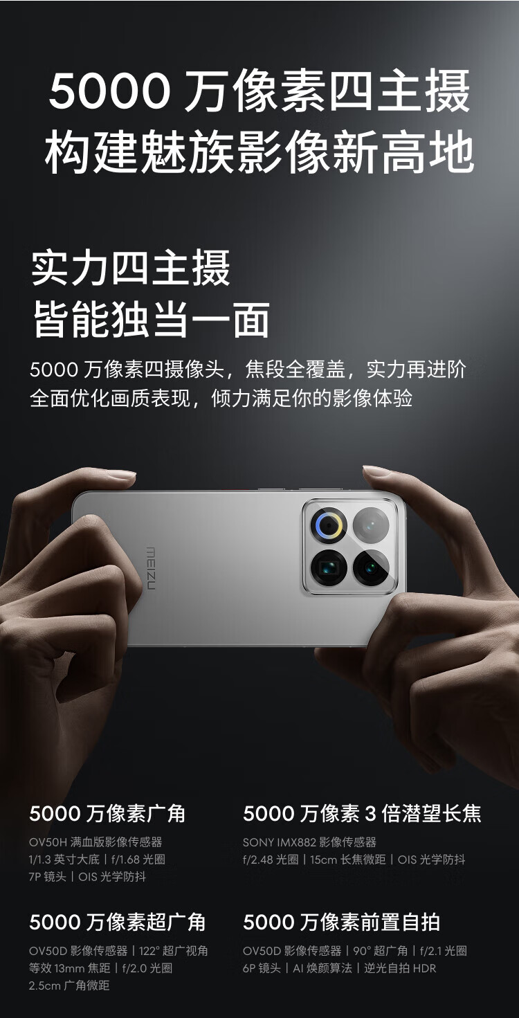 Meizu 22 Meizu 50 million flagship four main cameras 3X ultra-clear periscope telephoto fourth generation Snapdragon 8s 5G camera phone Meizu White 12+256GB official standard configuration