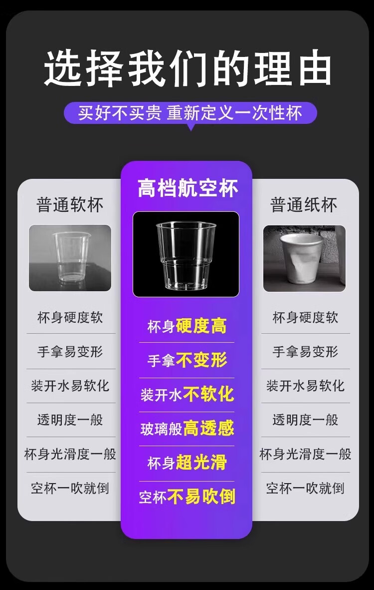 Disposable thickened aviation cup food grade plastic cup household outdoor beer cup dining cup drinking cup 10 pieces 160mL hard aviation cup