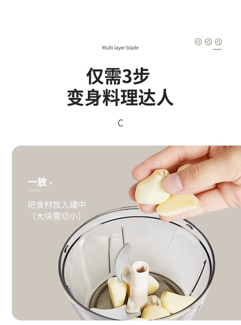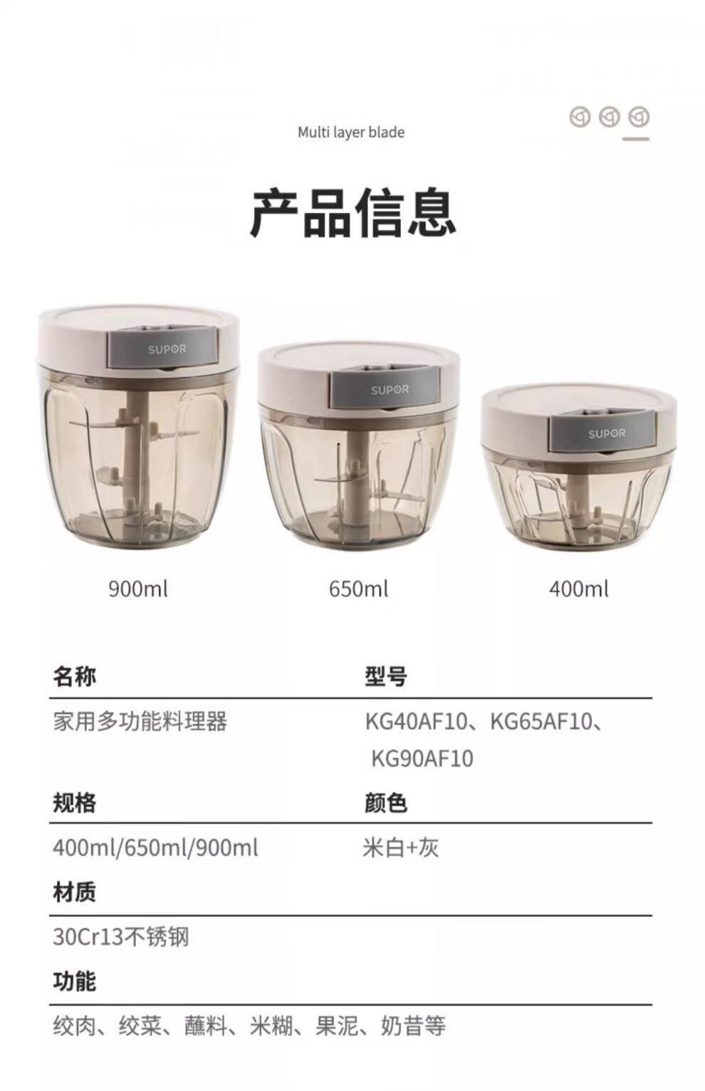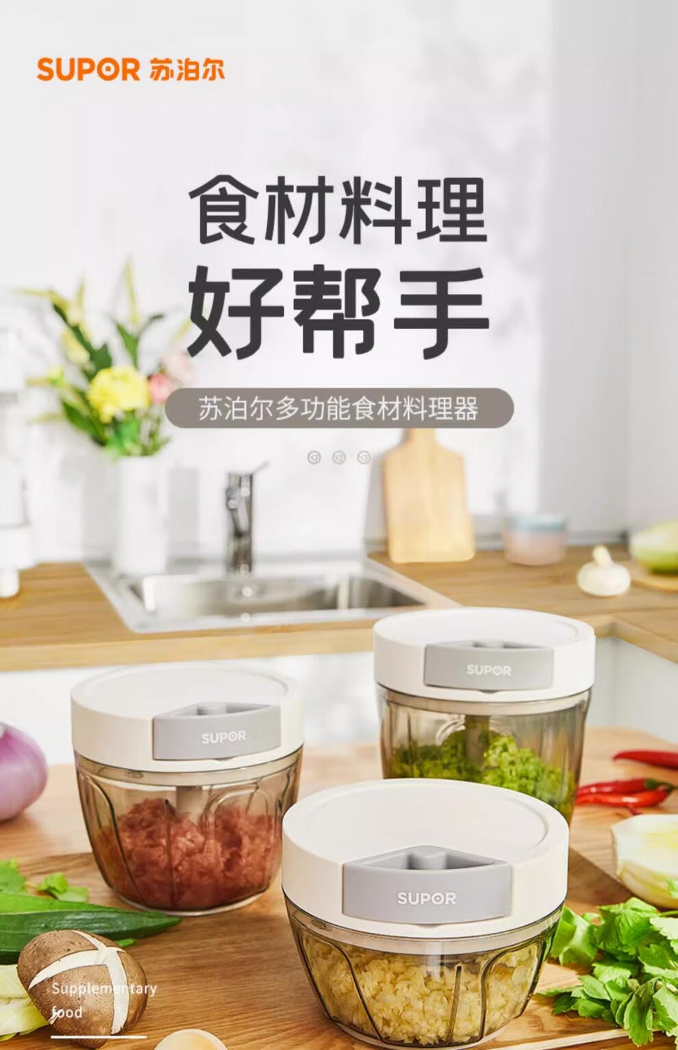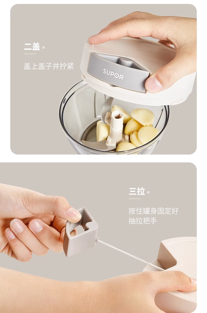 Supor manual garlic puller garlic artifact household garlic pounder garlic crusher garlic grinder 3-piece complete set 900ml+650ml+400ml
