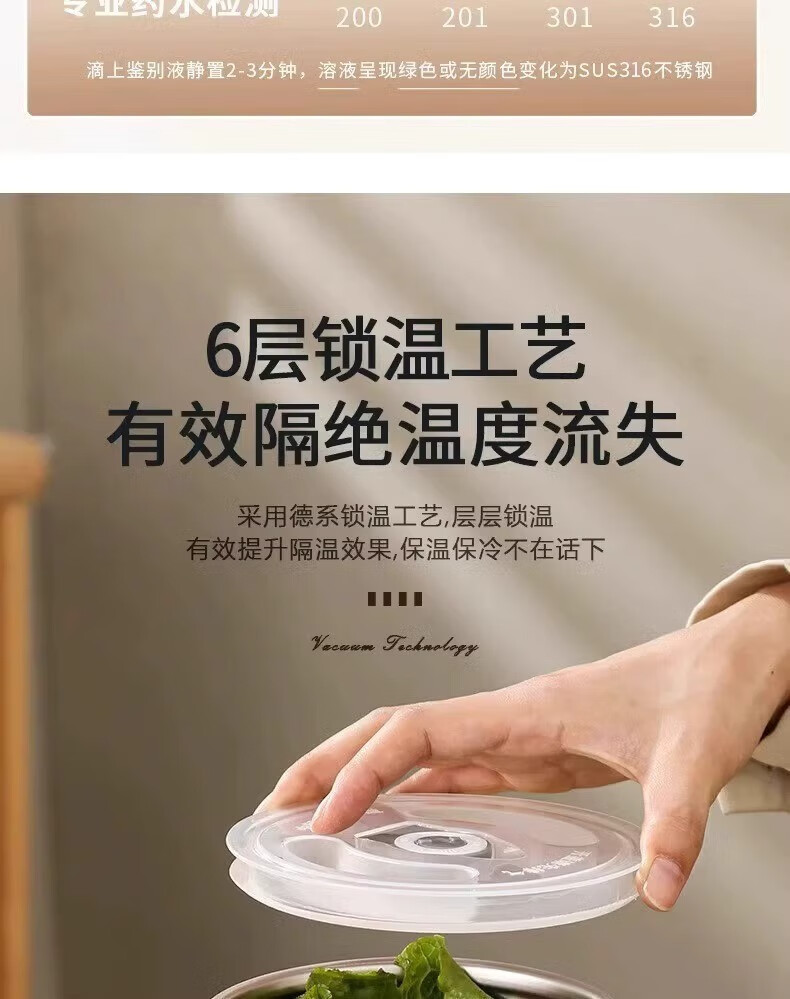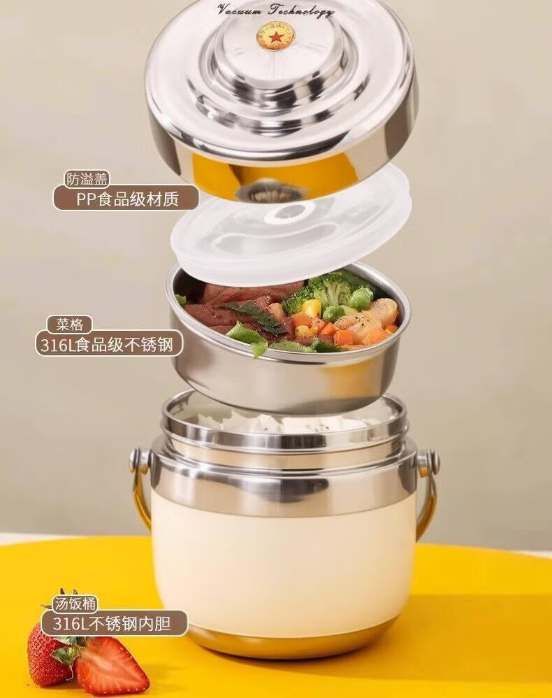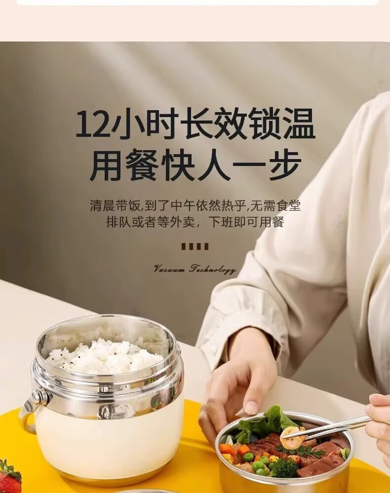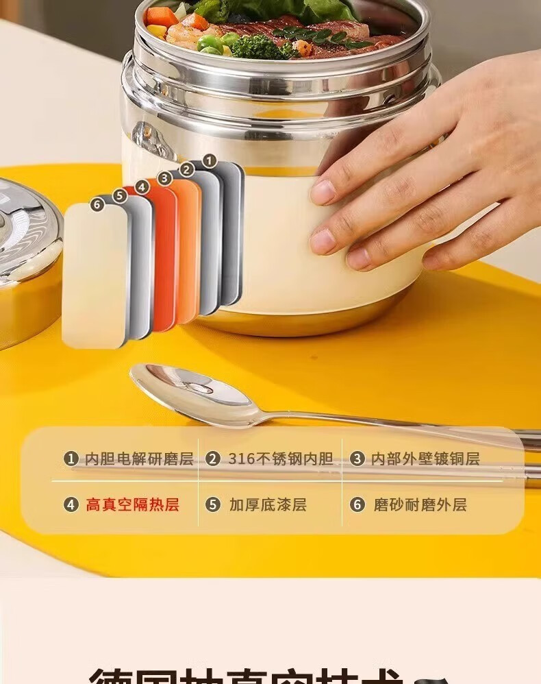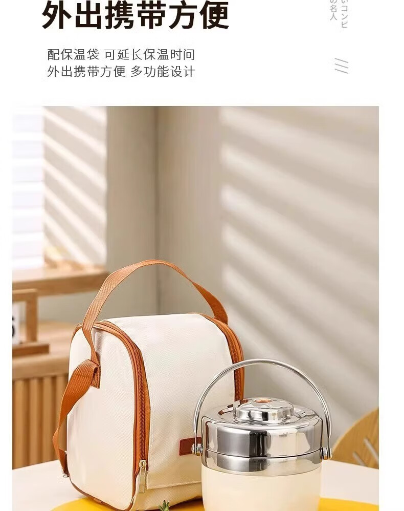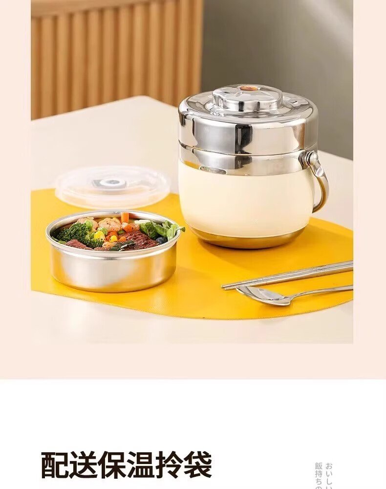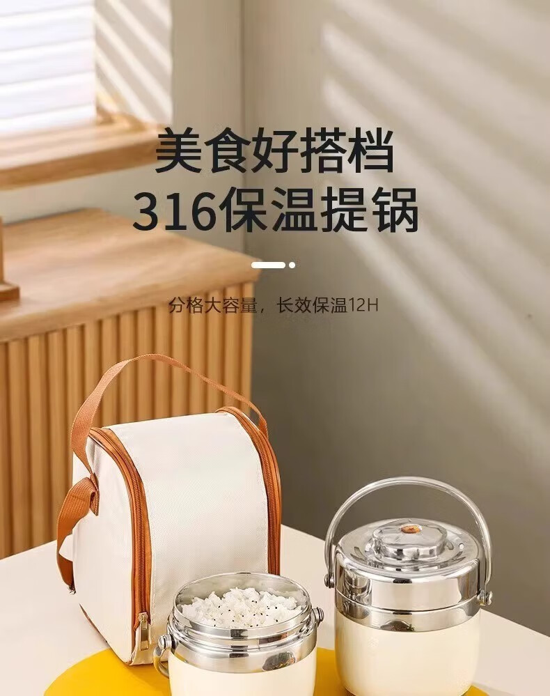 SUPOR (SUPOR) 316 stainless steel extra long insulated lunch box bag for students, 24-hour portable lunch box for office workers, 316 steel pot (natural color) free tableware 1.5L