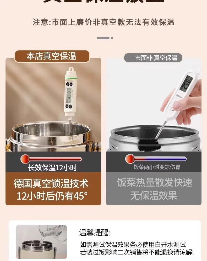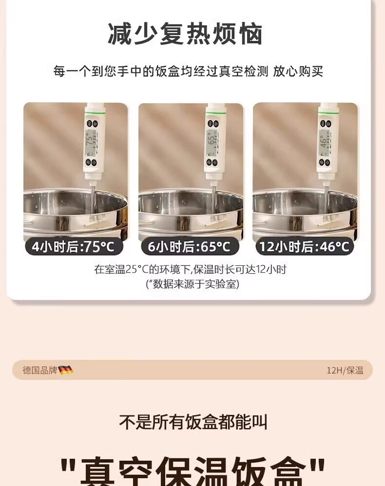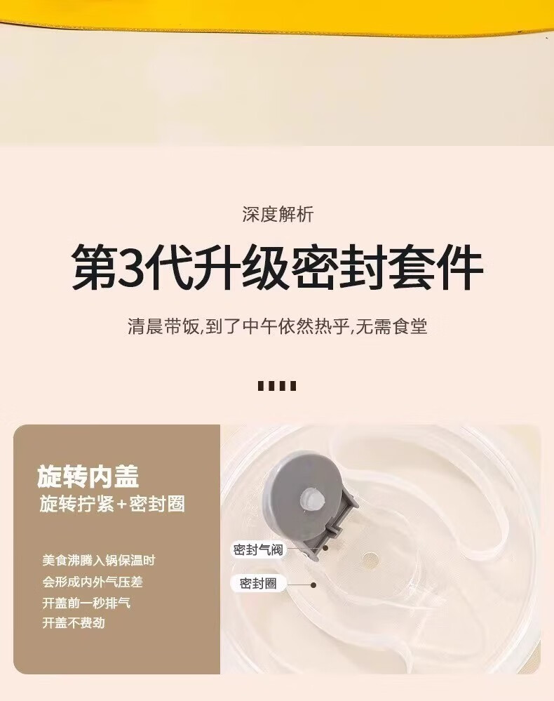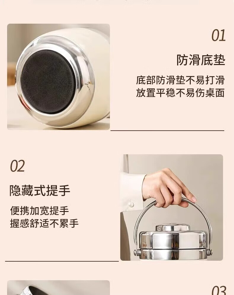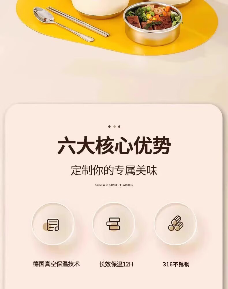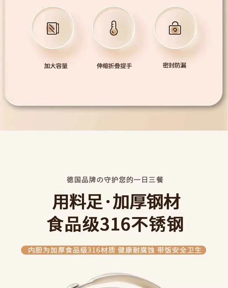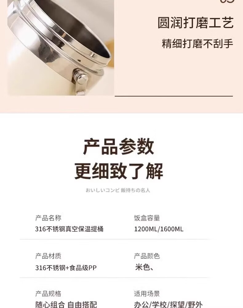 SUPOR (SUPOR) 316 stainless steel extra long insulated lunch box bag for students, 24-hour portable lunch box for office workers, 316 steel pot (natural color) free tableware 1.5L