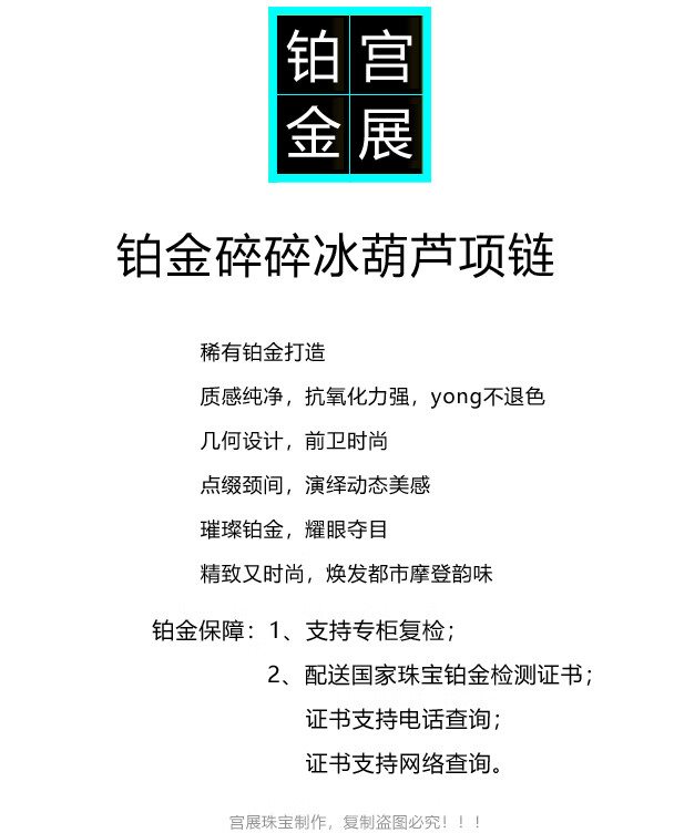 Gongzhan pt950 platinum crushed ice gourd necklace for women, sparkling platinum set chain, simple and elegant birthday gift for wife, crushed ice gourd pendant platinum necklace about 8.1 grams