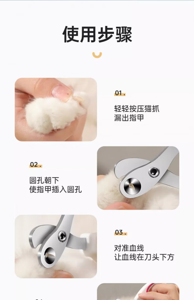 Bei Chuzhong Cat Nail Clippers Pet Dog Nail Clippers Cat Supplies Kitten Special Trimmer Nail Cutting Artifact Round Hole Model Universal Stainless Steel Pink White for Cats and Dogs No Splits 0 Cuts Precise Trimming to Prevent Cuts