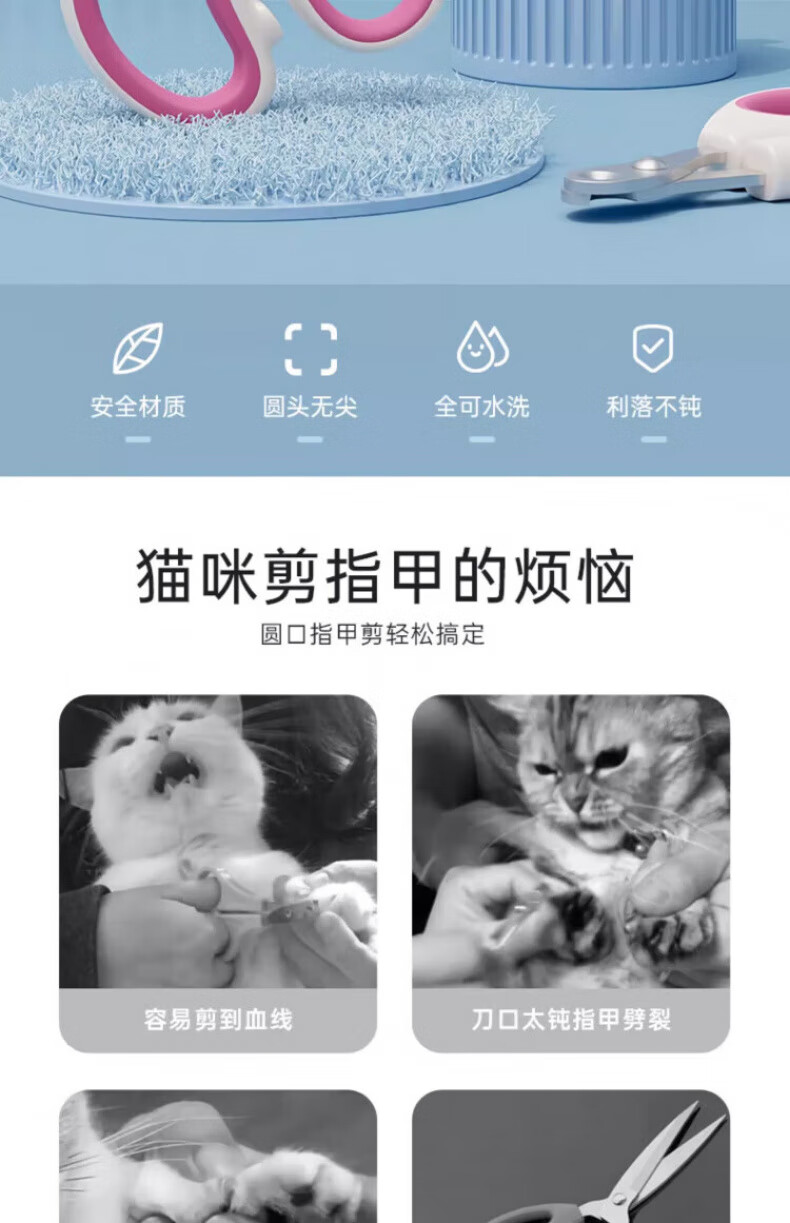 Bei Chuzhong Cat Nail Clippers Pet Dog Nail Clippers Cat Supplies Kitten Special Trimmer Nail Cutting Artifact Round Hole Model Universal Stainless Steel Blue and White for Cats and Dogs No Splits 0 Cuts Accurate Trimming to Prevent Cuts