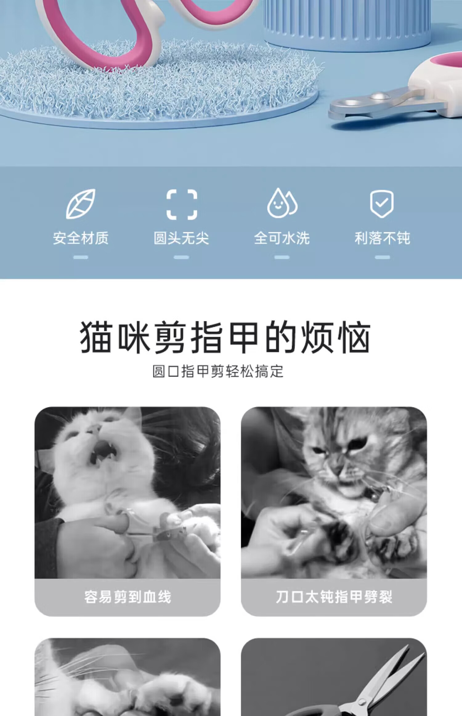 Bei Chuzhong Cat Nail Clippers Pet Dog Nail Clippers Cat Supplies Kitten Special Trimmer Nail Cutting Artifact Non-Porous Model Universal Stainless Steel Pink White for Cats and Dogs No Splits 0 Cuts Precise Trimming to Prevent Cuts