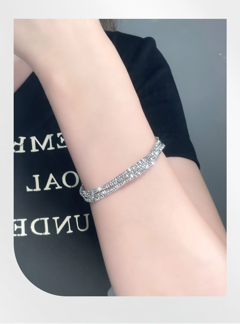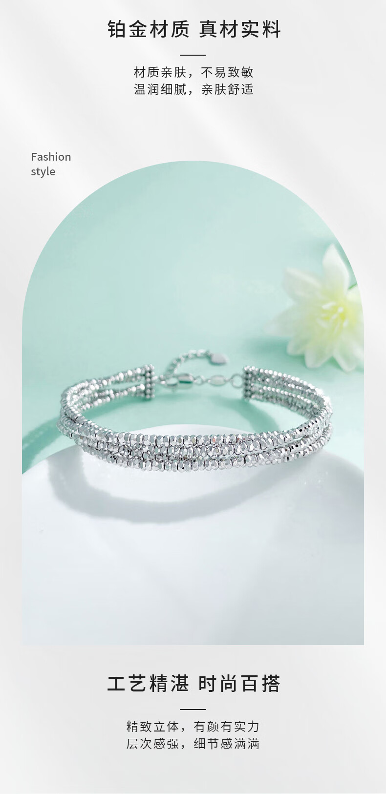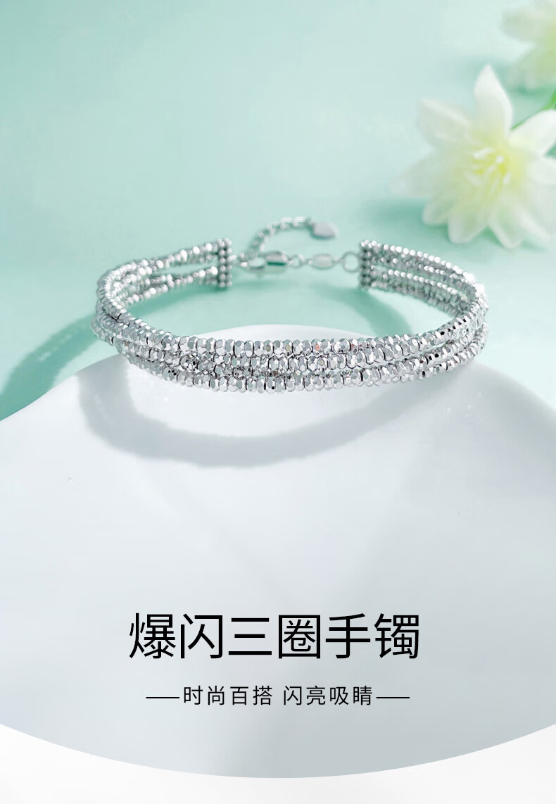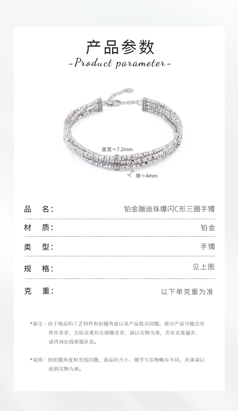 Chinese gold platinum bracelet with platinum bouncy sparkling C-shaped three-circle open bracelet adjustable gift for wife's birthday gift about 21.63g