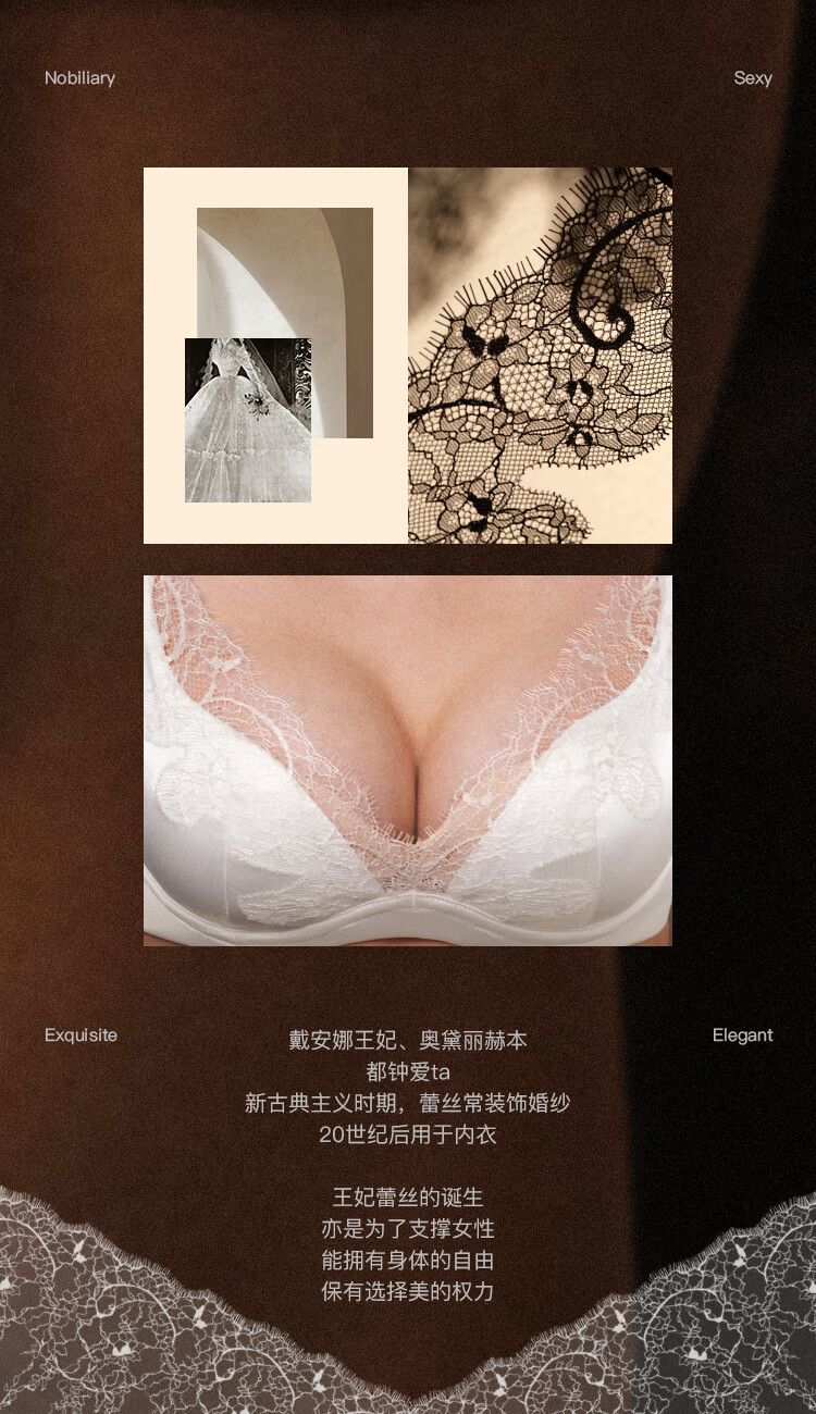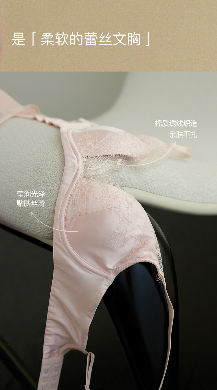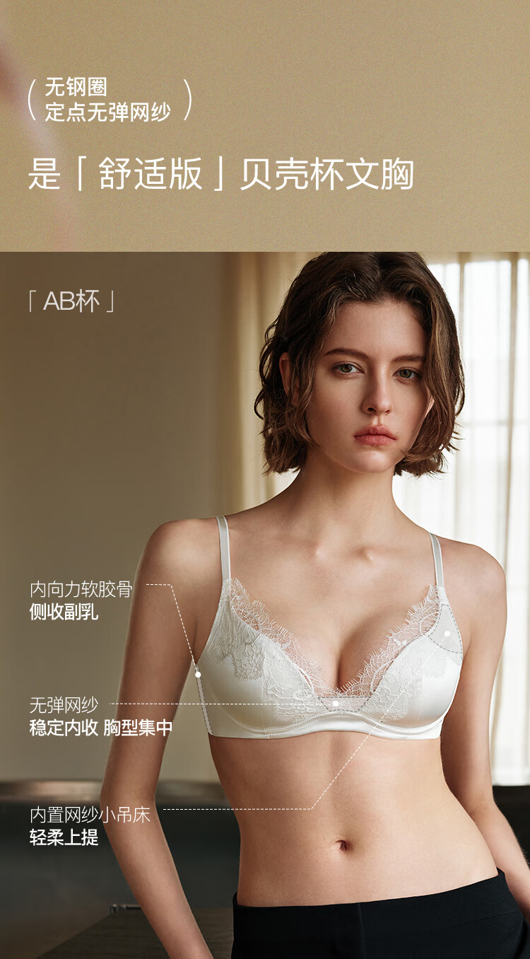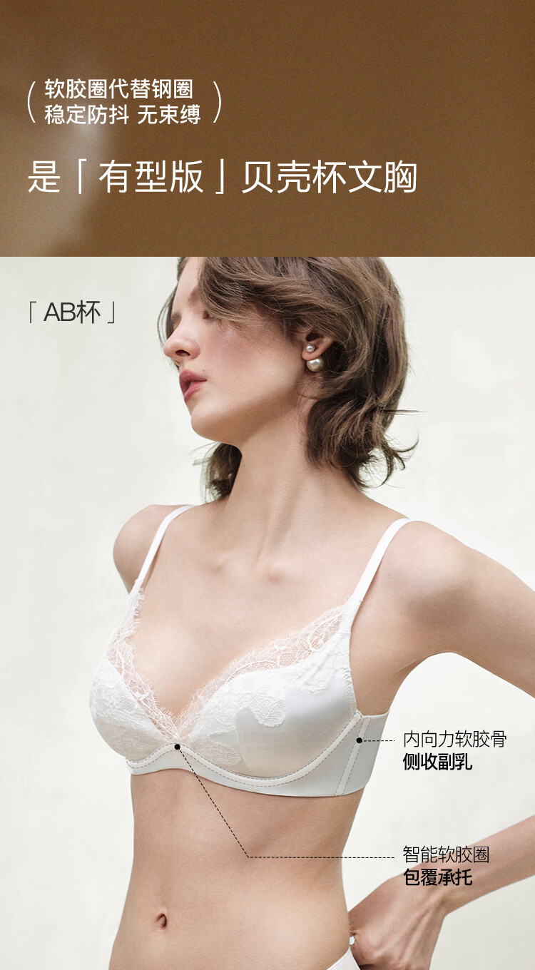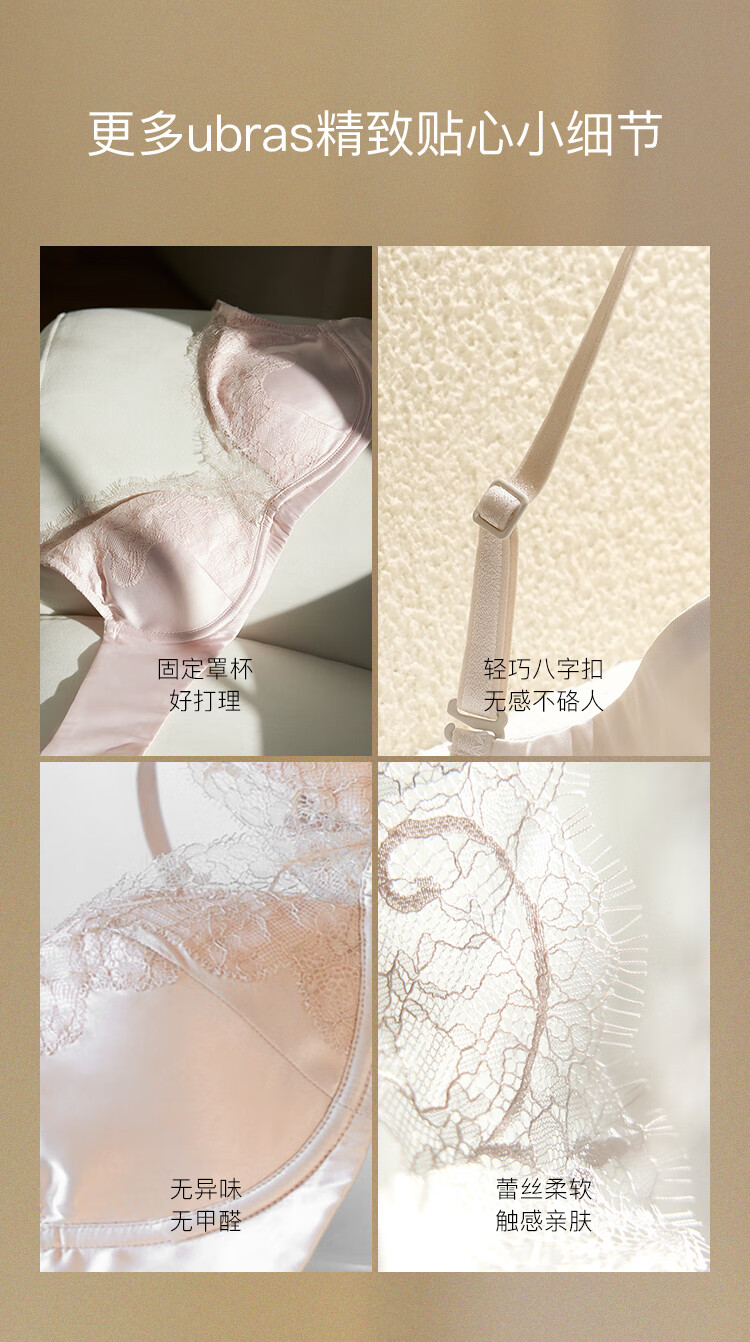 Ubras 25th new product Princess Lace French Shell Cup Women's Bra Light Luxurious Sexy No Wires Bra Oatmeal Milk Color - Comfortable Version M 75A/75B