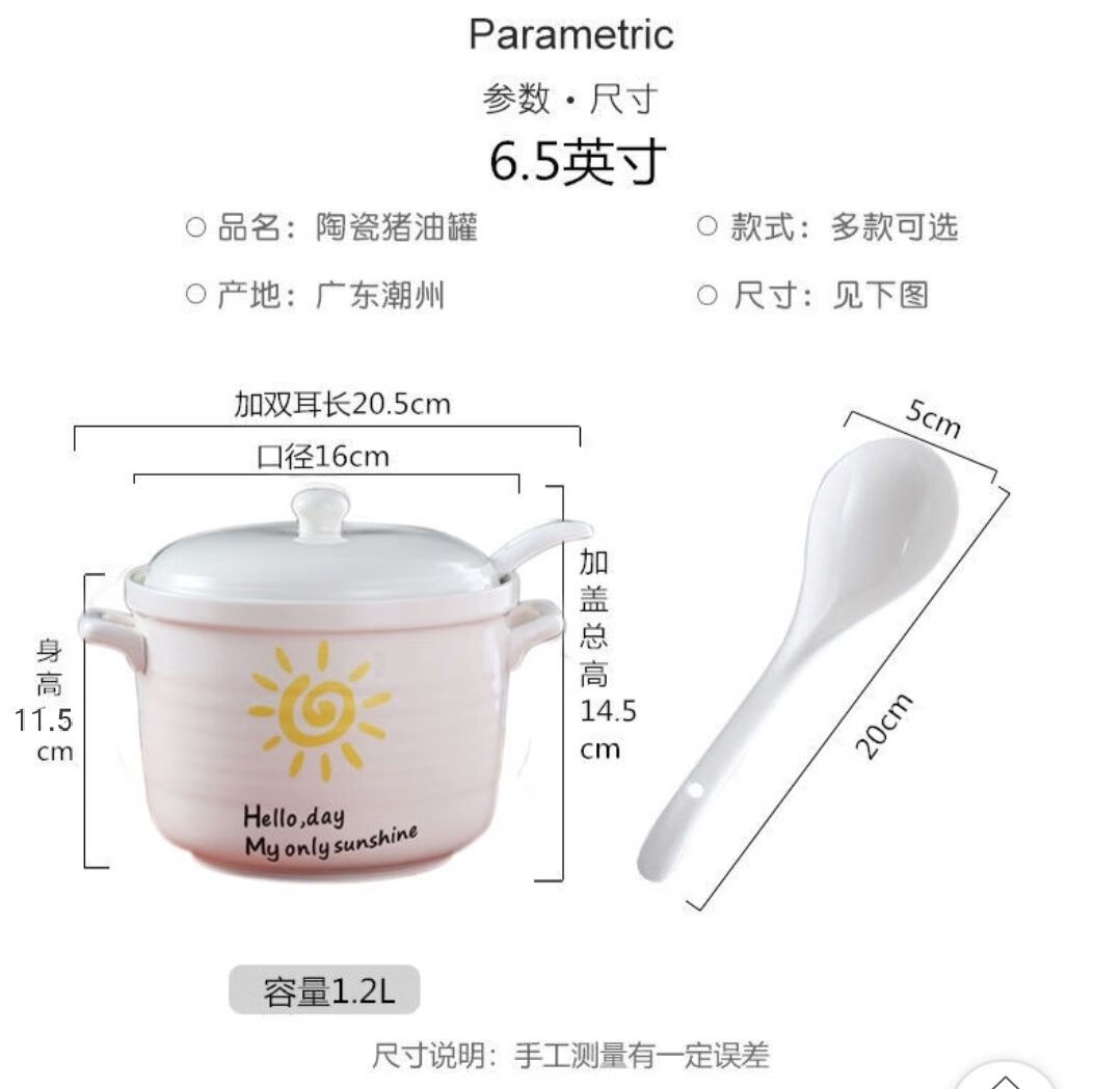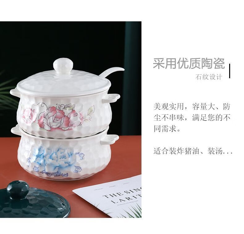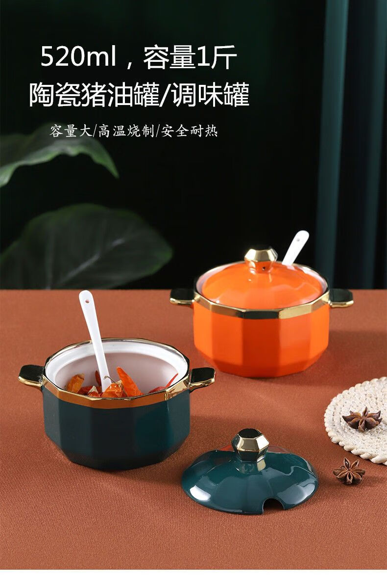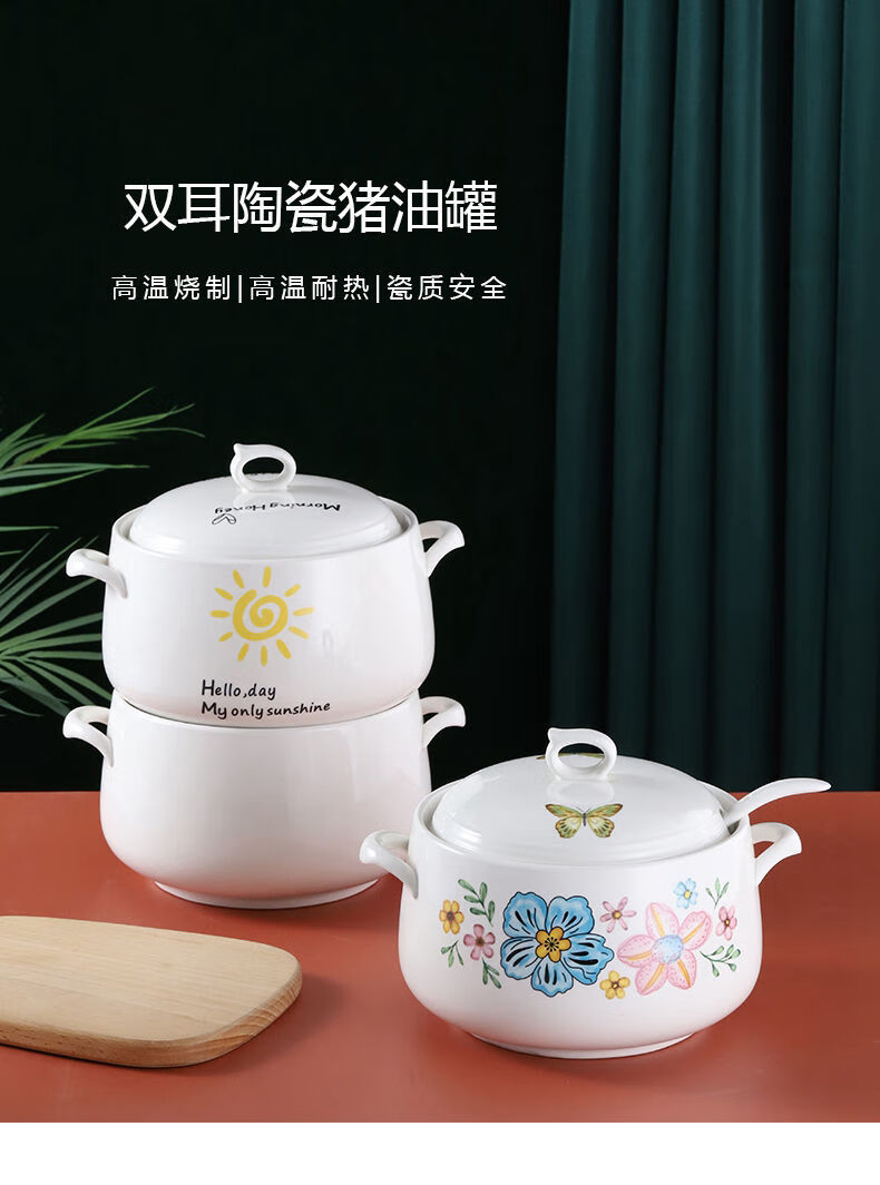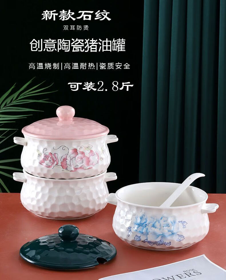 Wn Ceramic Large Lard Jar with Spoon High Temperature Resistant Large Capacity Household Chili Oil Jar Double-Eared Seasoning Jar with Lid Large Capacity 5Jin Jin is equal to 0.5 kg Lard Jar with Spoon-Huakai Fugui 1ml