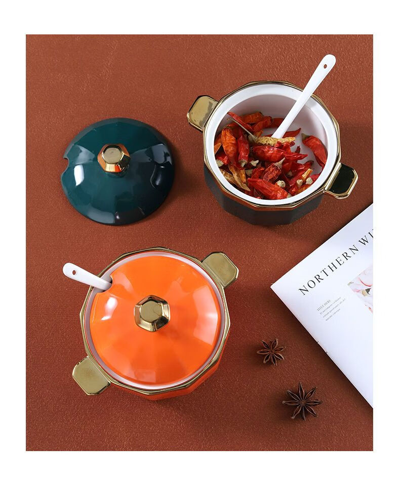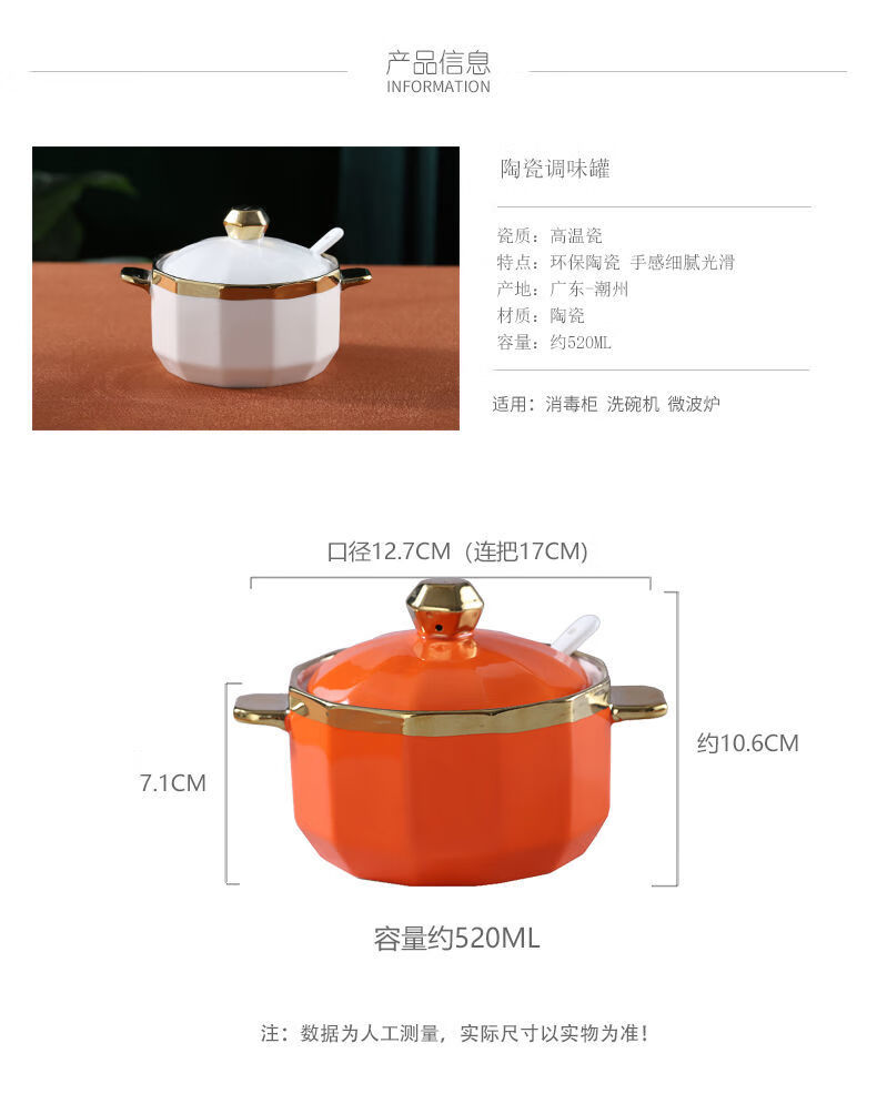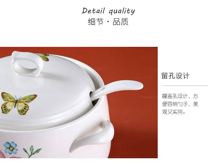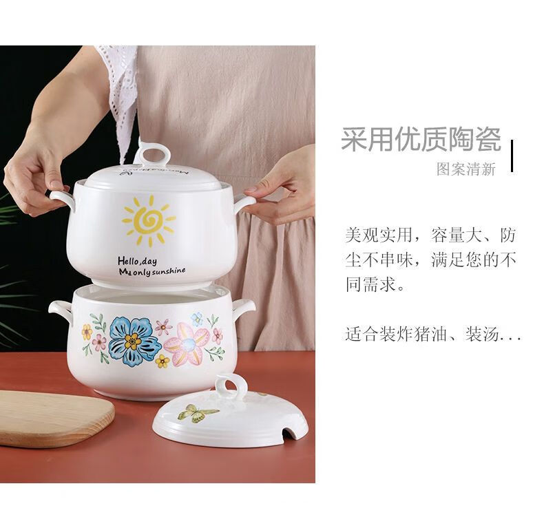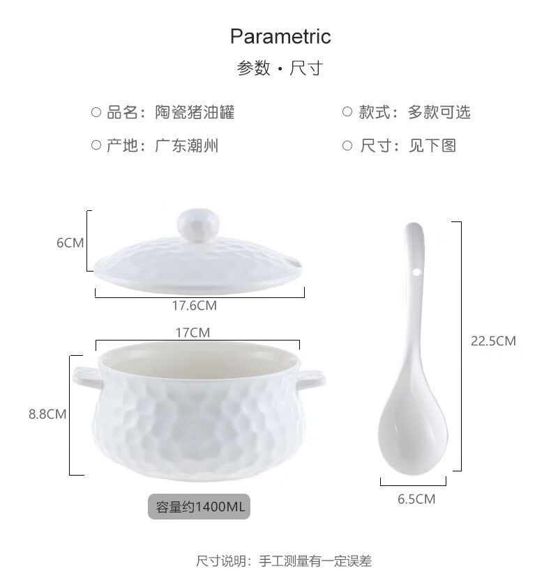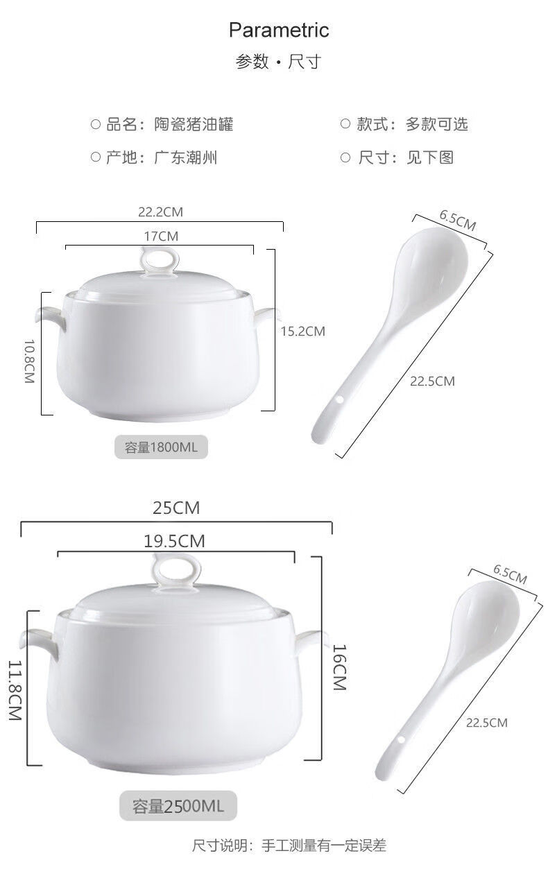 Wn Ceramic Large Lard Jar with Spoon High Temperature Resistant Large Capacity Household Chili Oil Jar Double-Eared Seasoning Jar with Lid Large Capacity 5Jin Jin is equal to 0.5 kg Lard Jar with Spoon-Huakai Fugui 1ml