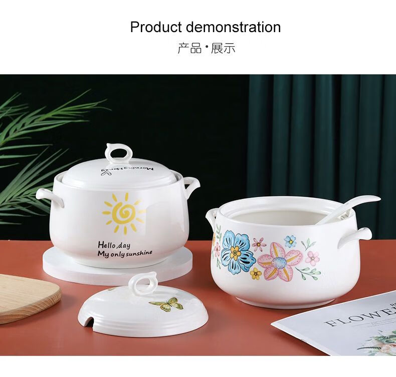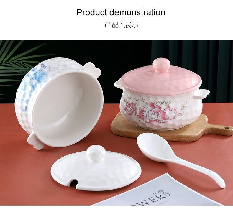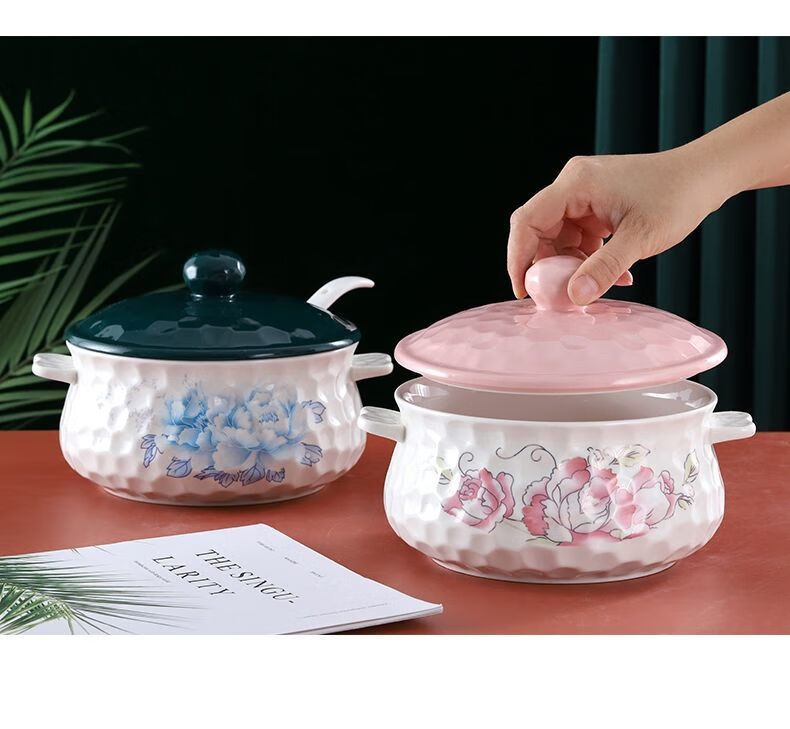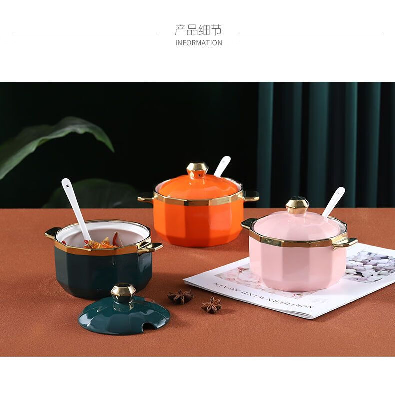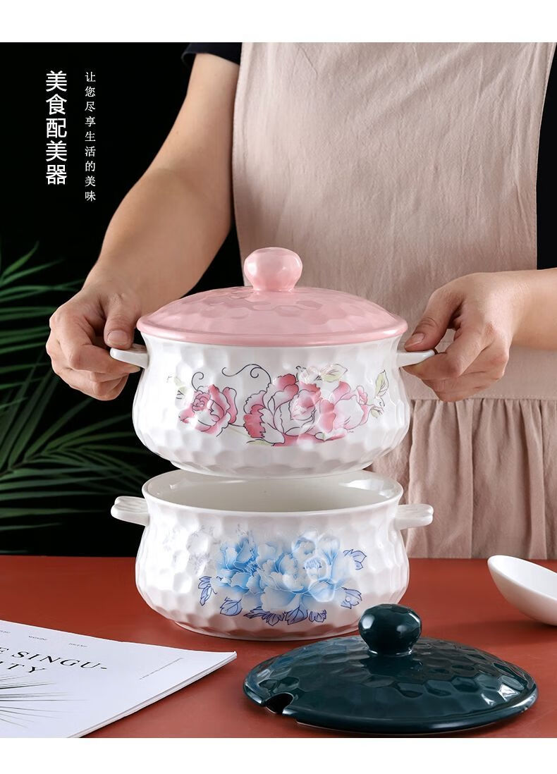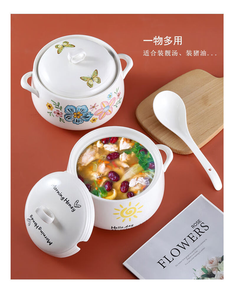 Wn Ceramic Large Lard Jar with Spoon High Temperature Resistant Large Capacity Household Chili Oil Jar Double-Eared Seasoning Jar with Lid Large Capacity 5Jin Jin is equal to 0.5 kg Lard Jar with Spoon-Huakai Fugui 1ml