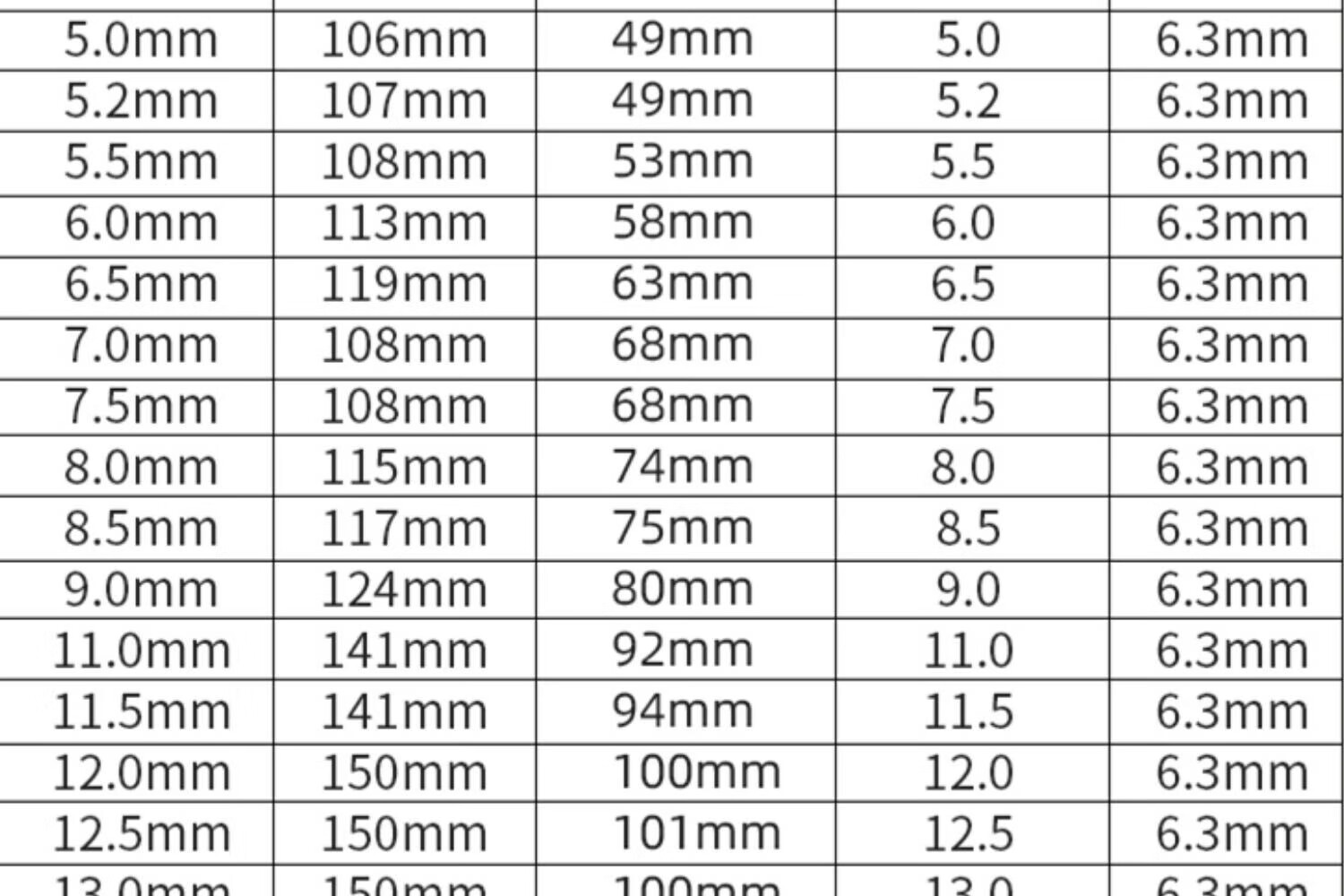 76.2 81.3 86.4 91.5 96.5 101.6 106.7 112 117 122 127 132 137 142