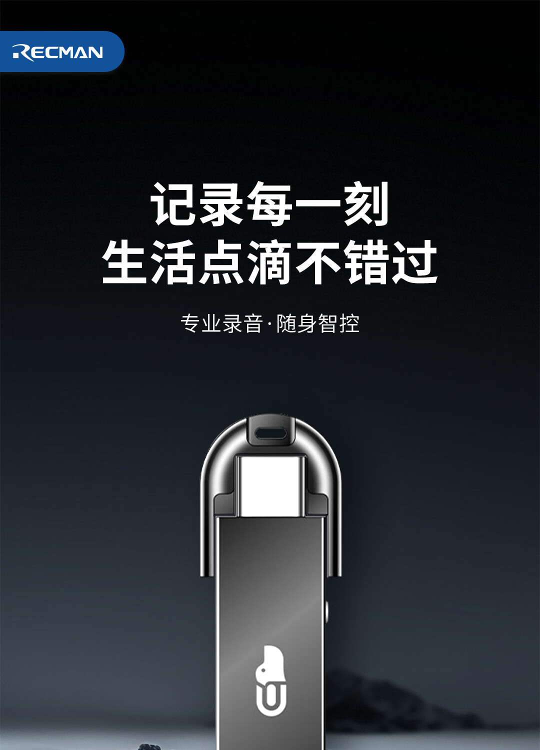 RECMAN U disk recording artifact small portable recording equipment high-definition noise reduction large capacity ultra-long standby learning training negotiation evidence collection lawyer recommendation (AI translation and transcription) recording U disk champagne gold 128G