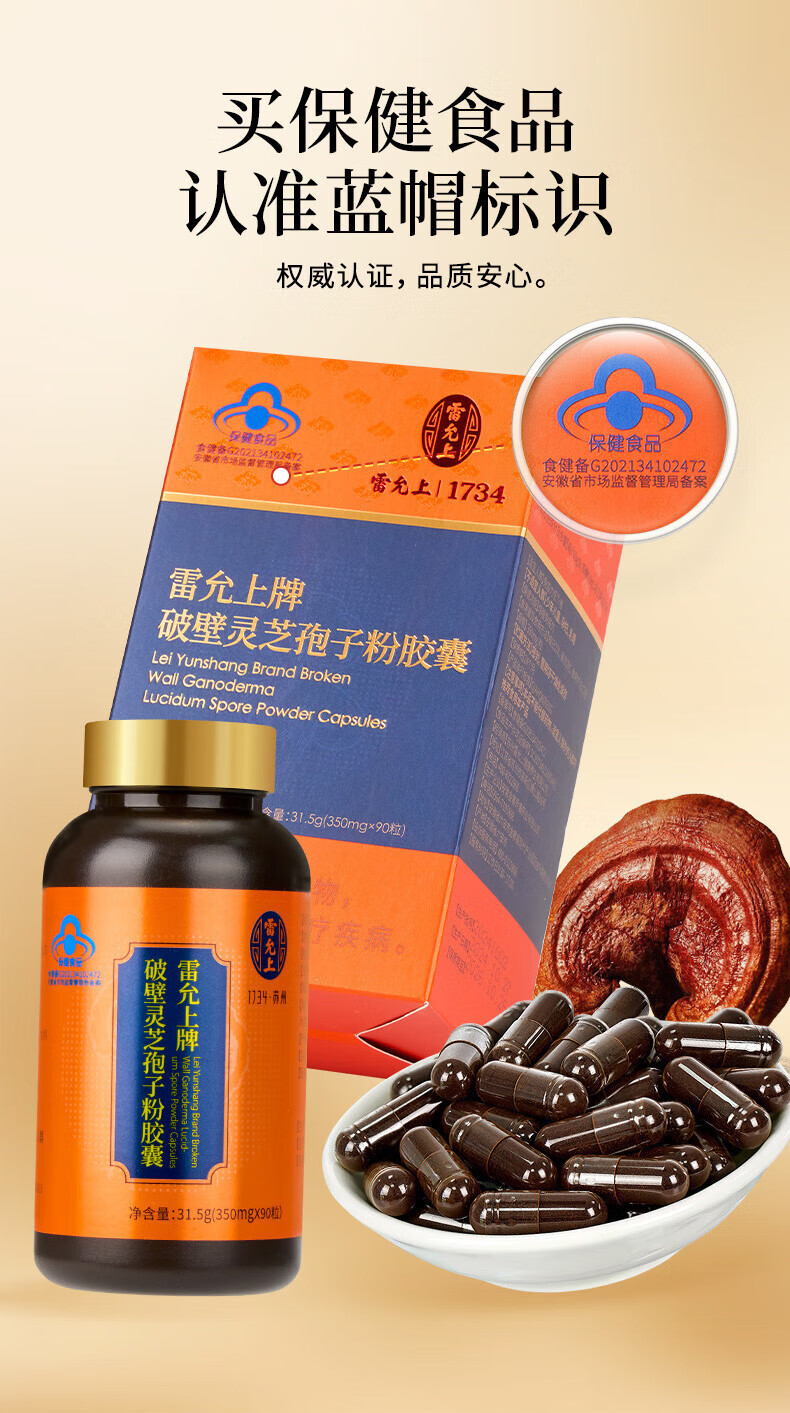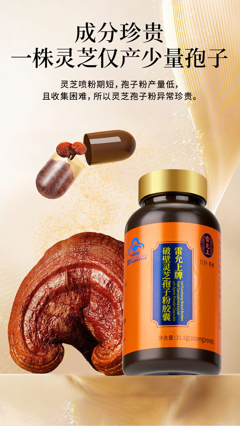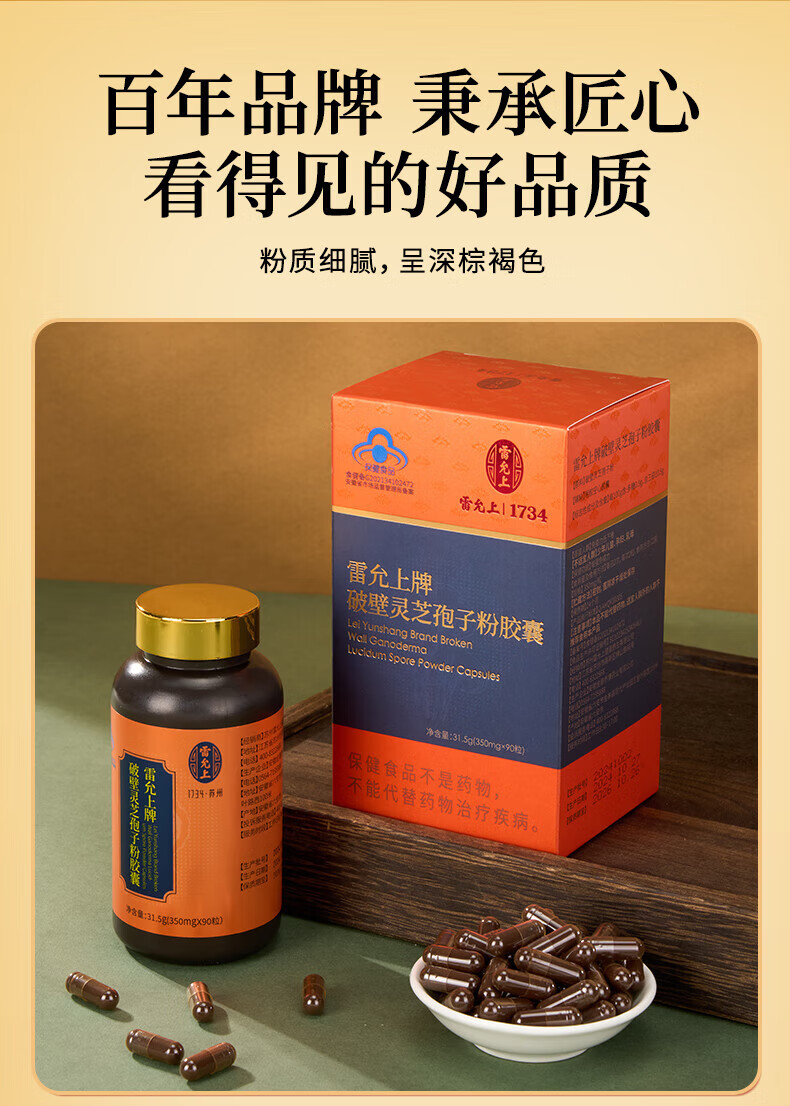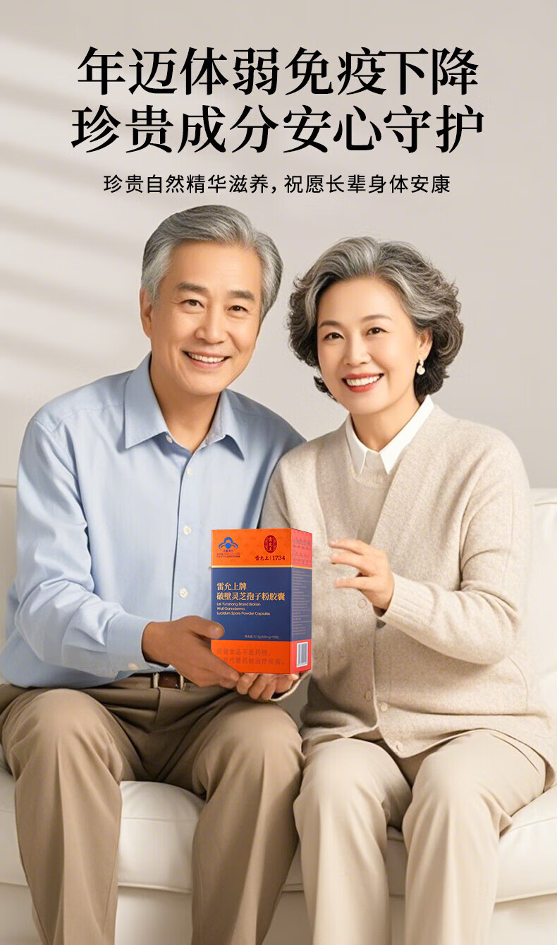 Lei Yunshang Official Organic Broken Ganoderma Lucidum Spore Powder Capsules to Enhance Immunity and Give Elderly Health Nutrition Products Trial Pack 12 Capsules of Spore Powder