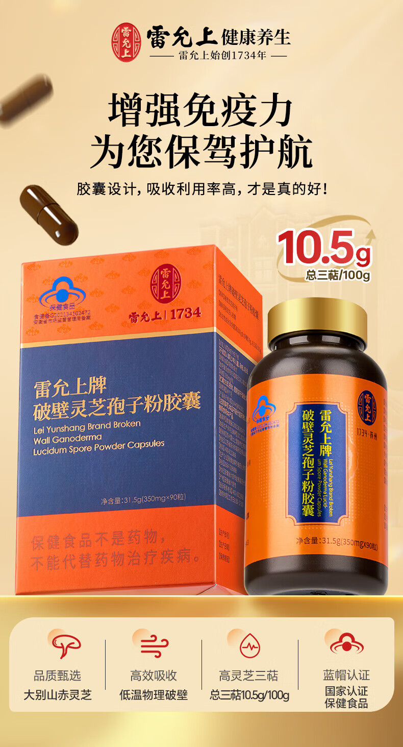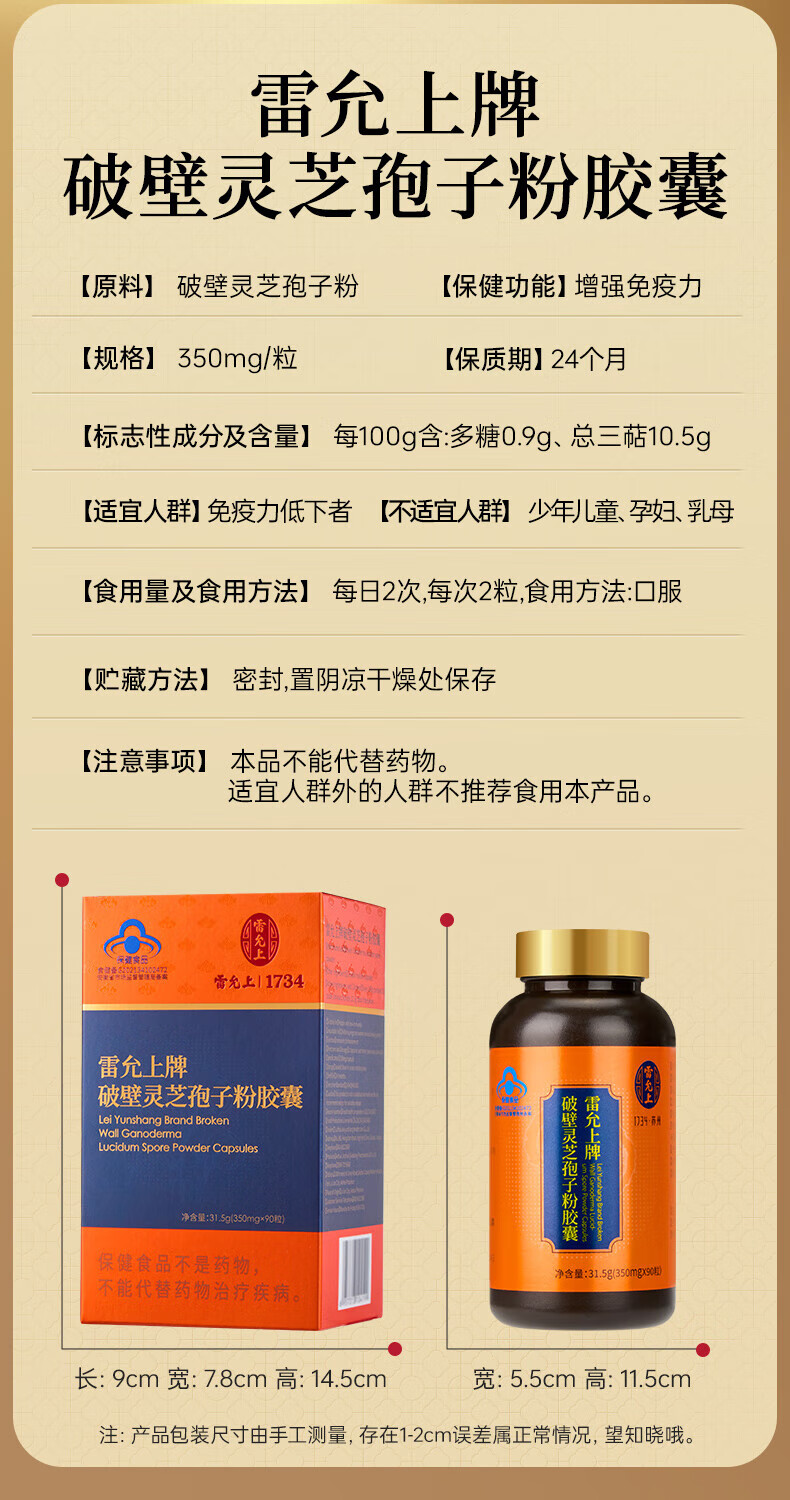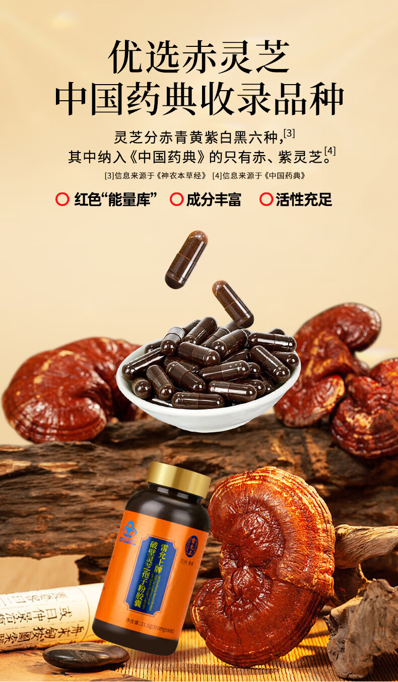 Lei Yunshang Official Organic Broken Ganoderma Lucidum Spore Powder Capsules to Enhance Immunity and Give Elderly Health Nutrition Products Trial Pack 12 Capsules of Spore Powder