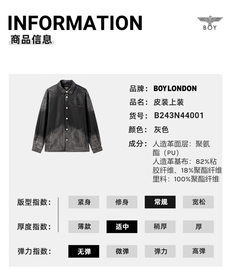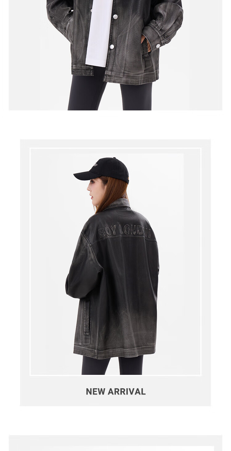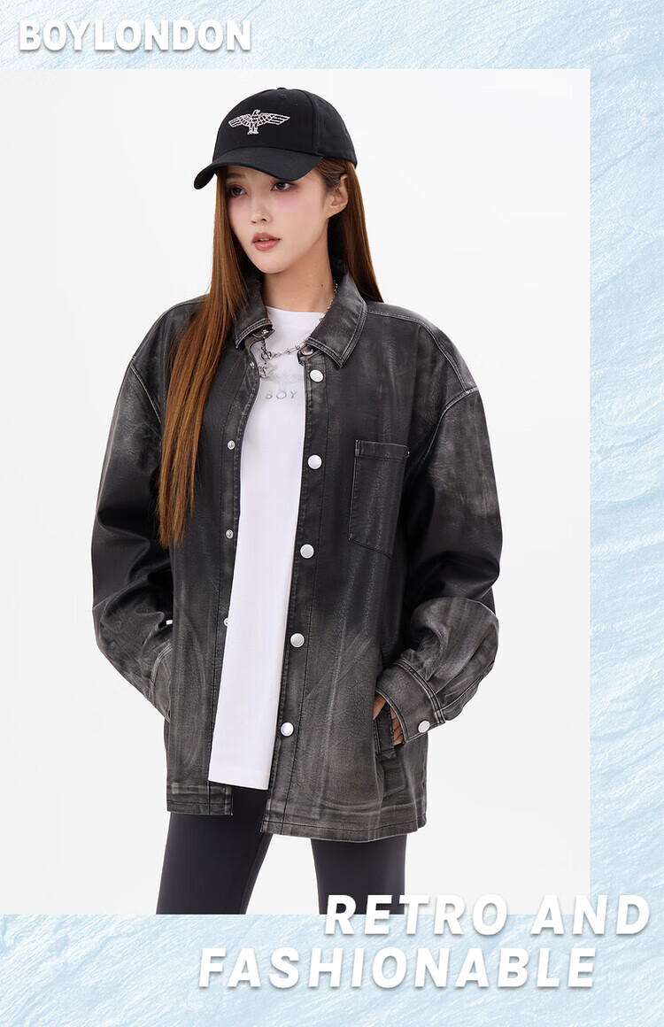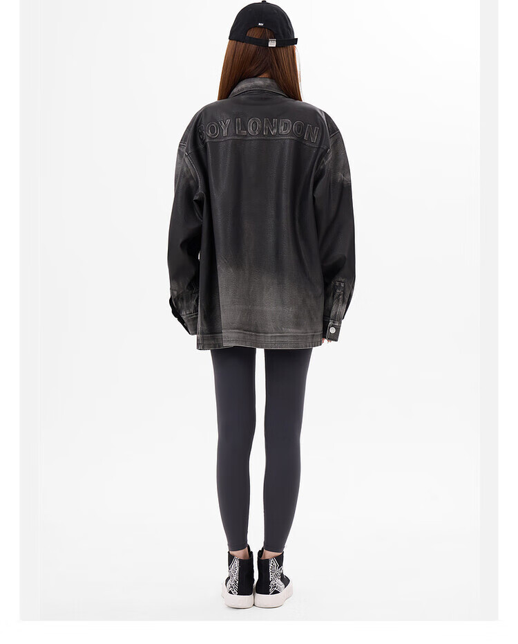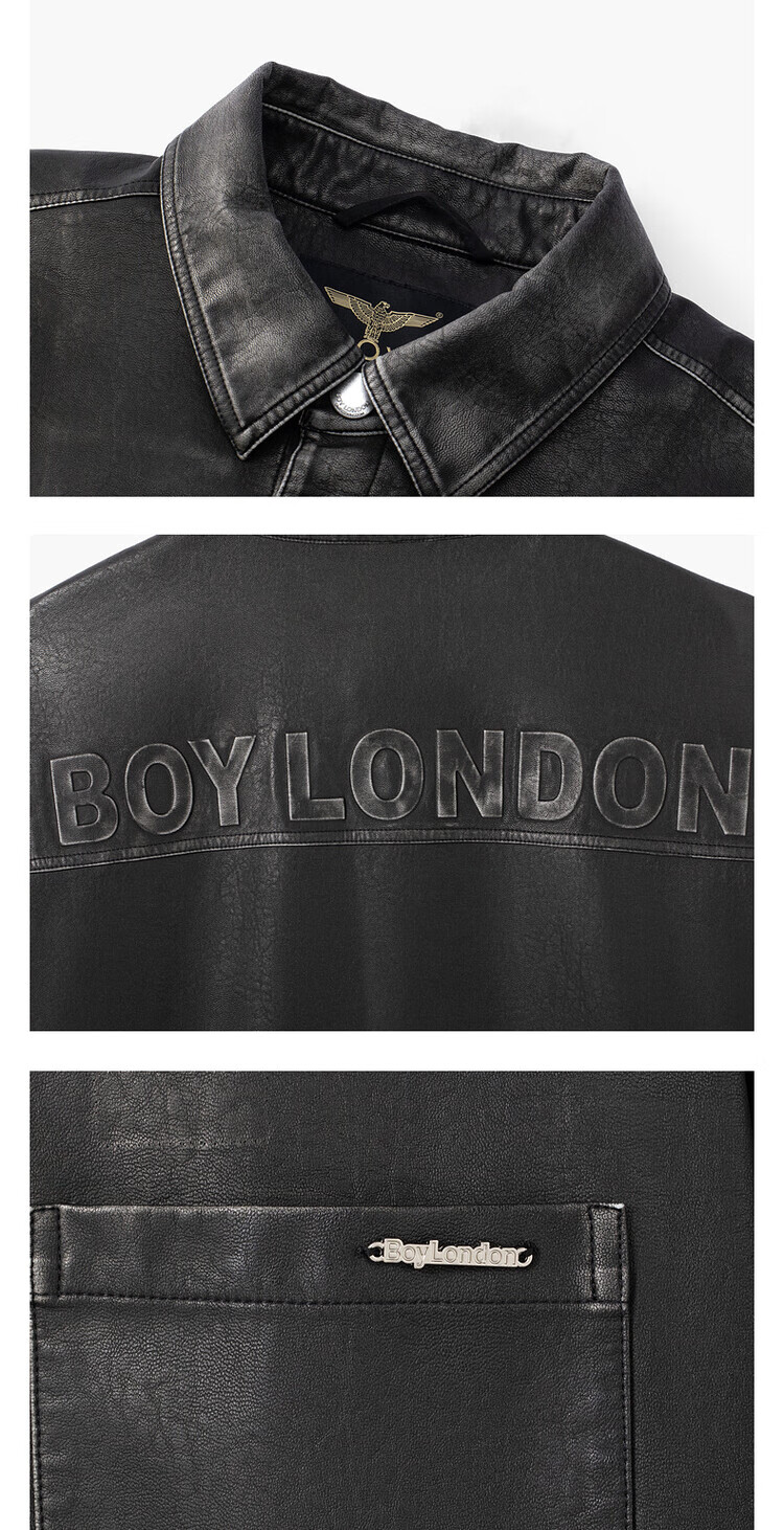 BOY LONDONBOYLONDON spring couple style long-sleeved three-dimensional letter gradient retro style imitation leather jacket N44001 Gray XS