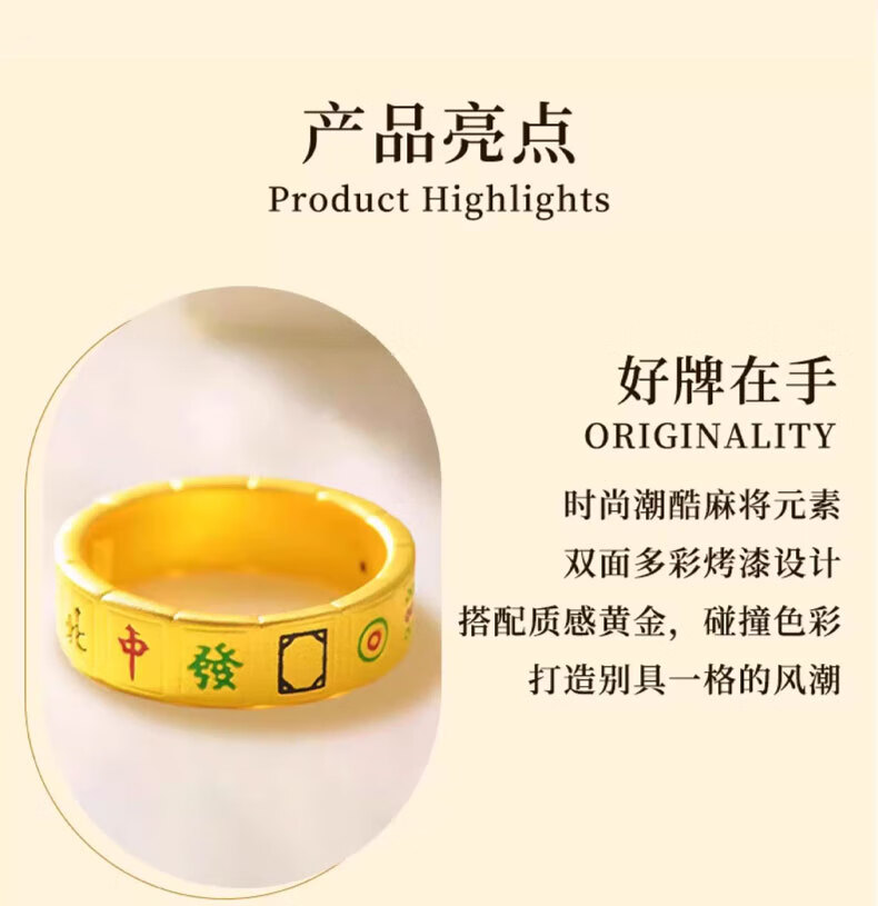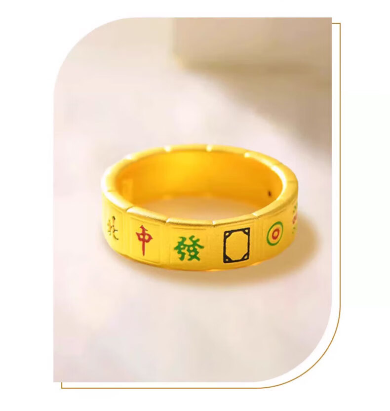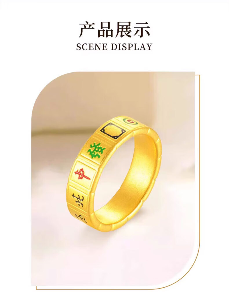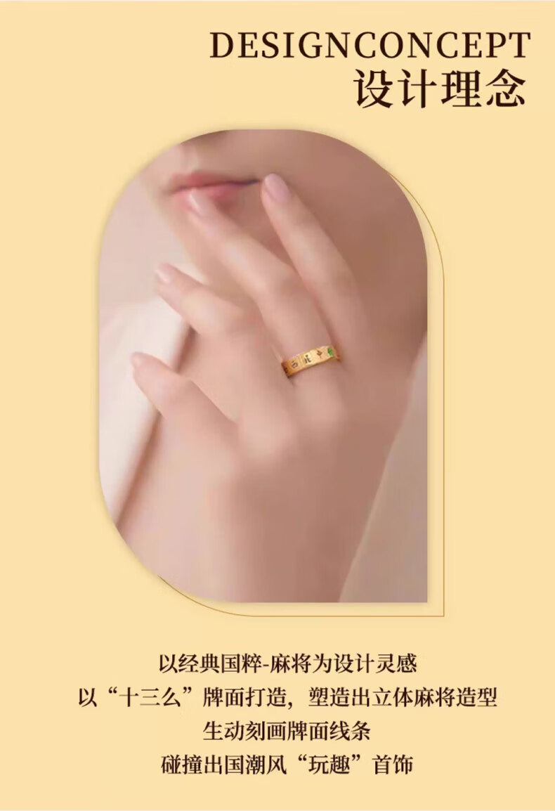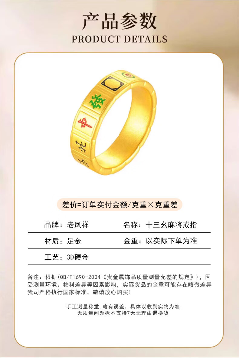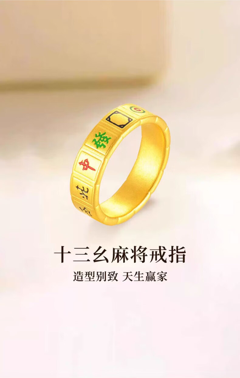 Lao Fengxiang gold thirteen-year-old mahjong ring for men and women, solid gold ring jewelry, Valentine's Day birthday gift for girlfriend and wife, thirteen-year-old mahjong ring, circle number 18, about 1g