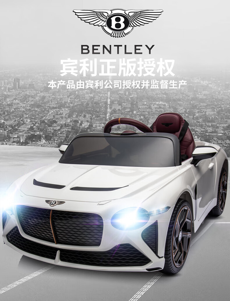 Bentley Bentley children's electric car four-wheel drive car for men and women with remote control toy car that can sit in white = four-wheel drive + remote control + self-driving + swing + music + four-wheel drive