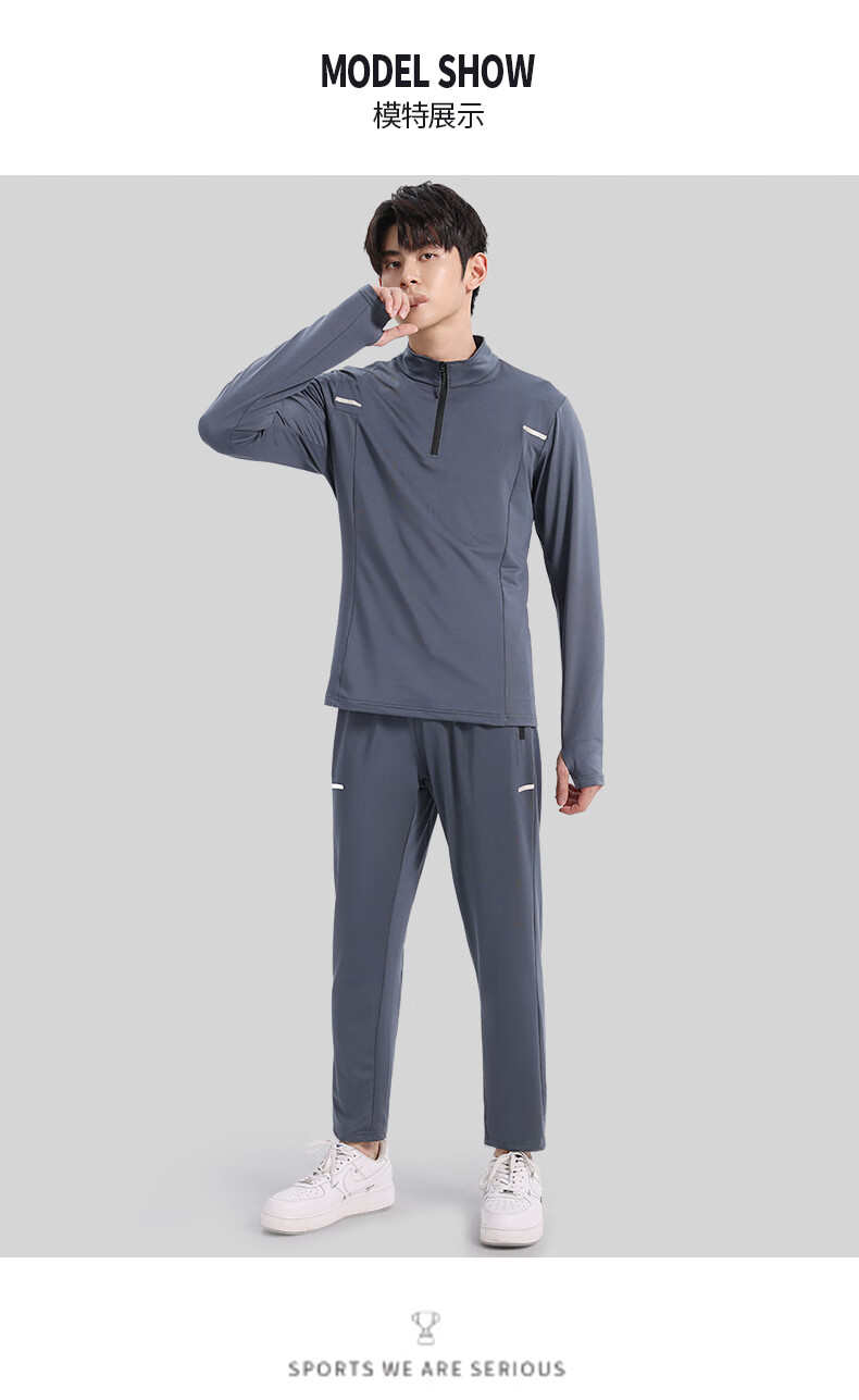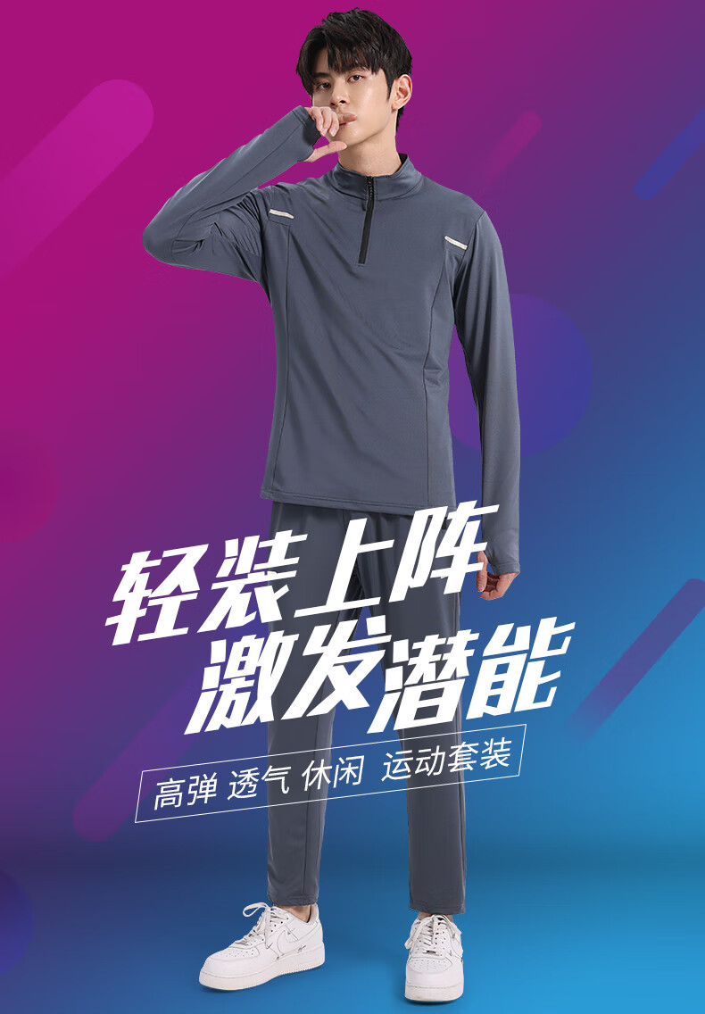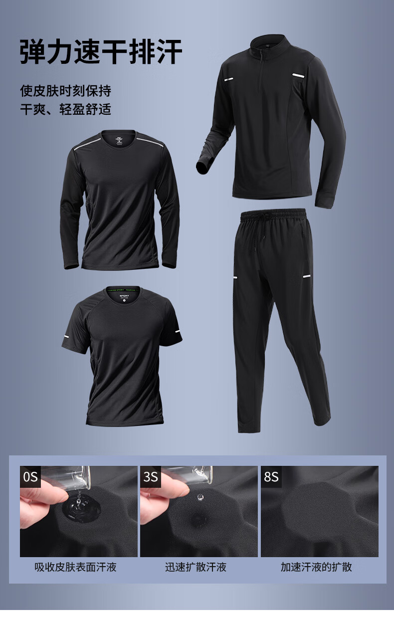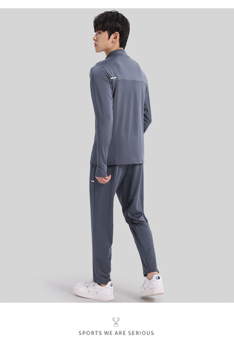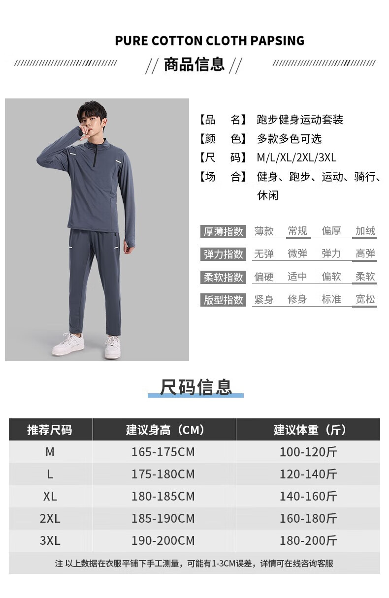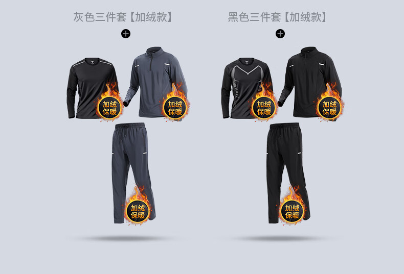 ROMON Sports Suit Men's Running Clothes New Morning Running Quick-Drying Clothes Fitness Training Cycling Clothes Men's Spring Autumn and Winter Gray Three-piece Set B plus Velvet Warmth 2XL 160-180Jin Jin equals 0.5 kg