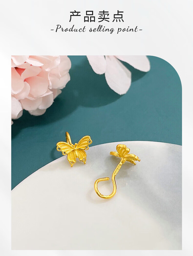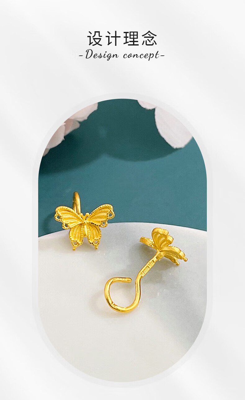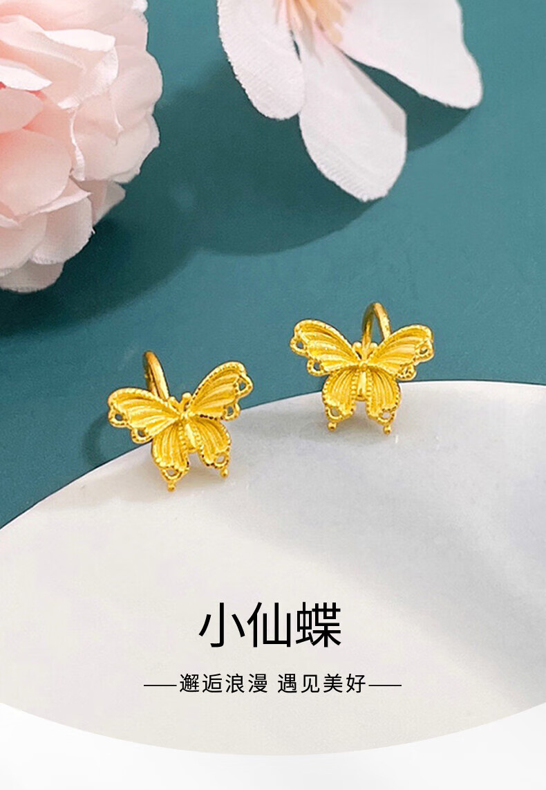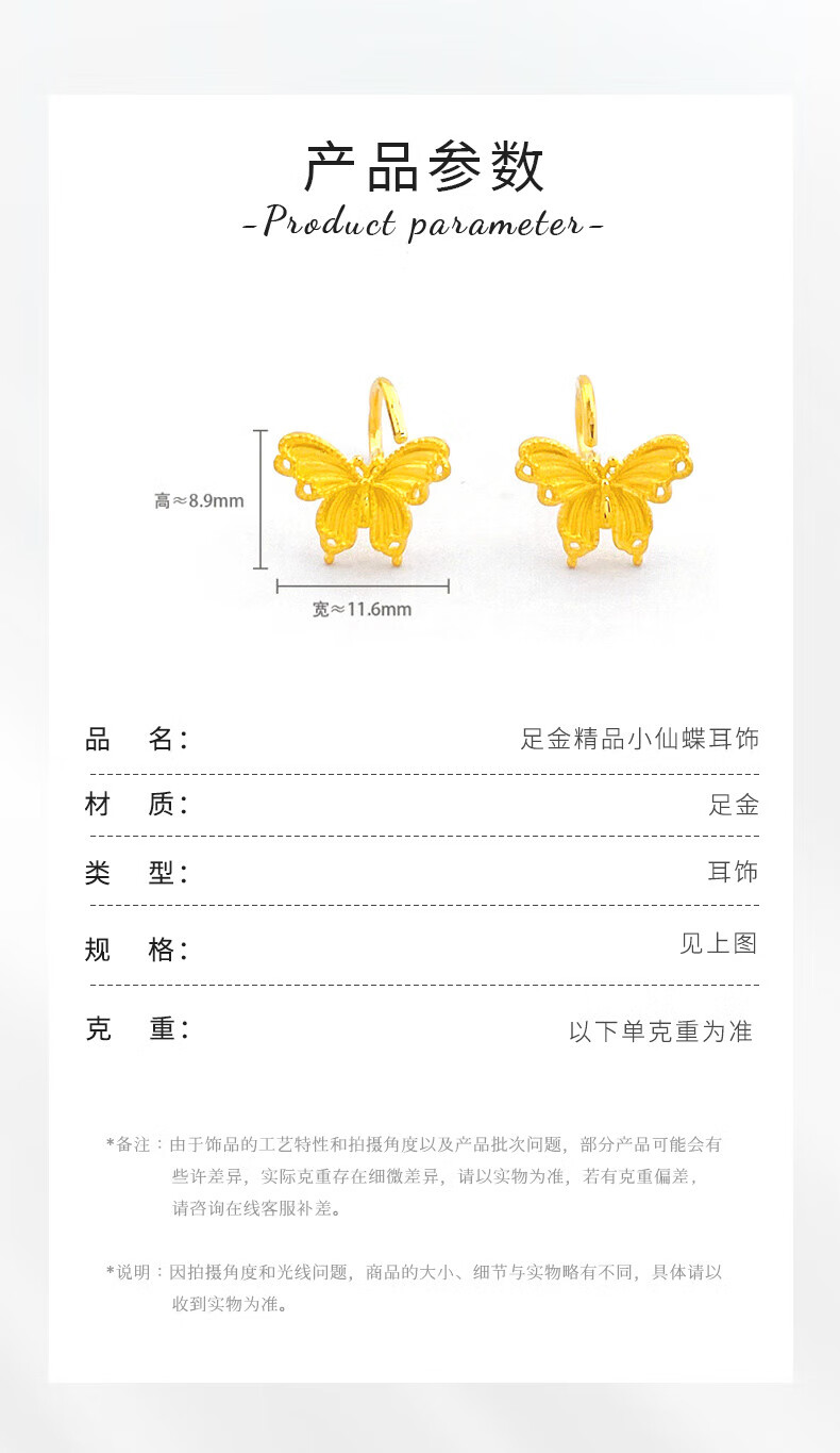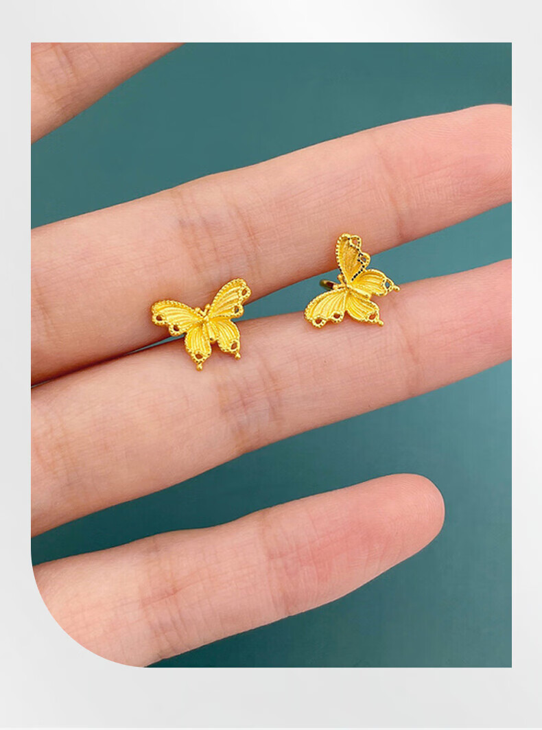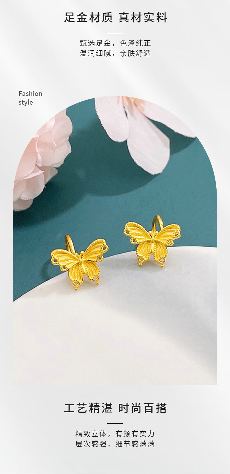 Laomiao Gold Butterfly Earrings Pure Gold Sweet Fairy Butterfly Earrings for Girlfriend and Wife as a Birthday Gift About 2.51g