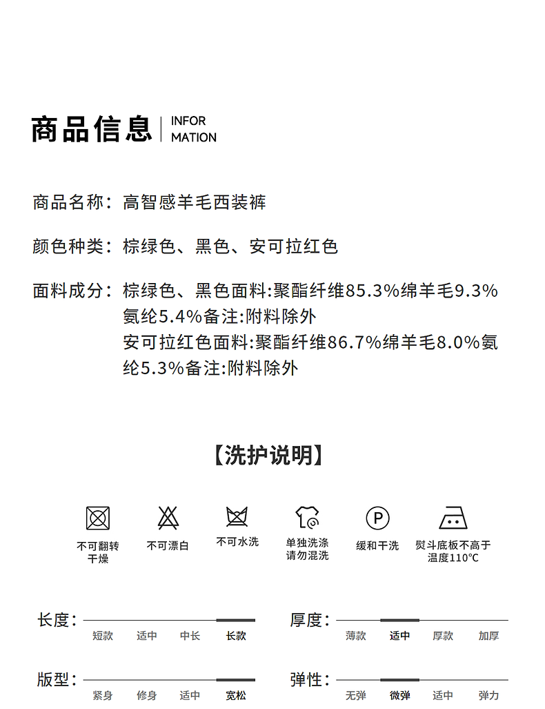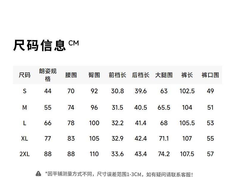 Outseam (cm) 99 cm 101.5 cm 104 cm 106.5 cm 109 cm