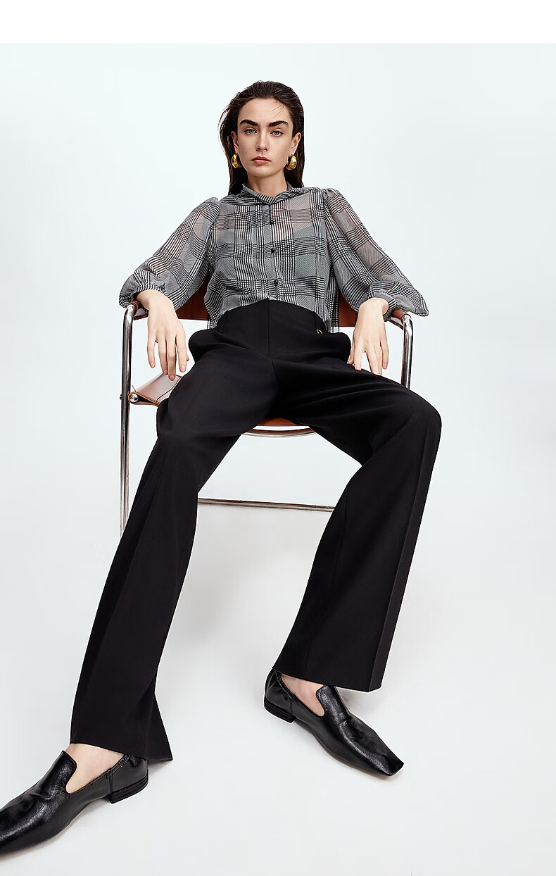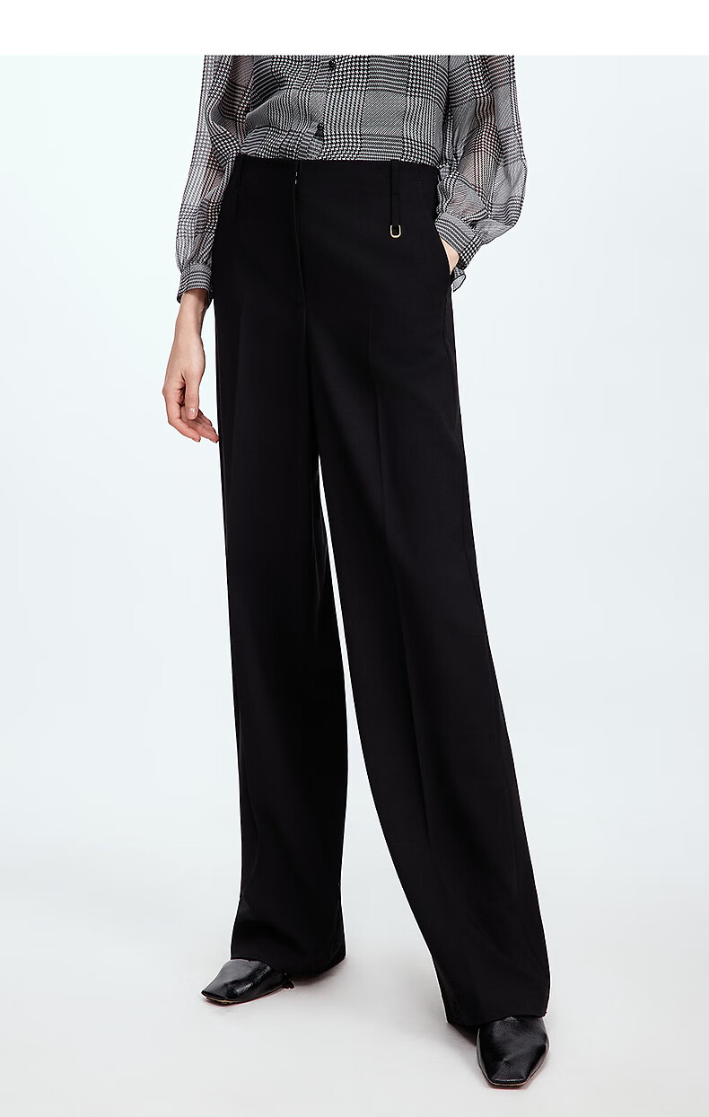 Langzi wide-leg scimitar pants, high-end suit pants, temperament, fashion, light workplace commuting suit pants, 2025 autumn new style, black M