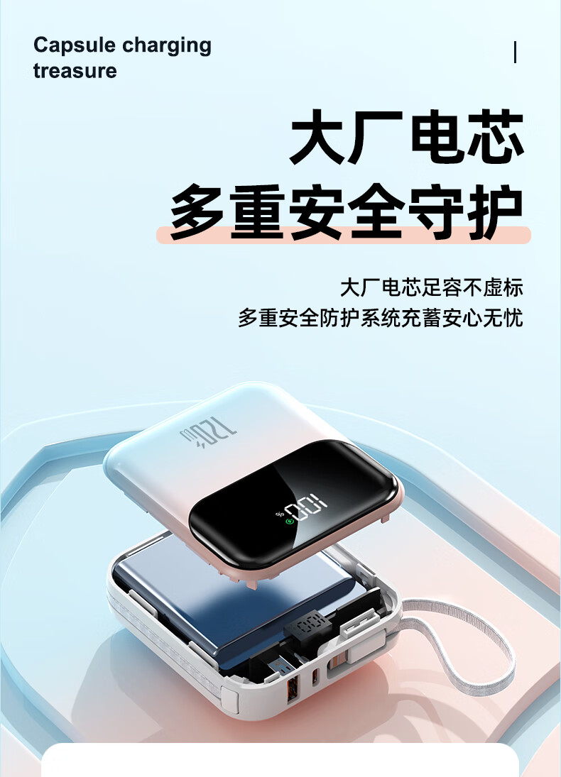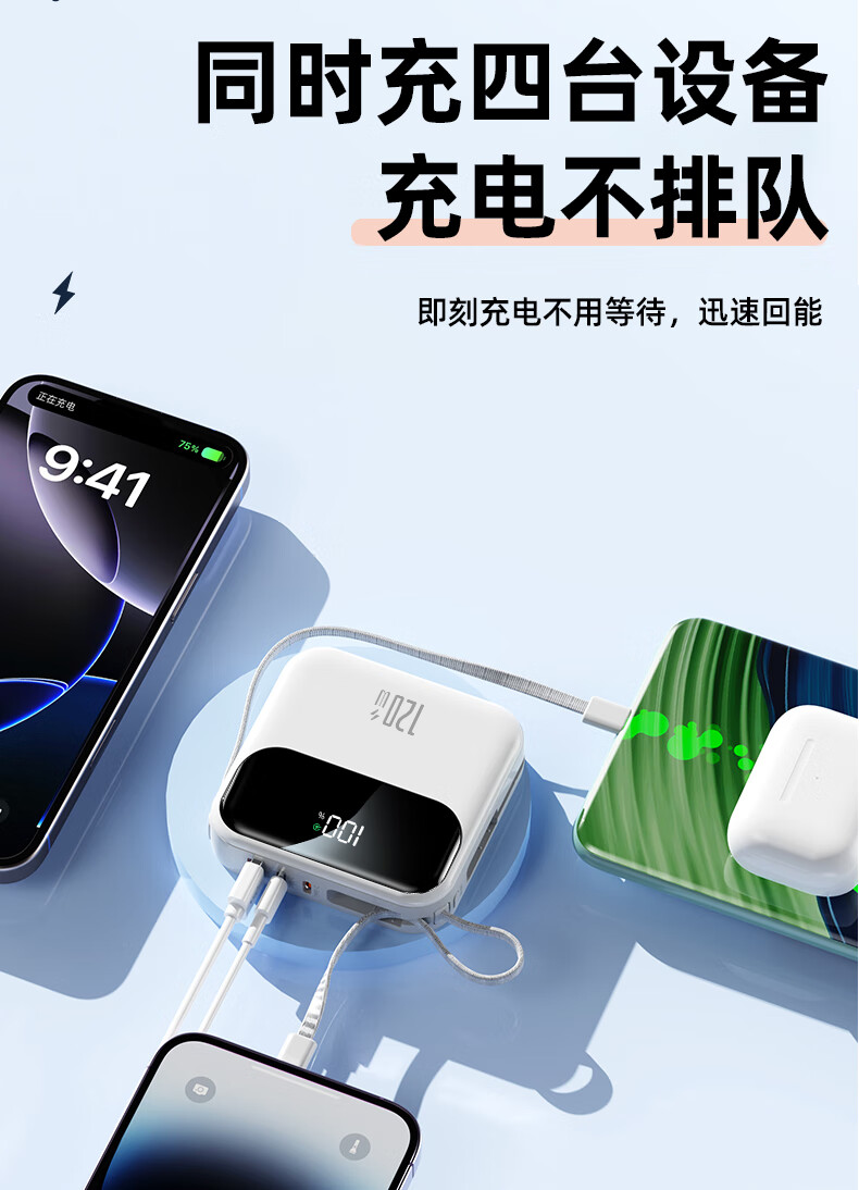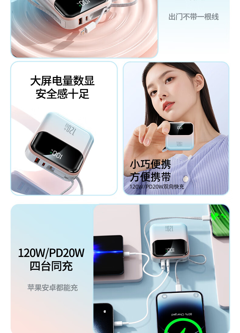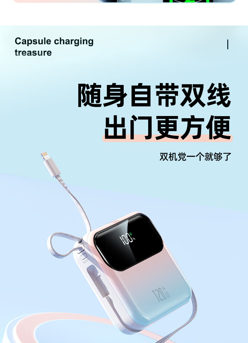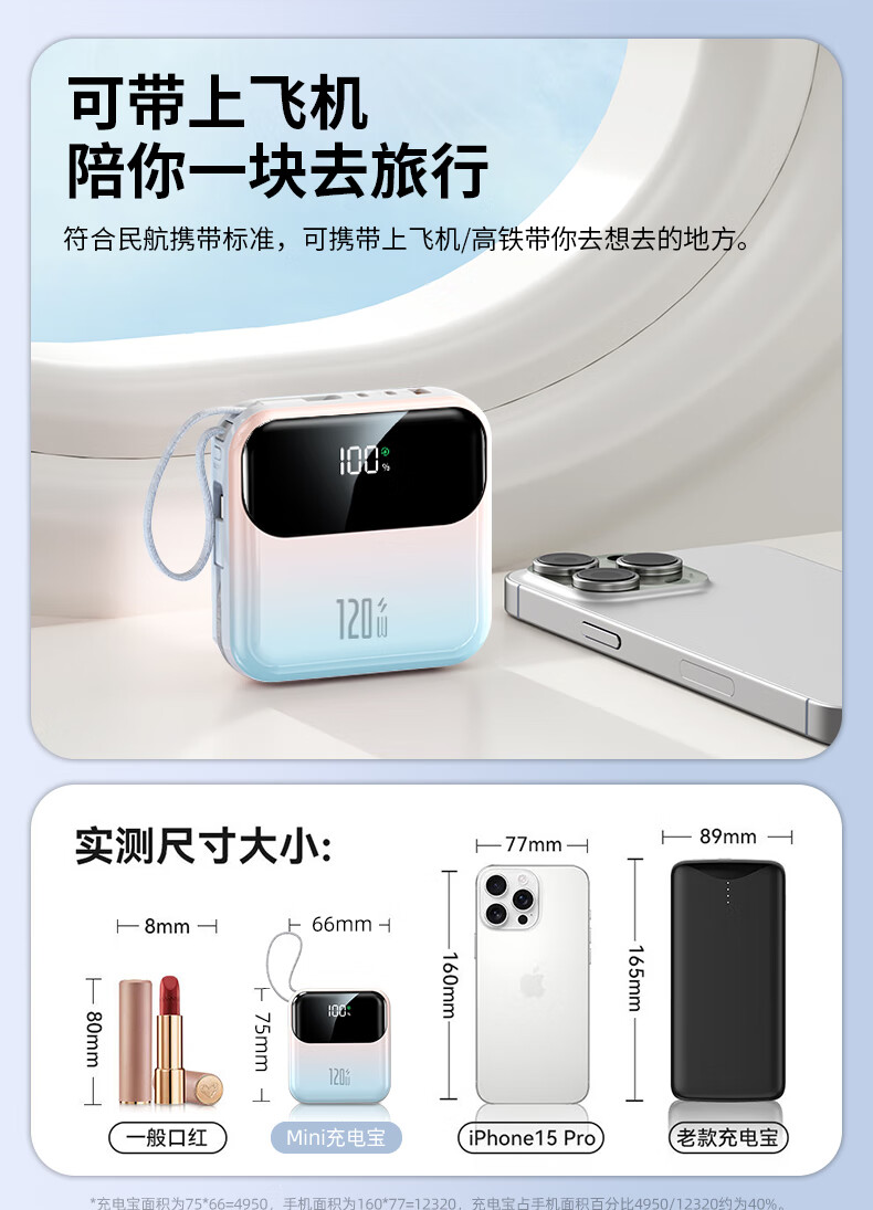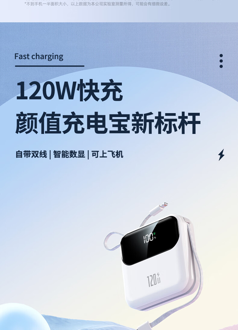 Elafo National 3C Certification Best-selling 100W on the whole network丨Can be used on airplanes and high-speed trains Super fast charging comes with a wired power bank Large capacity compact mobile power supply Suitable for Apple and Xiaomi Gradient color Top version + 5.0 Super Flash Charge + New 3C certification 3C certification / same-day and next-day delivery Recommended top version