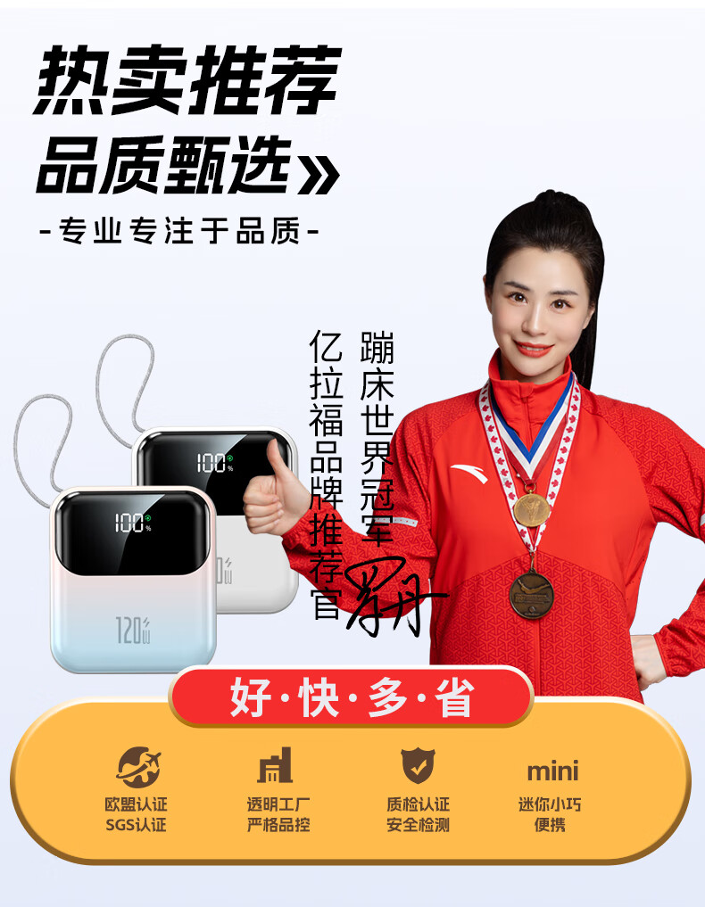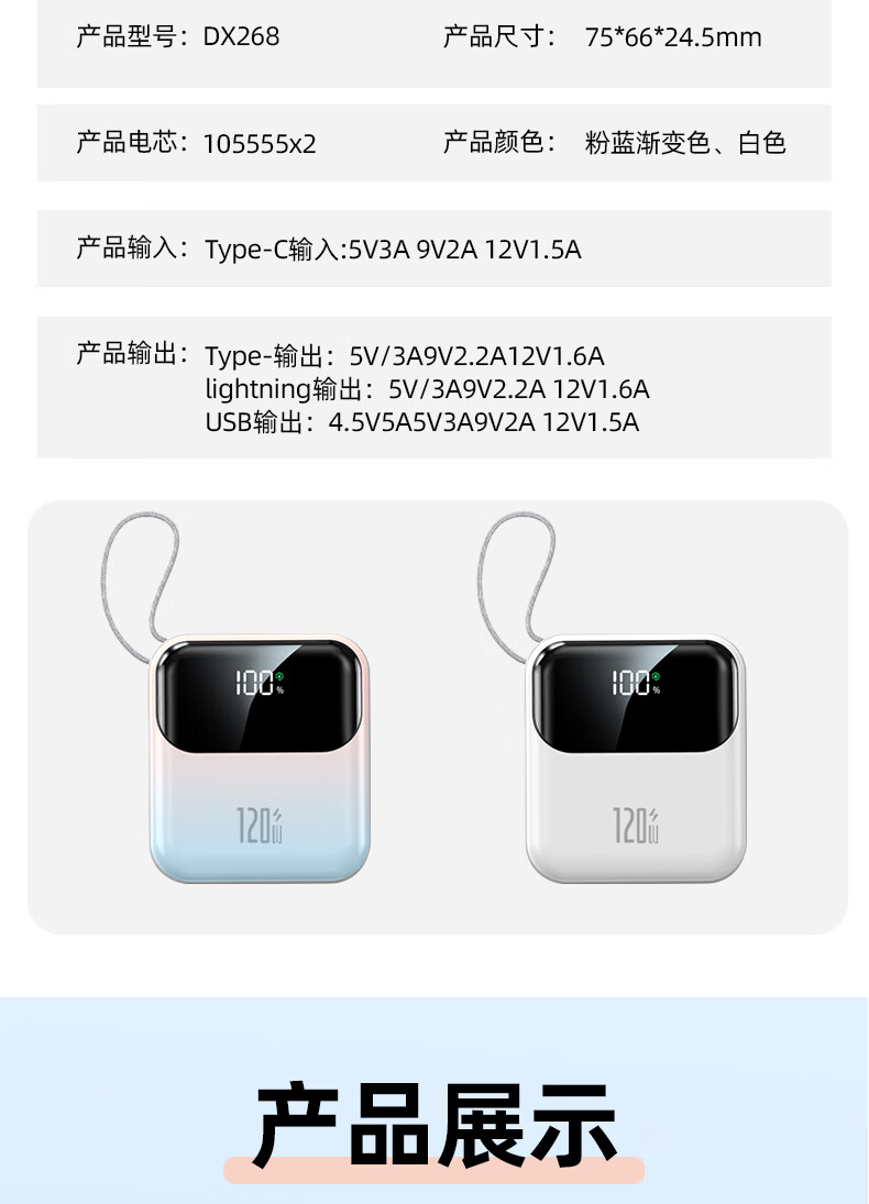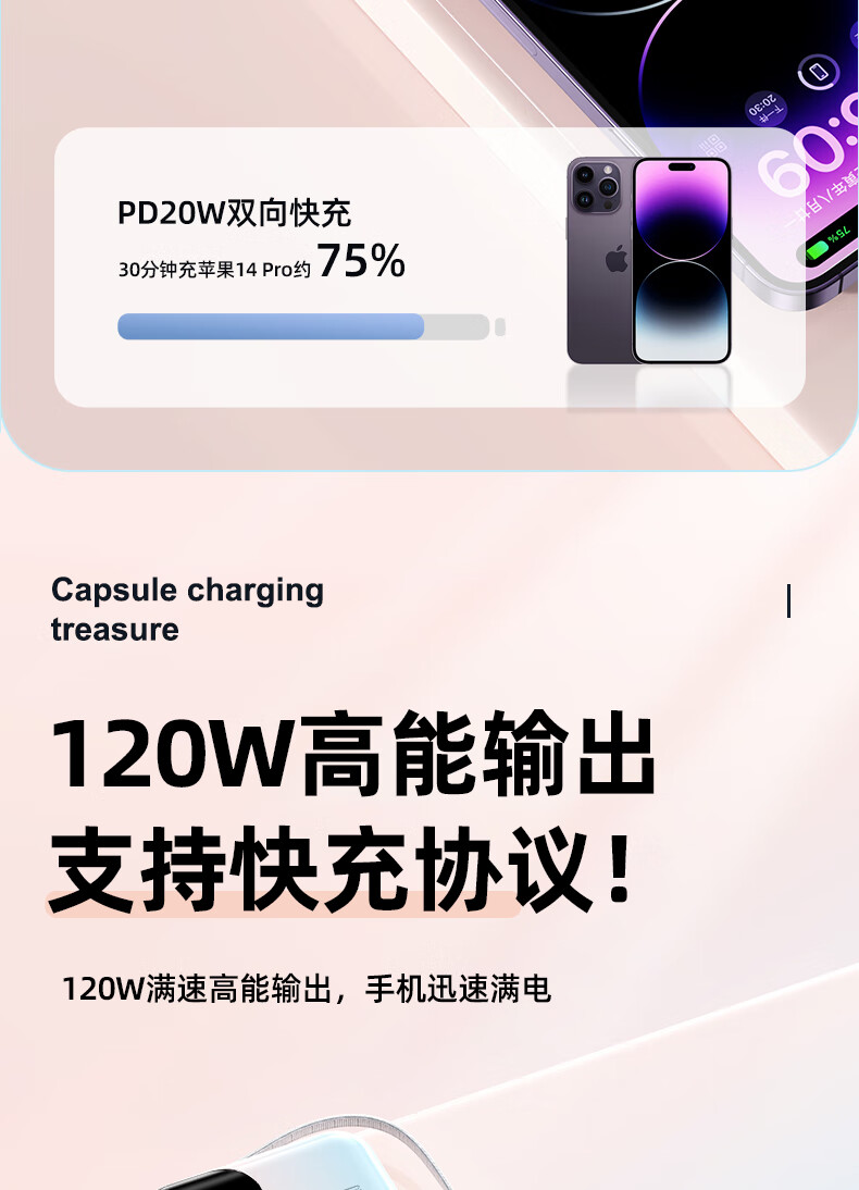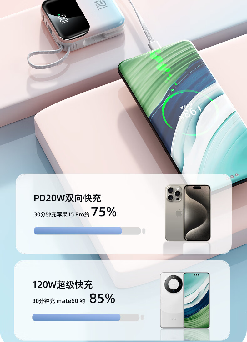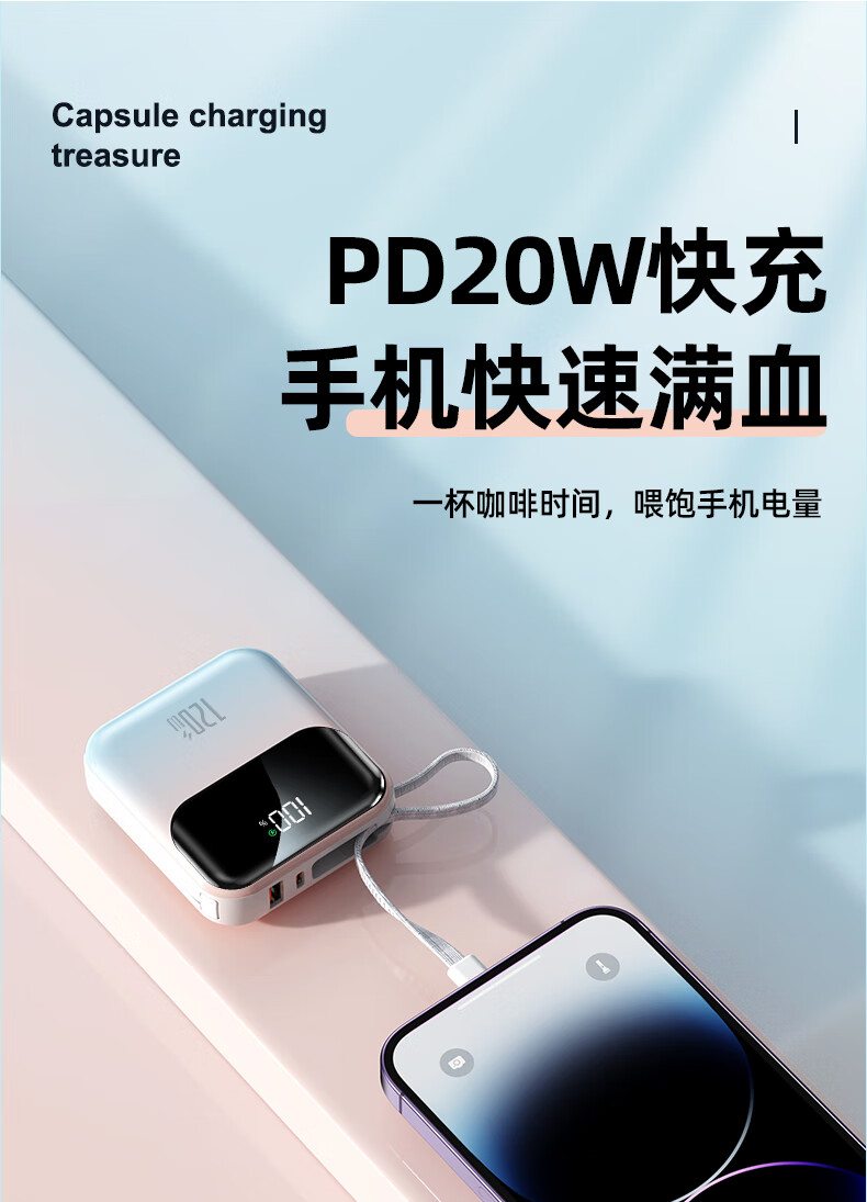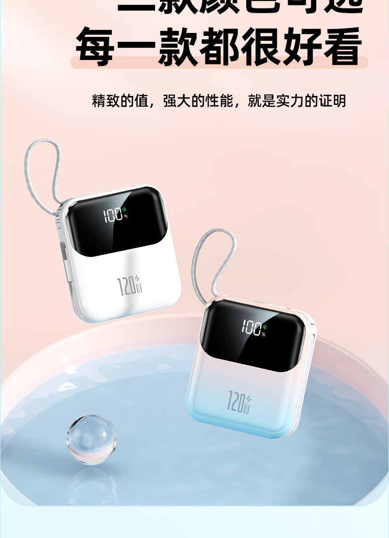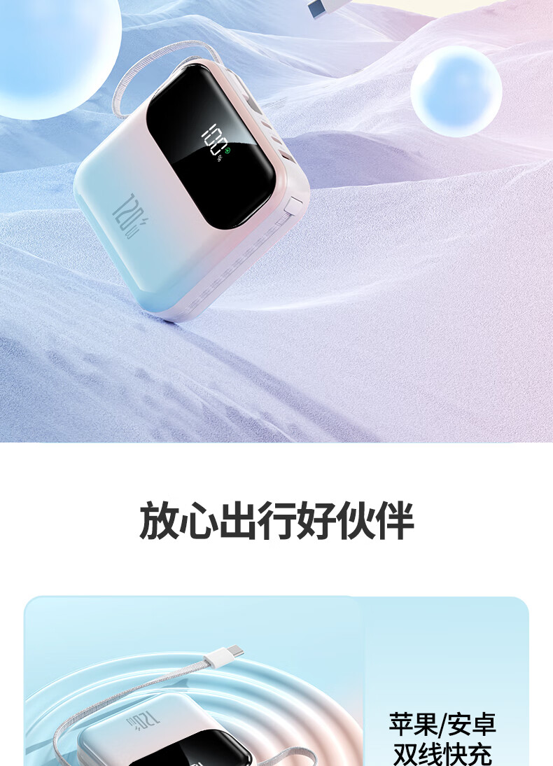 Elafo National 3C Certification Best-selling 100W on the whole network丨Can be used on airplanes and high-speed trains Super fast charging comes with a wired power bank Large capacity compact mobile power supply Suitable for Apple and Xiaomi Gradient color Top version + 5.0 Super Flash Charge + New 3C certification 3C certification / same-day and next-day delivery Recommended top version